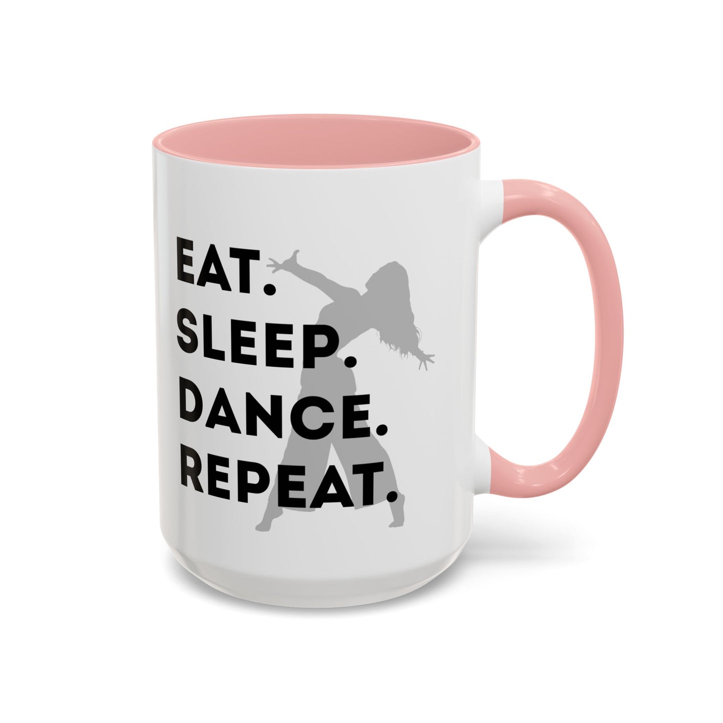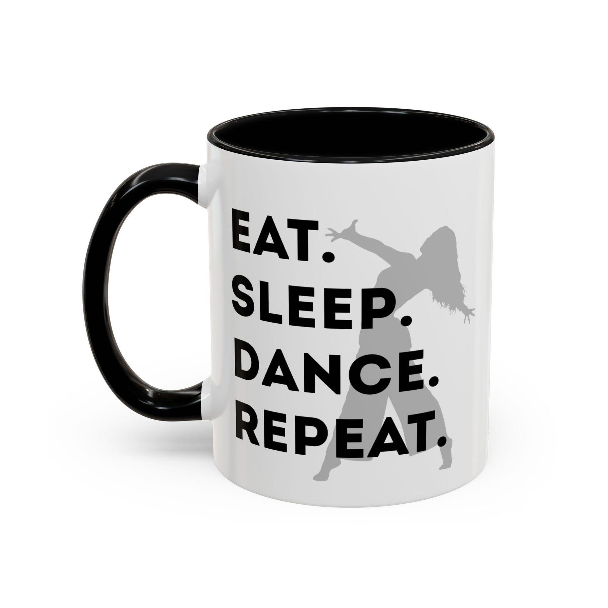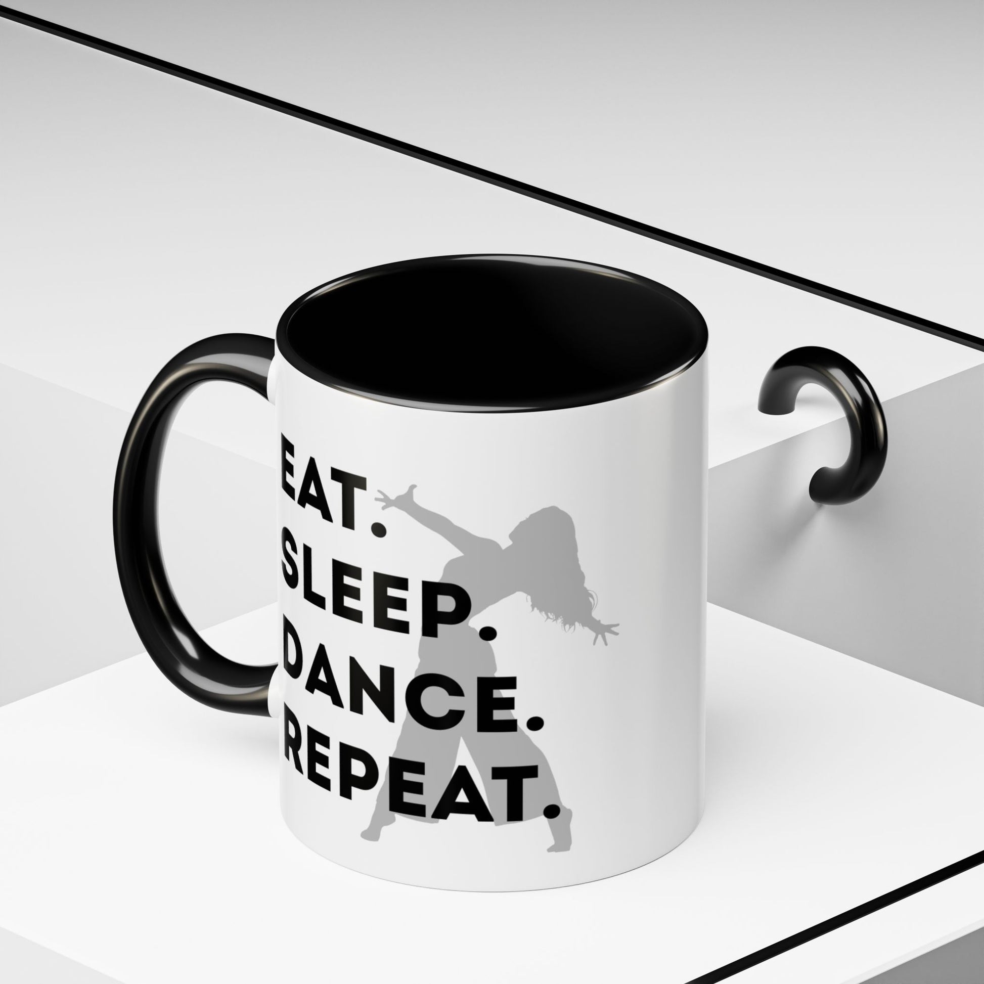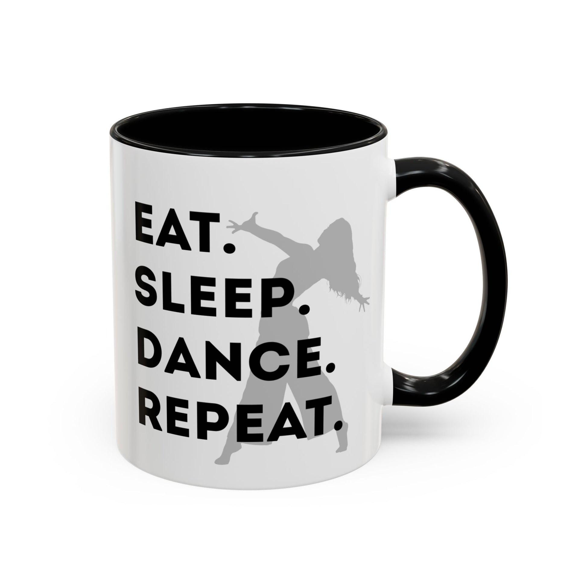 💃 "Eat Sleep Dance Repeat" Accent Coffee Mug – Featuring a Fierce Female Dancer Graphic ☕✨