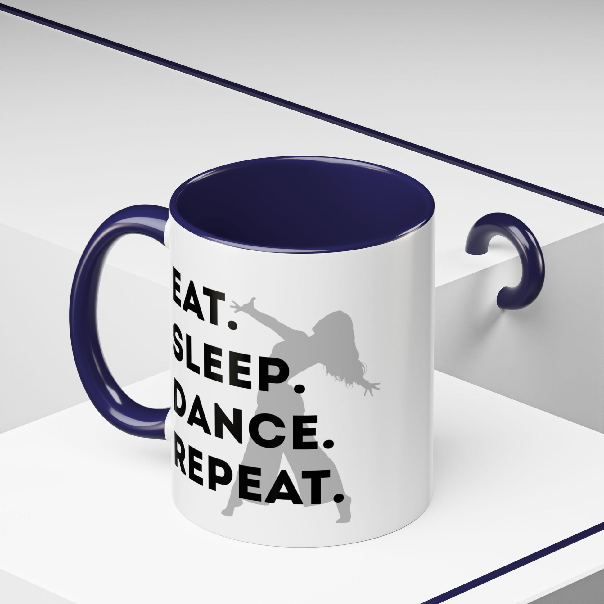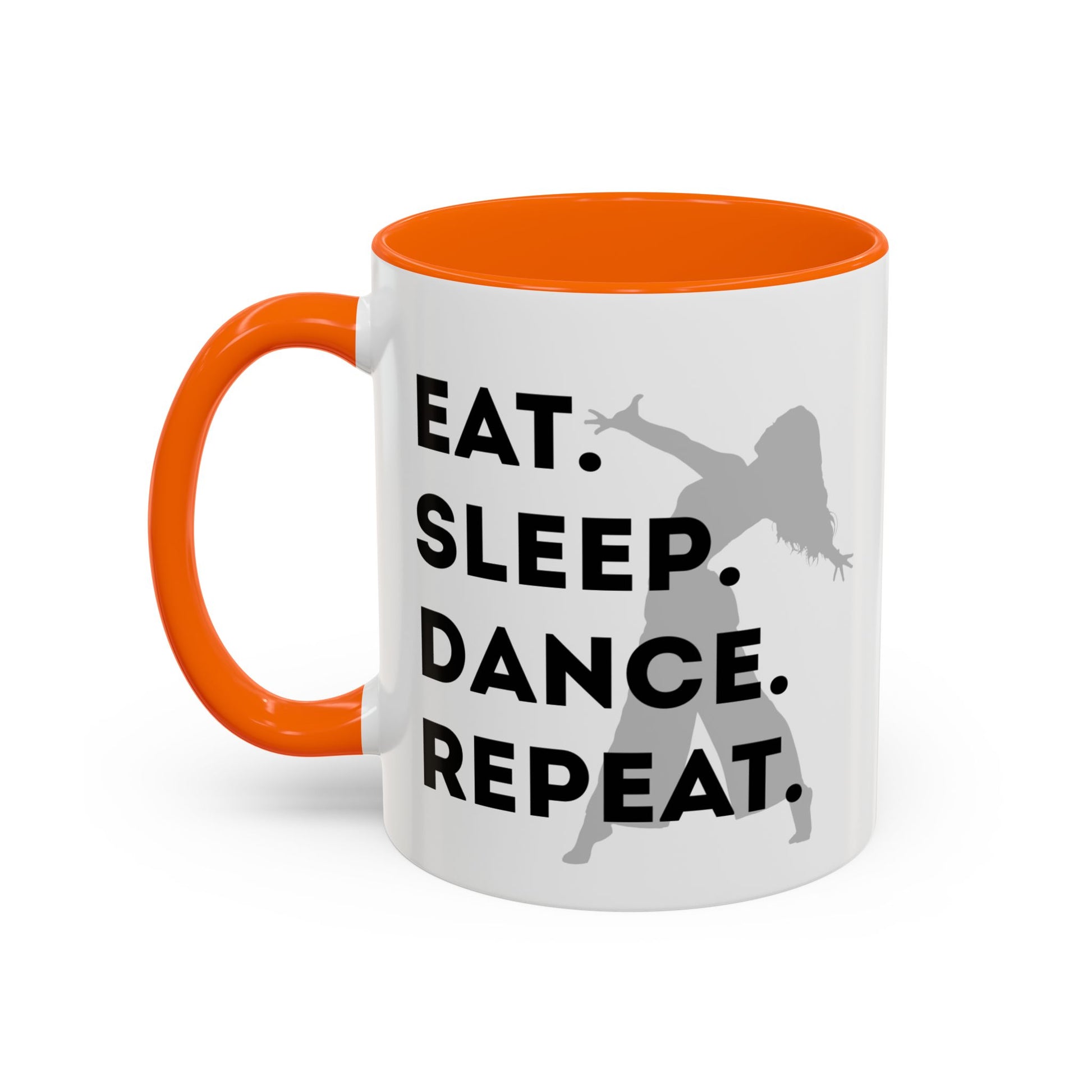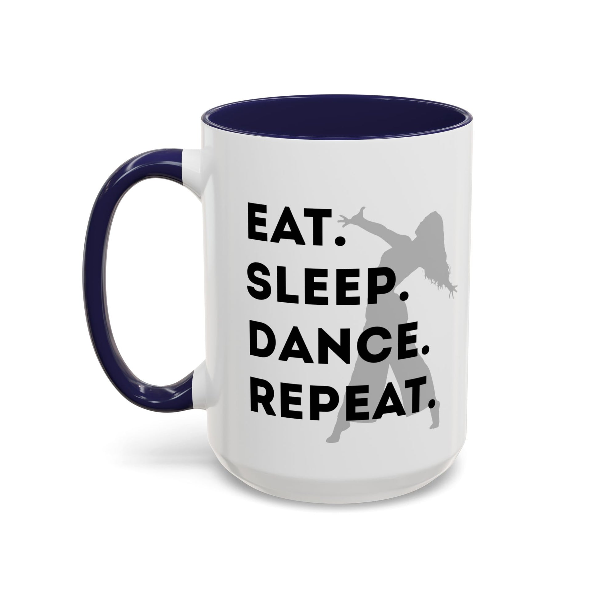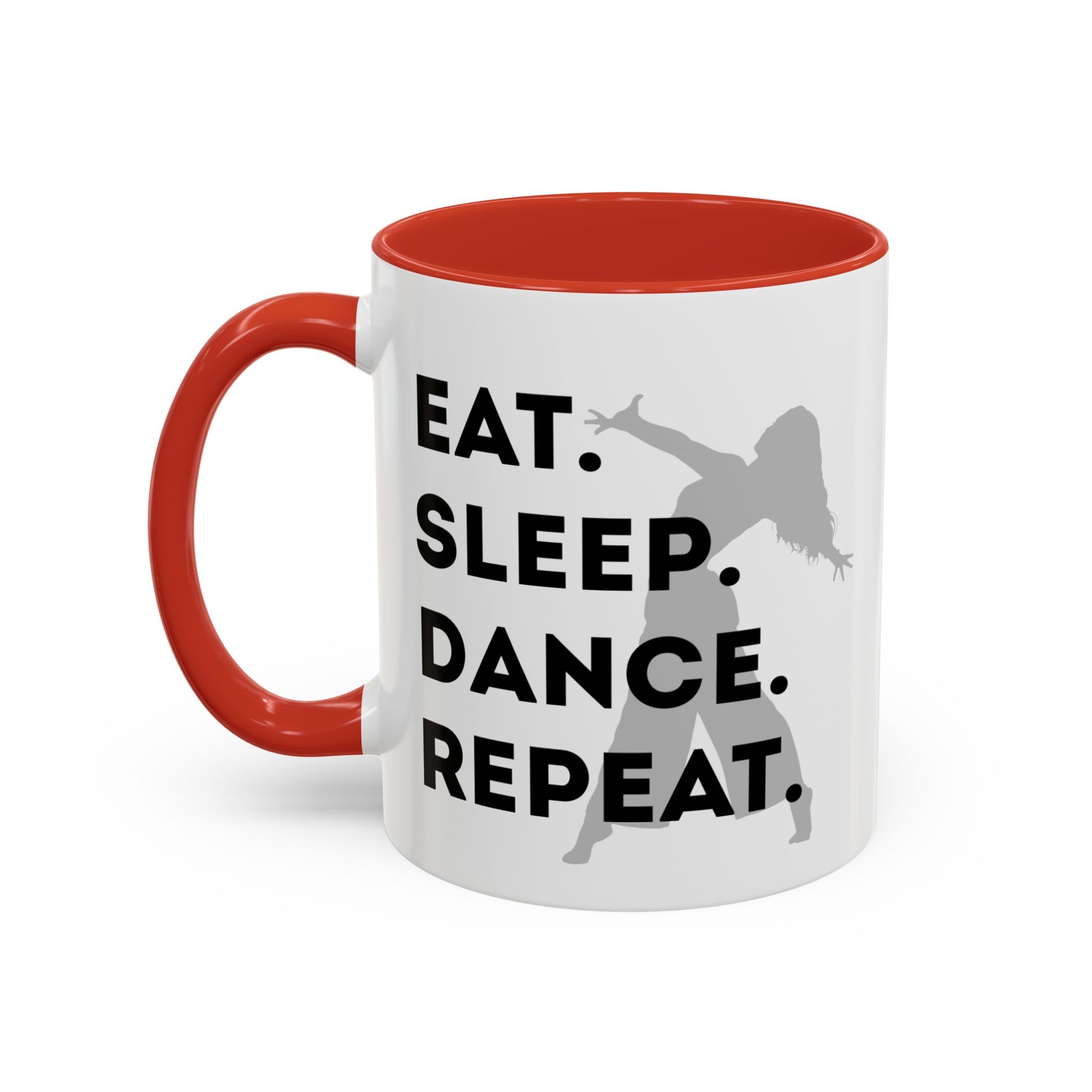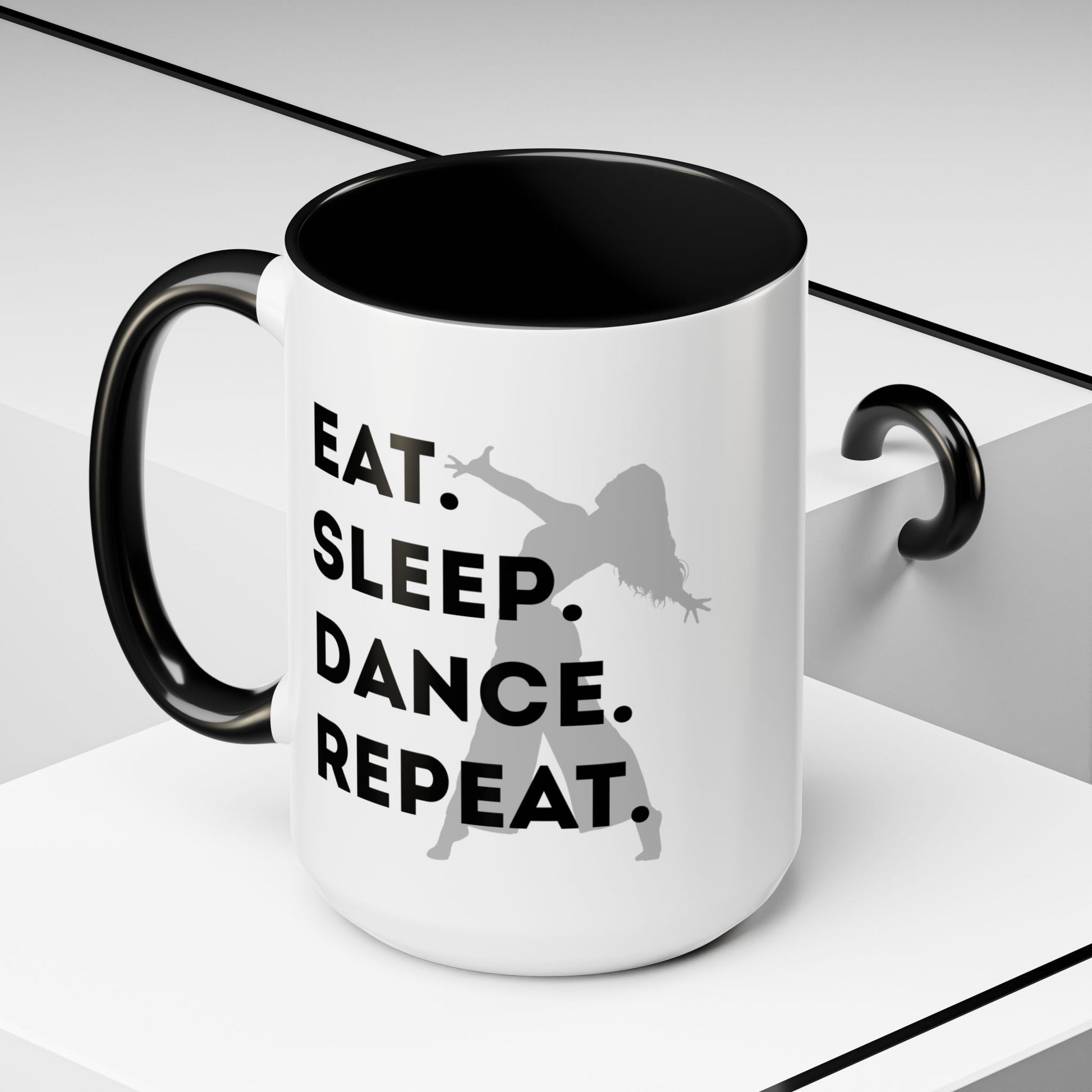 💃 "Eat Sleep Dance Repeat" Accent Coffee Mug – Featuring a Fierce Female Dancer Graphic ☕✨