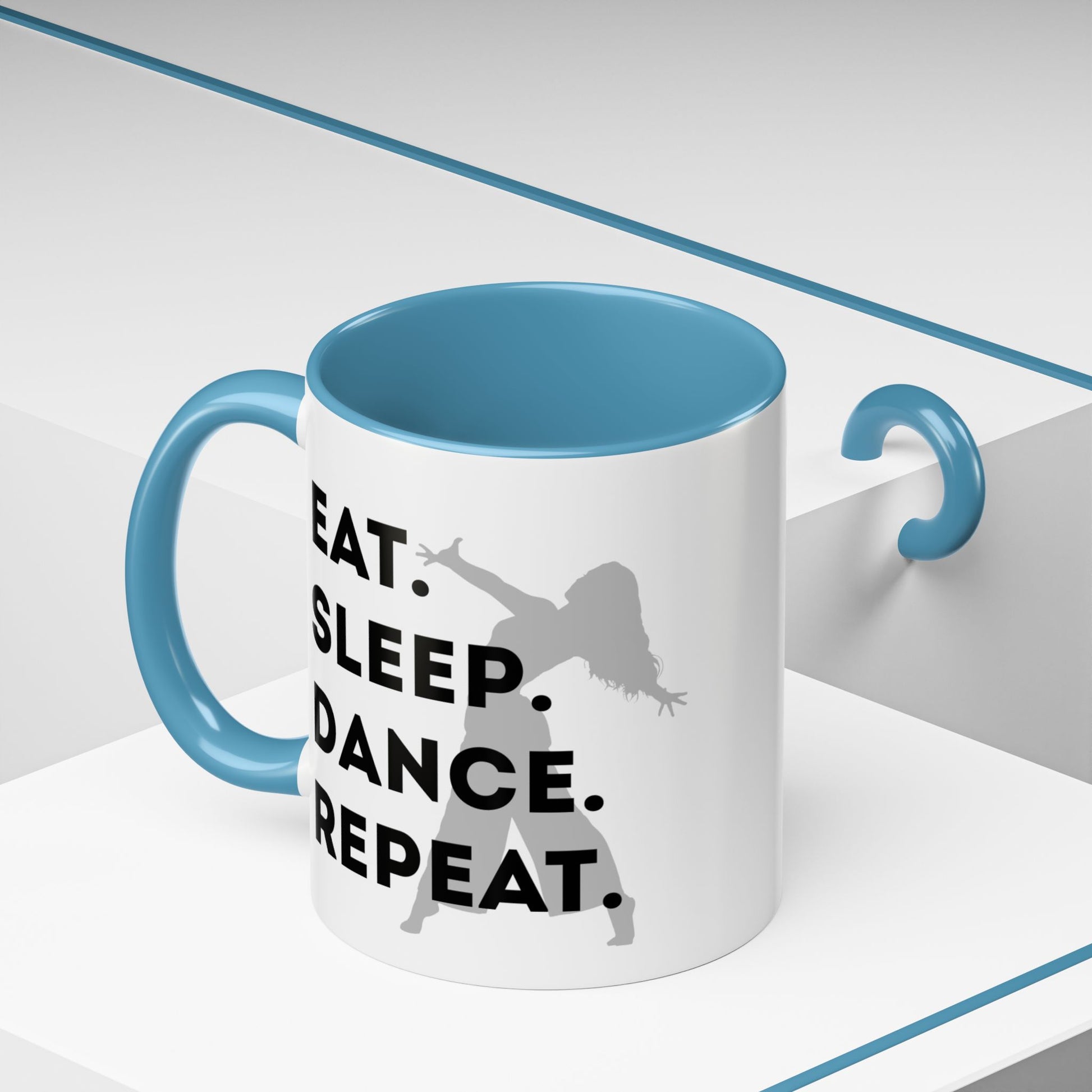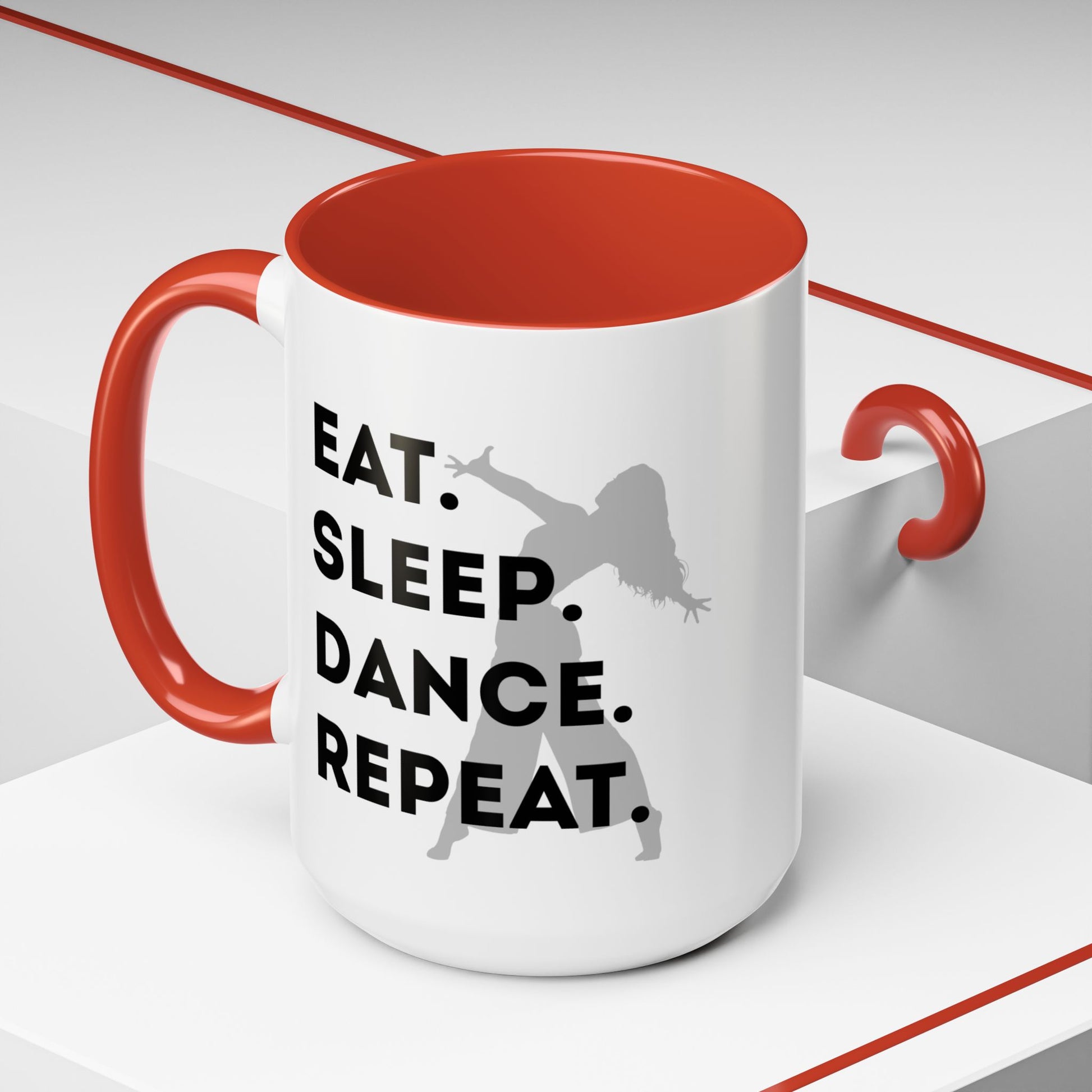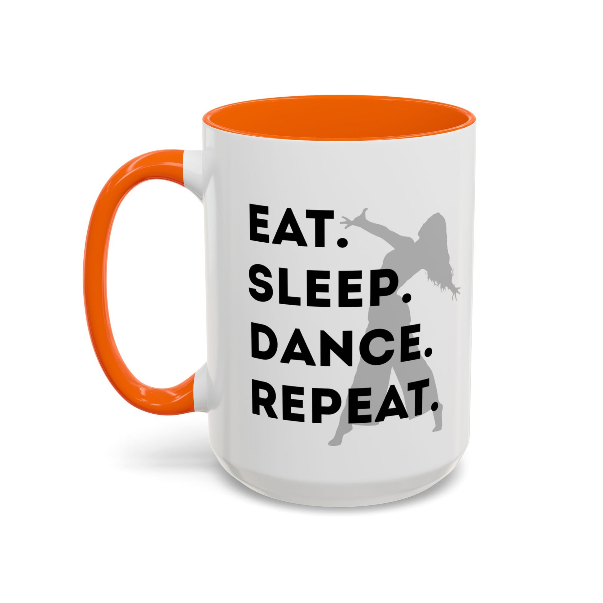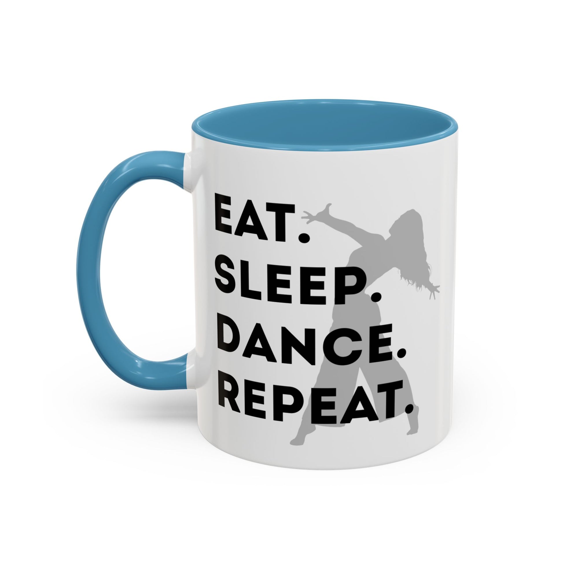 💃 "Eat Sleep Dance Repeat" Accent Coffee Mug – Featuring a Fierce Female Dancer Graphic ☕✨