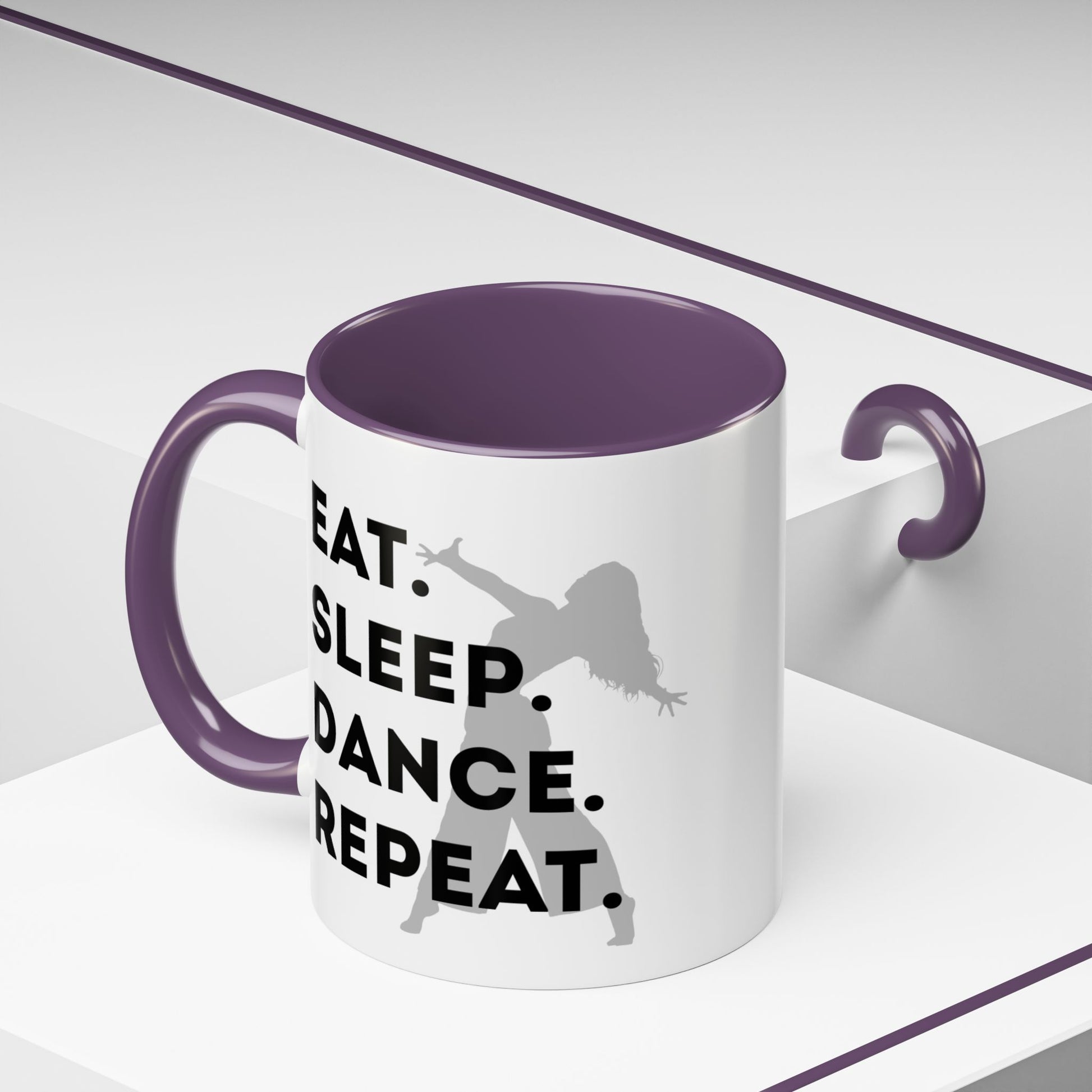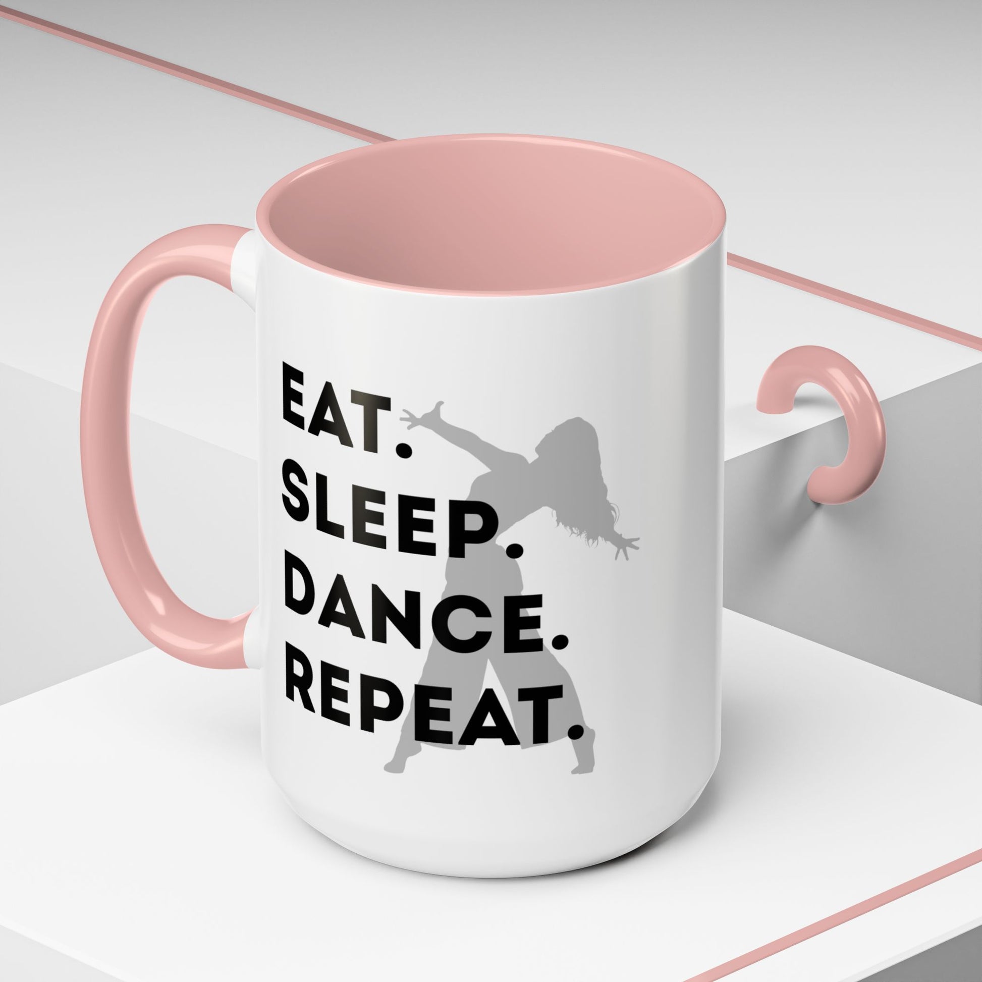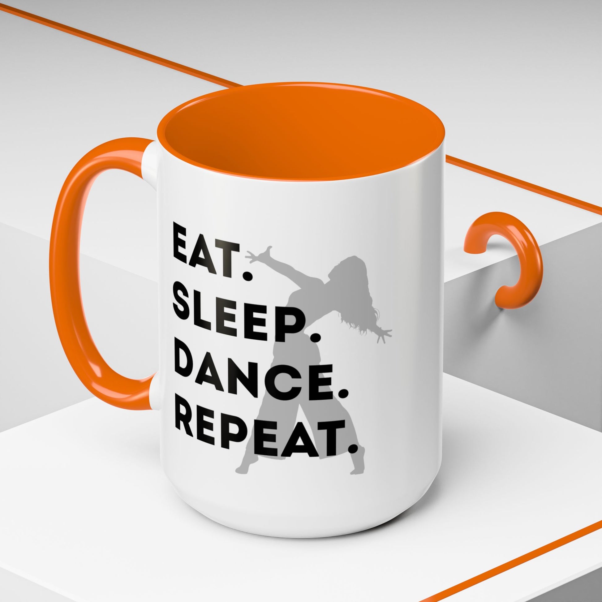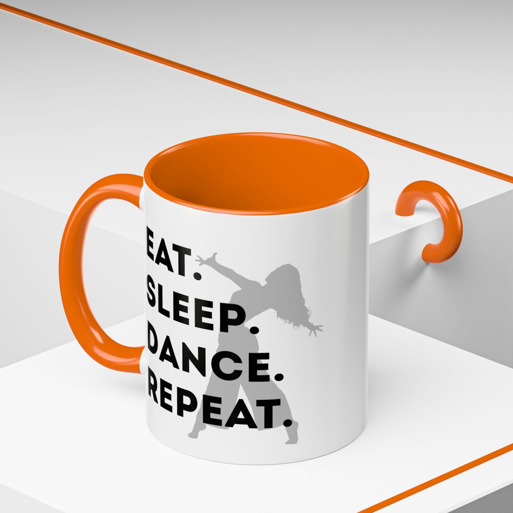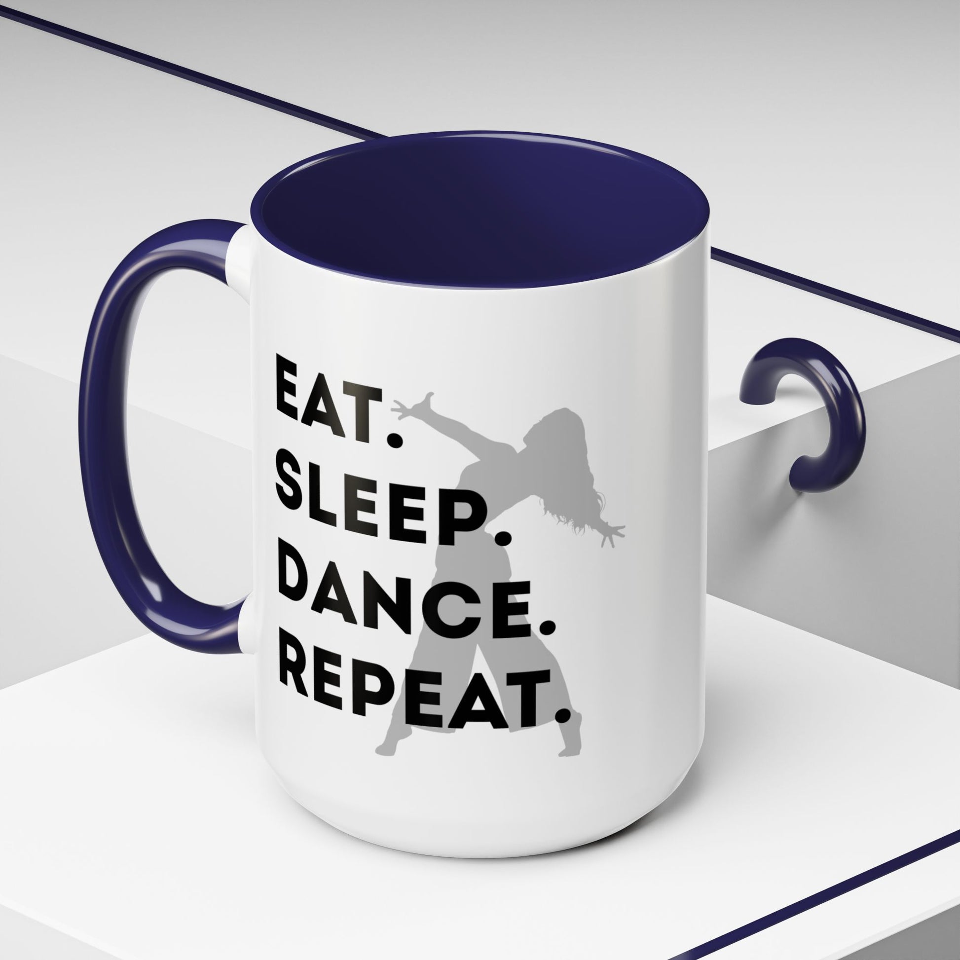 💃 "Eat Sleep Dance Repeat" Accent Coffee Mug – Featuring a Fierce Female Dancer Graphic ☕✨