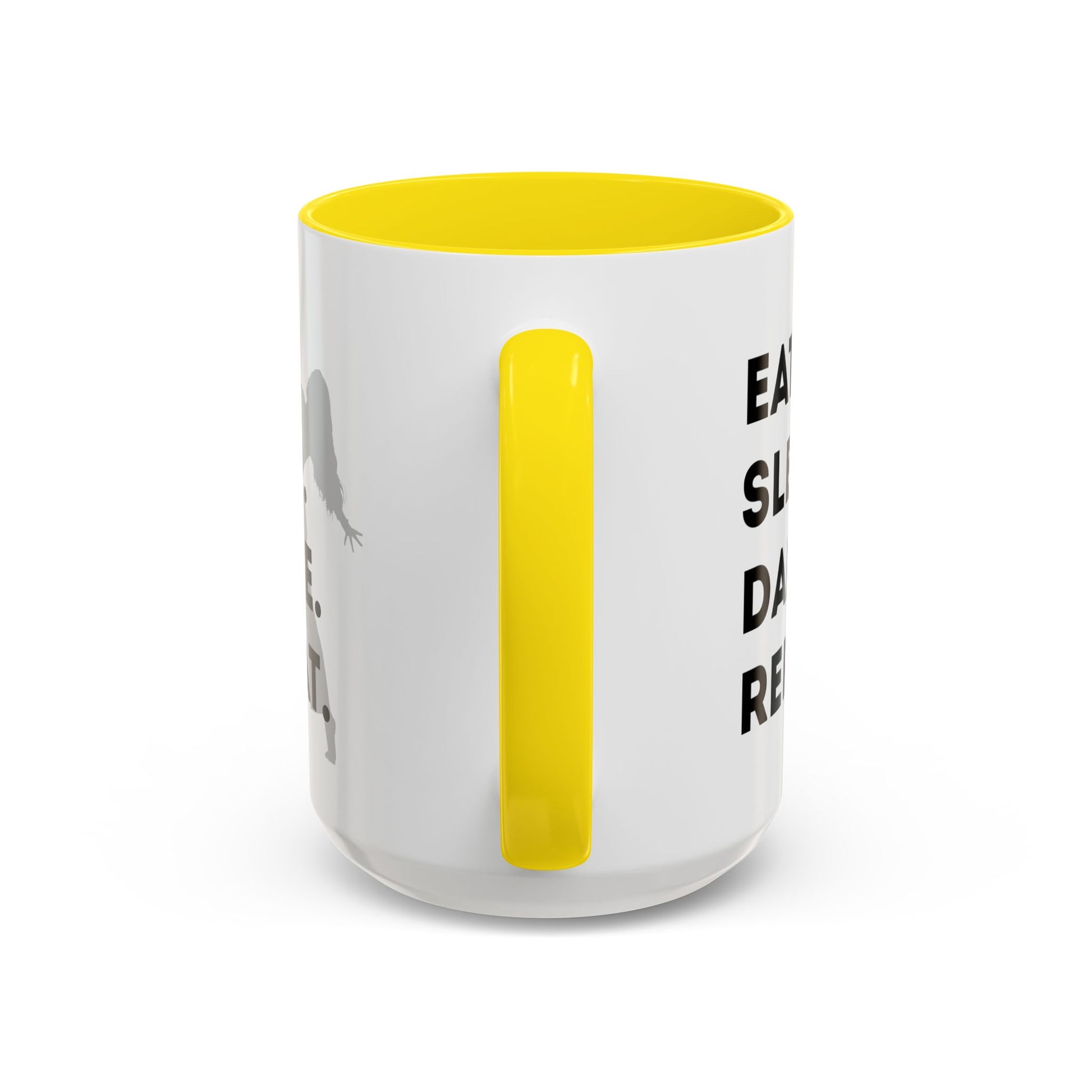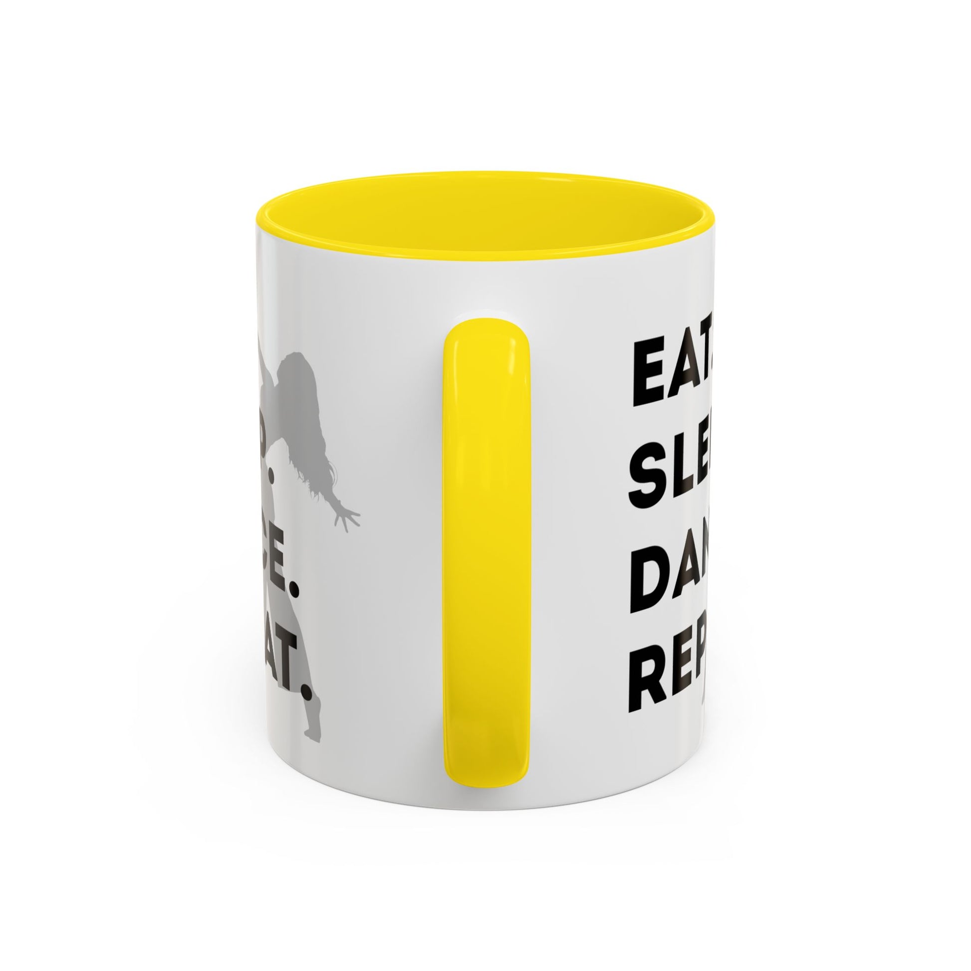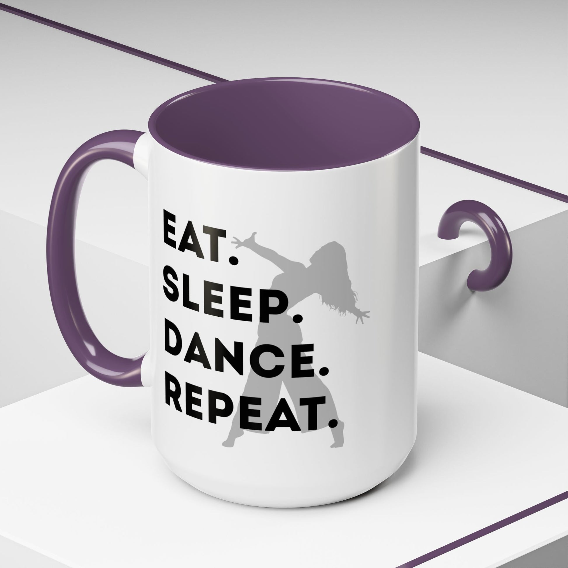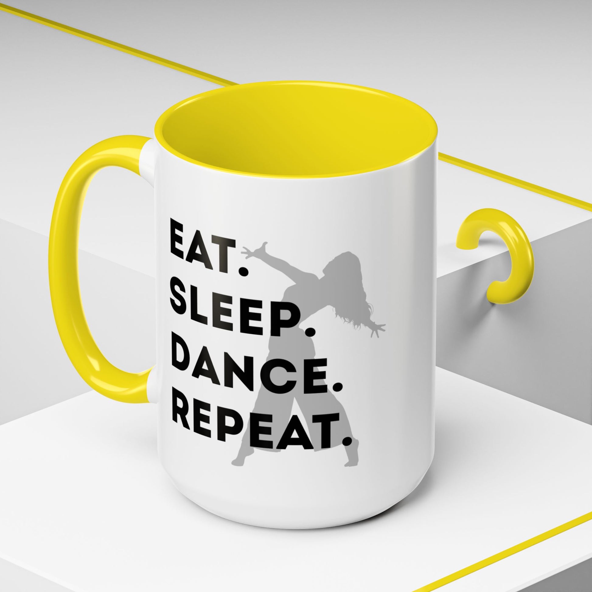 Fuel your mornings with rhythm and style with the "Eat Sleep Dance Repeat" Accent Coffee Mug! Featuring a sleek female dancer graphic and bold lettering that celebrates your nonstop passion for movement, this vibrant ceramic mug is perfect for dancers who live life one 8-count at a time. 🎶💥