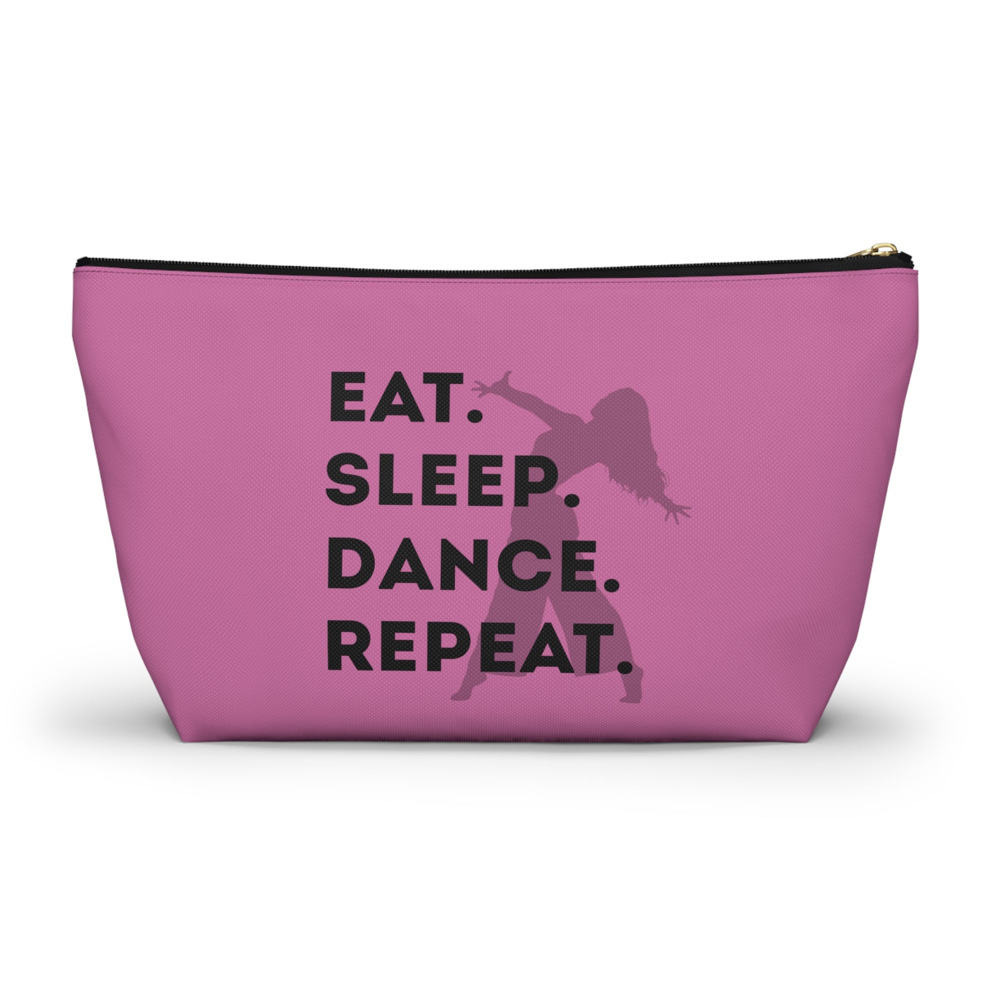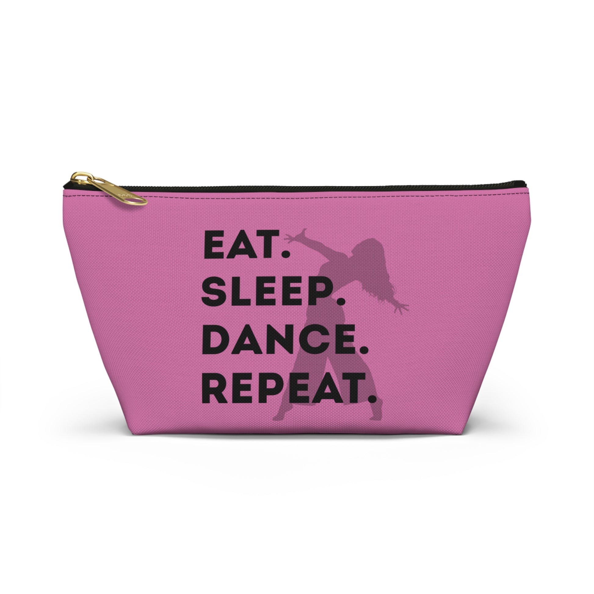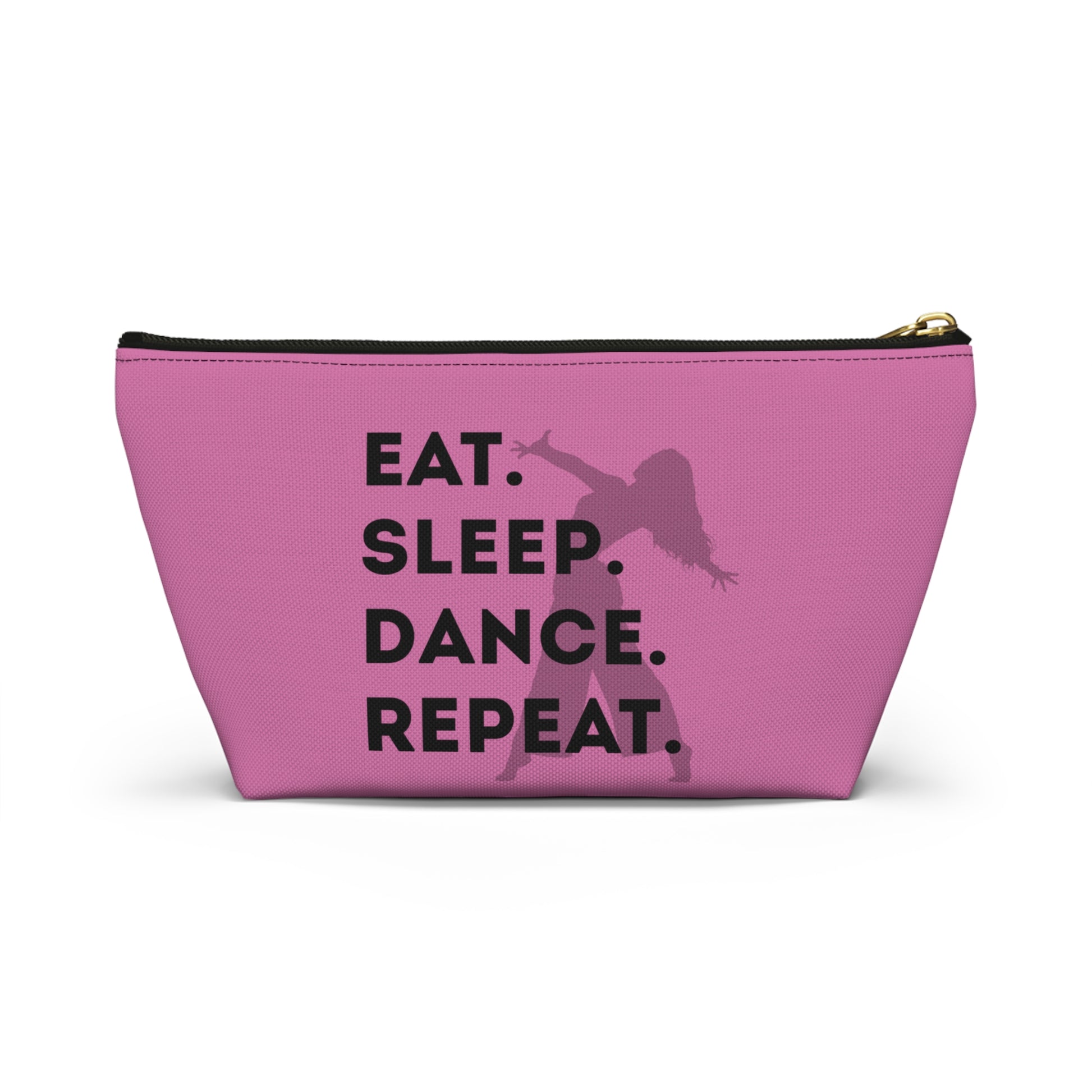 “Eat Sleep Dance Repeat” Makeup Bag – Bold Dancer Graphic – Dance-Themed Zipper Pouch for Cosmetics, Accessories & Travel Essentials