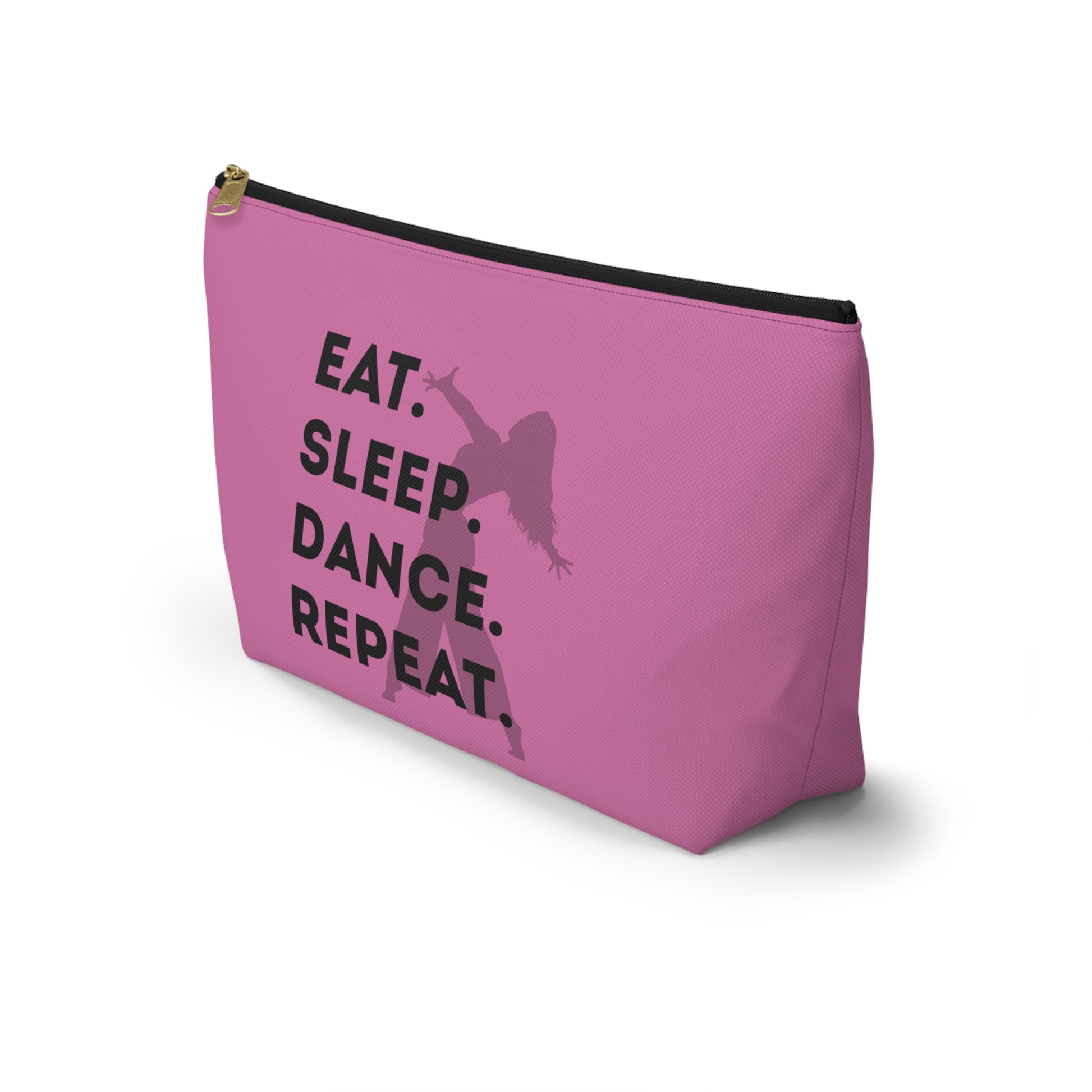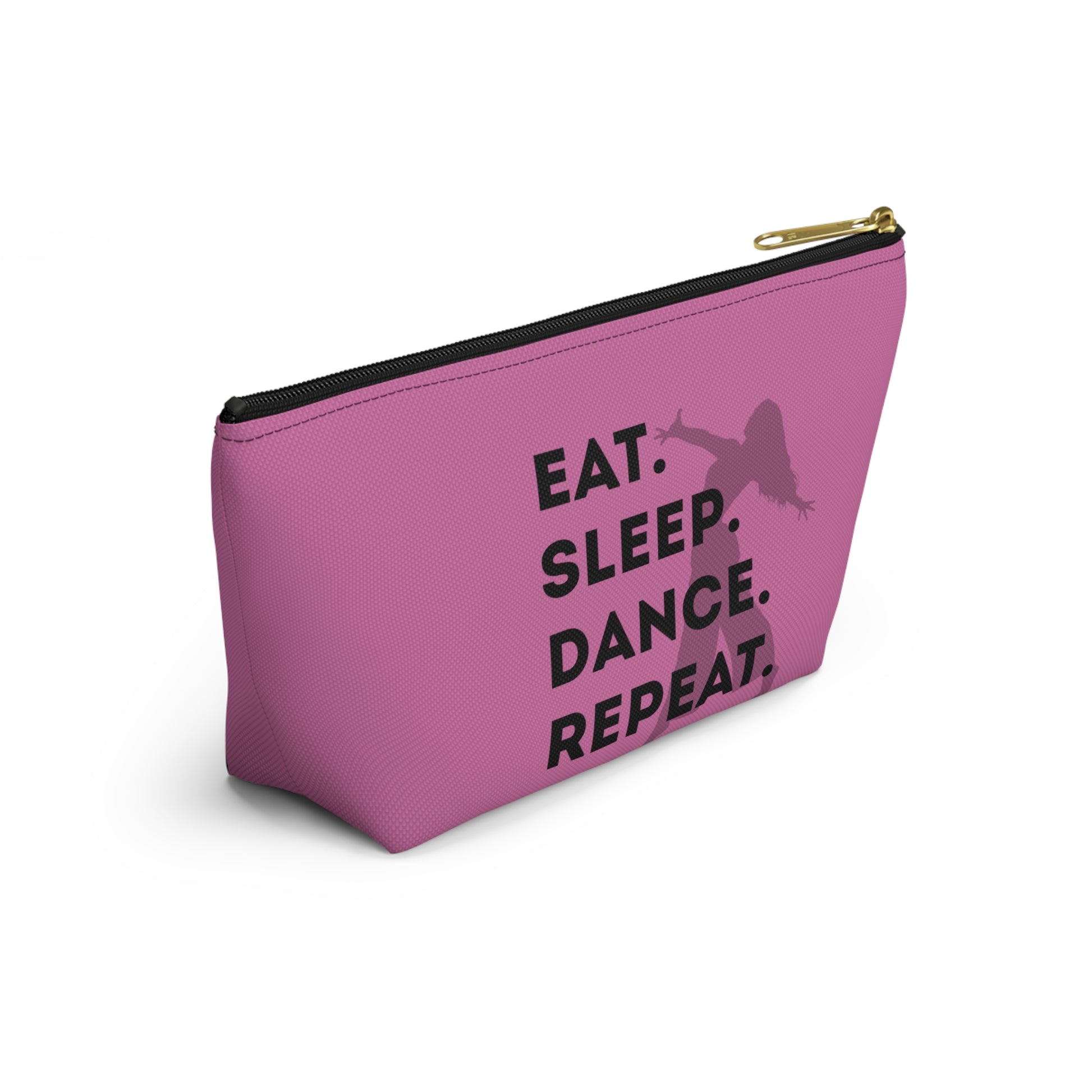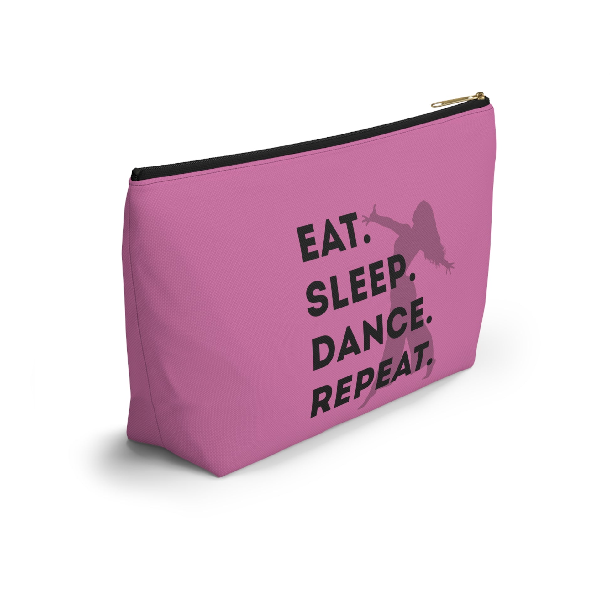 “Eat Sleep Dance Repeat” Makeup Bag – Bold Dancer Graphic – Dance-Themed Zipper Pouch for Cosmetics, Accessories & Travel Essentials
