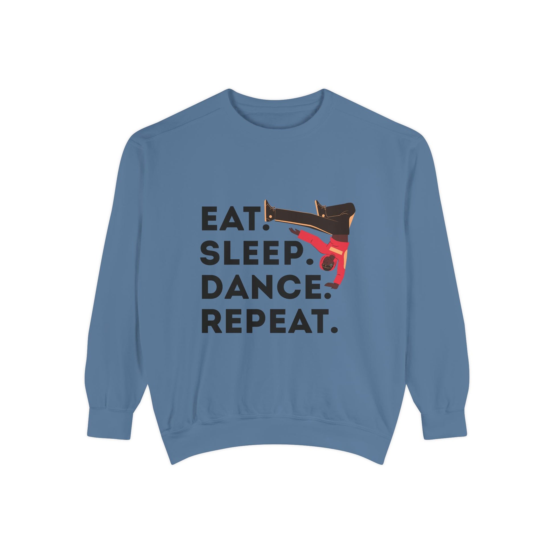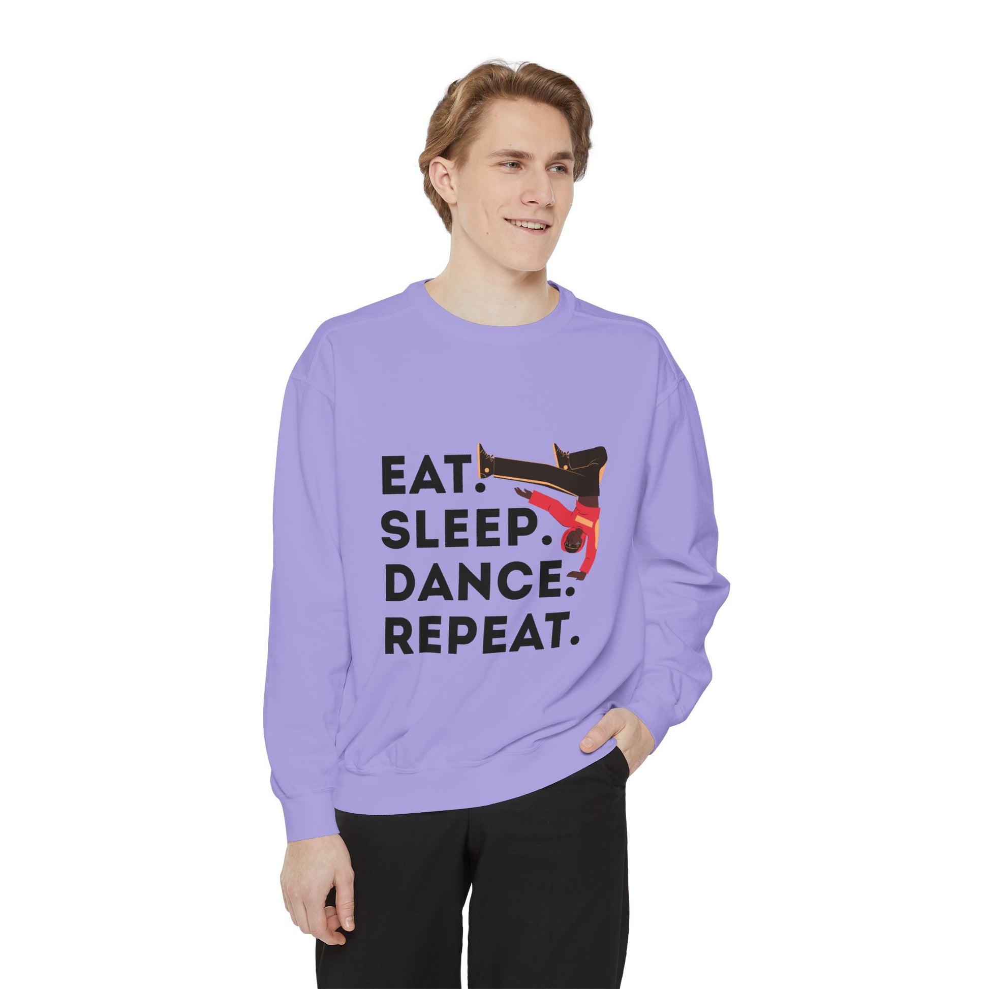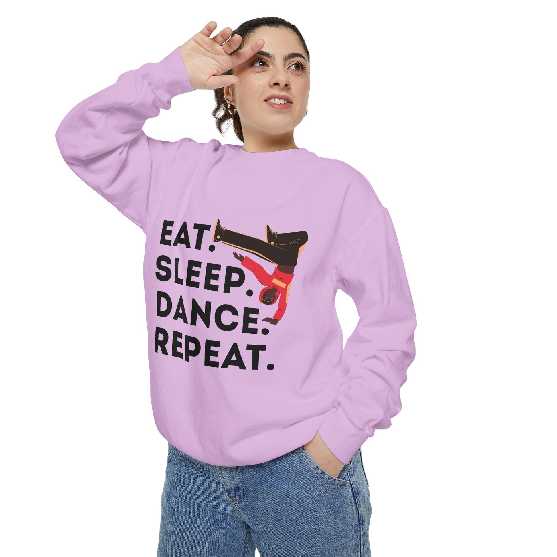 "Eat, Sleep, Dance, Repeat." Unisex Lightweight Crewneck Sweatshirt – Bold B-Boy Graphic Pullover for Hip-Hop Dancers & Street Style Fans