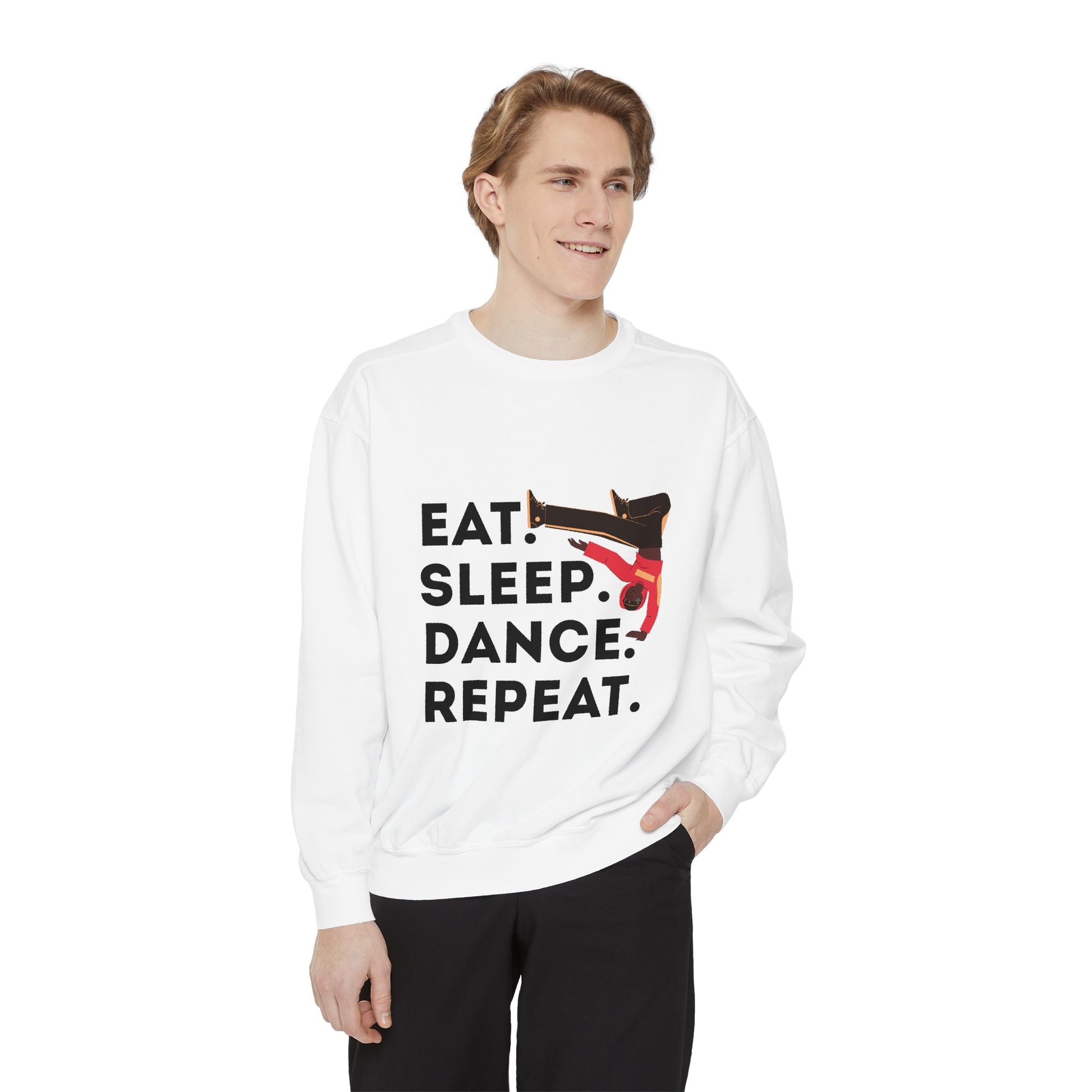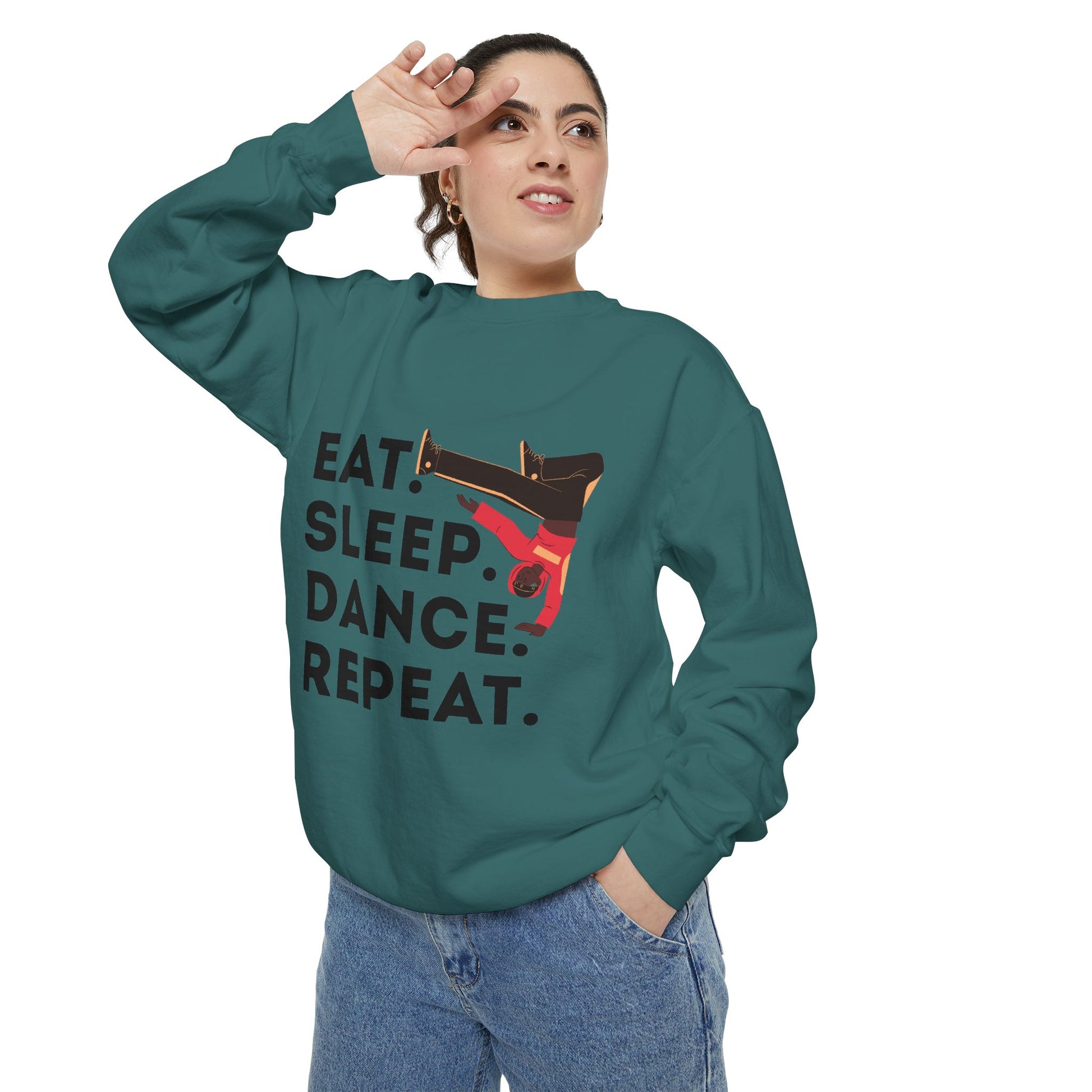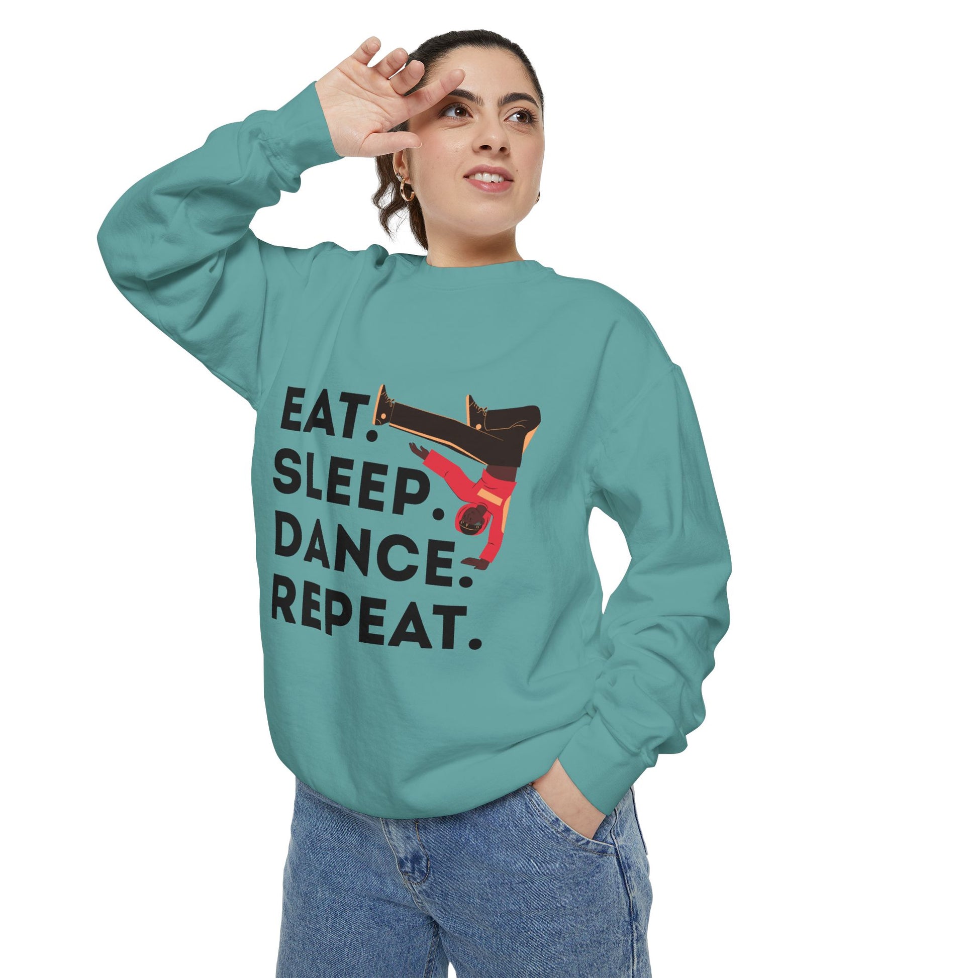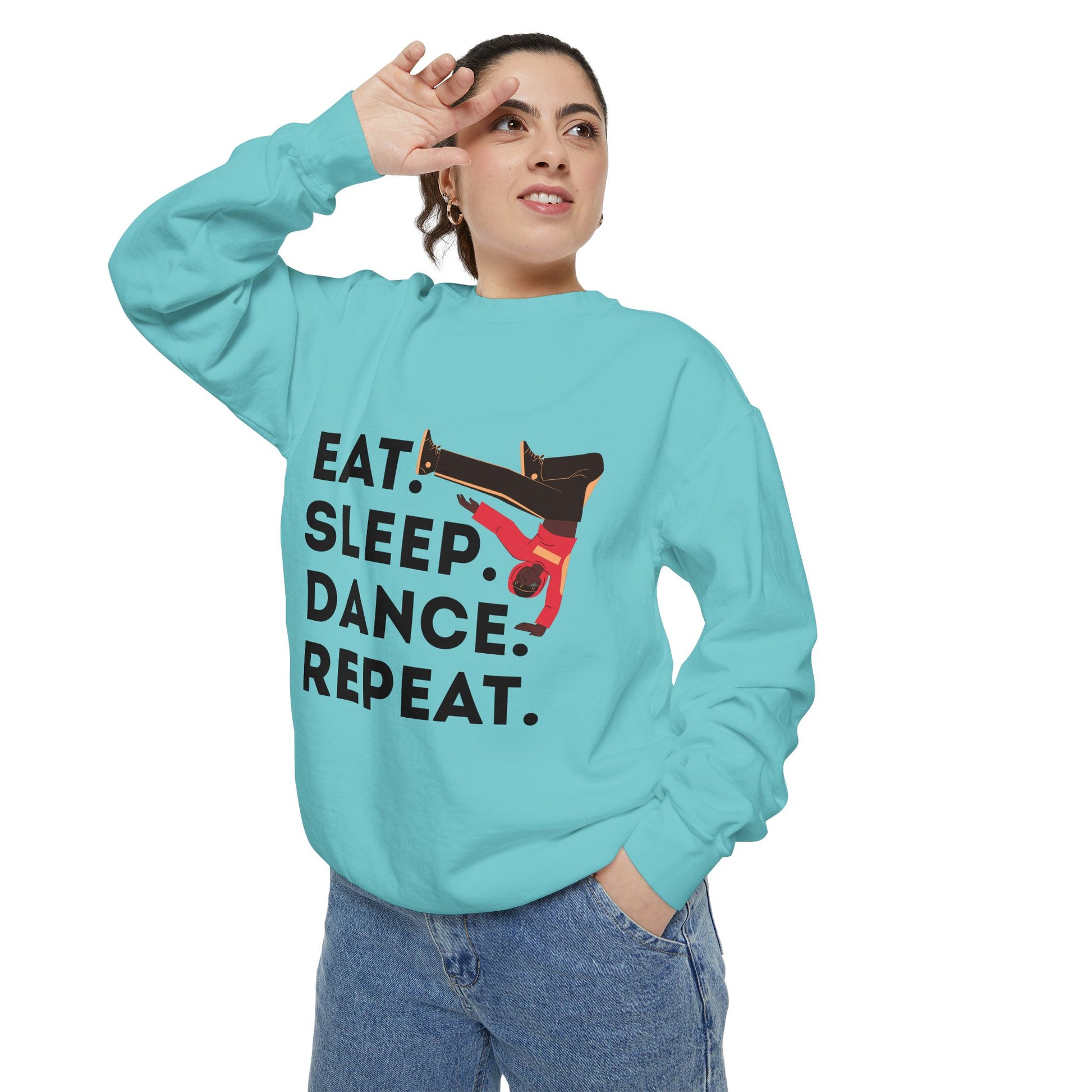 "Eat, Sleep, Dance, Repeat." Unisex Lightweight Crewneck Sweatshirt – Bold B-Boy Graphic Pullover for Hip-Hop Dancers & Street Style Fans