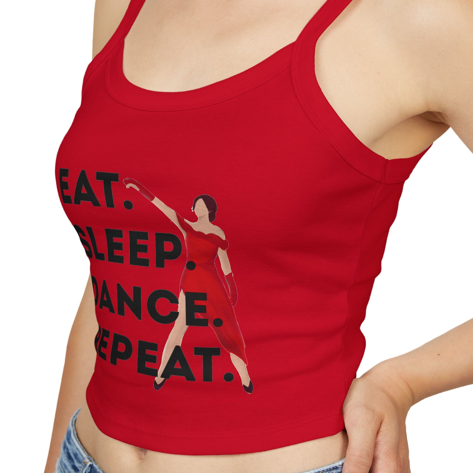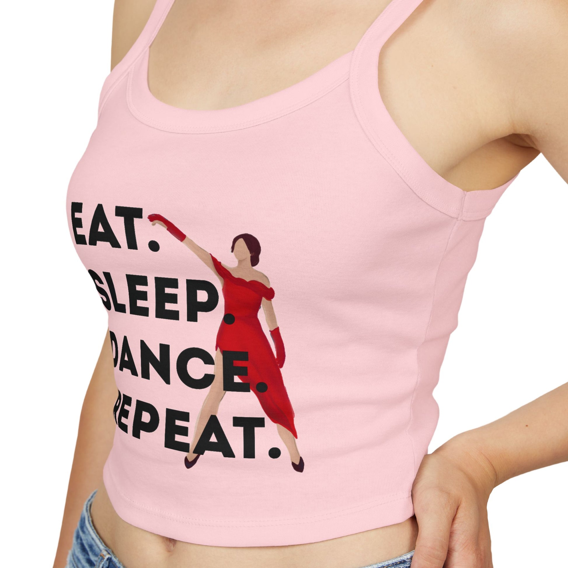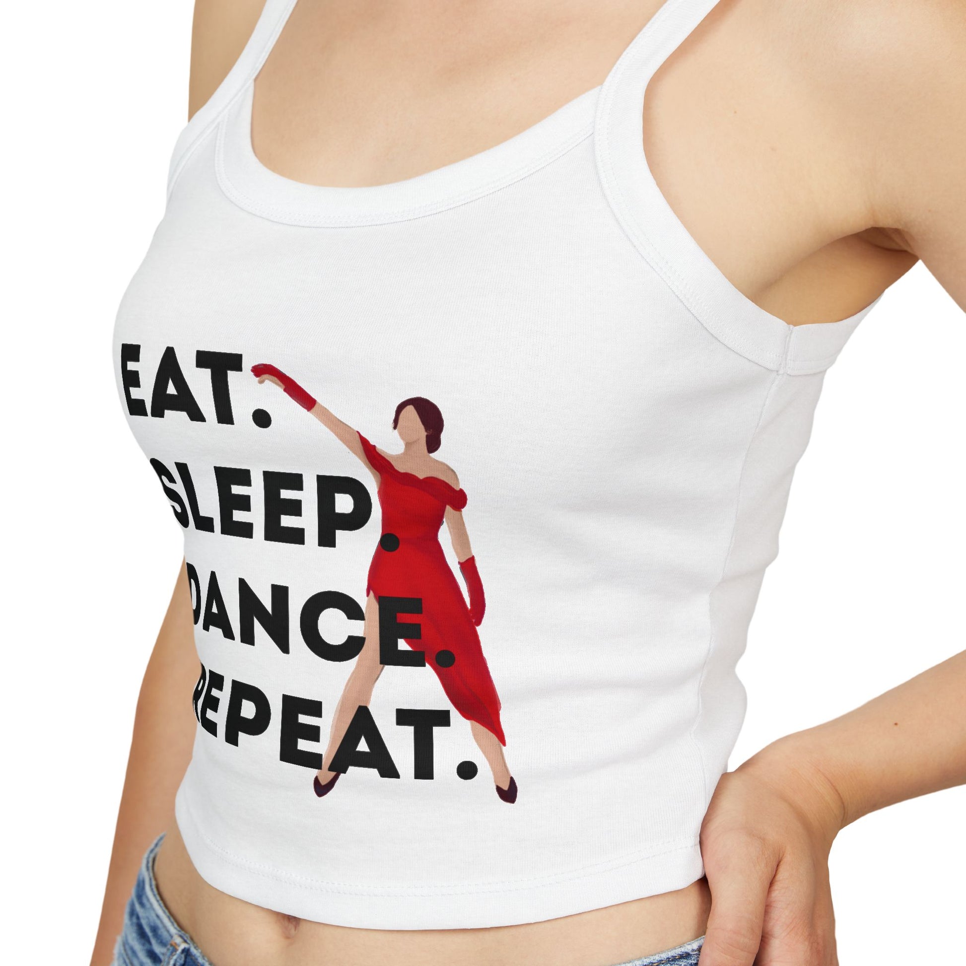"Eat, Sleep, Dance, Repeat" Women’s Spaghetti Strap Tank Top – Bold Dancer Graphic | Motivational Dance Tank for Rehearsals, Classes & Everyday Wear