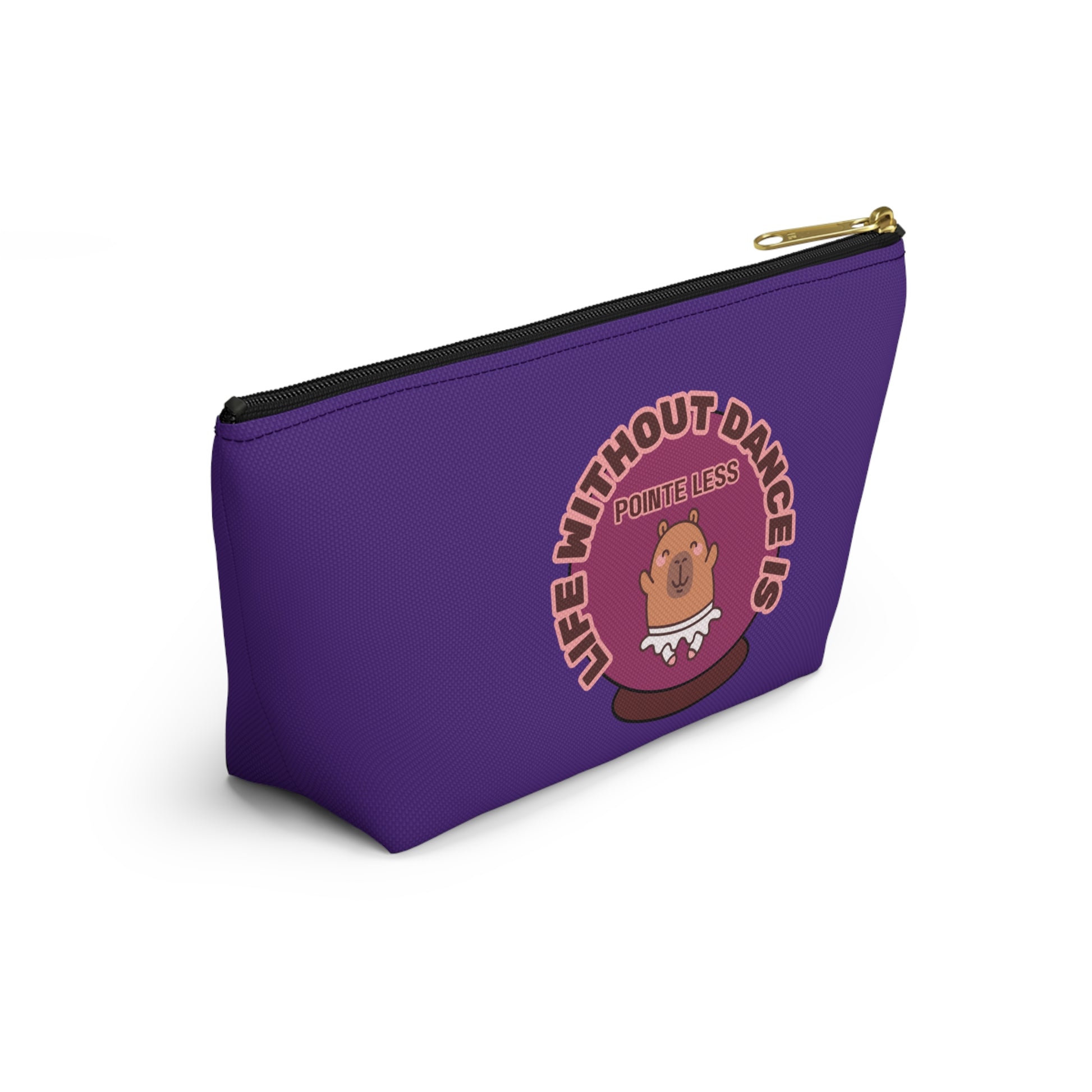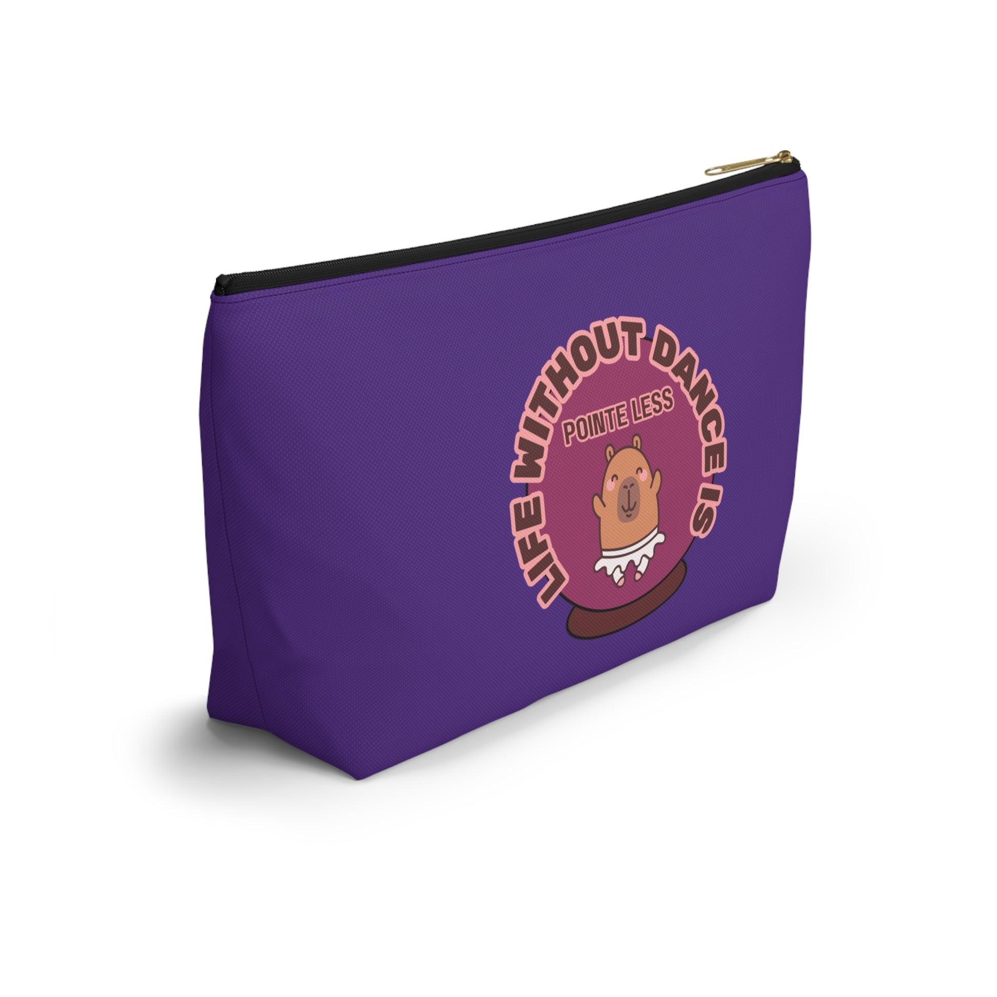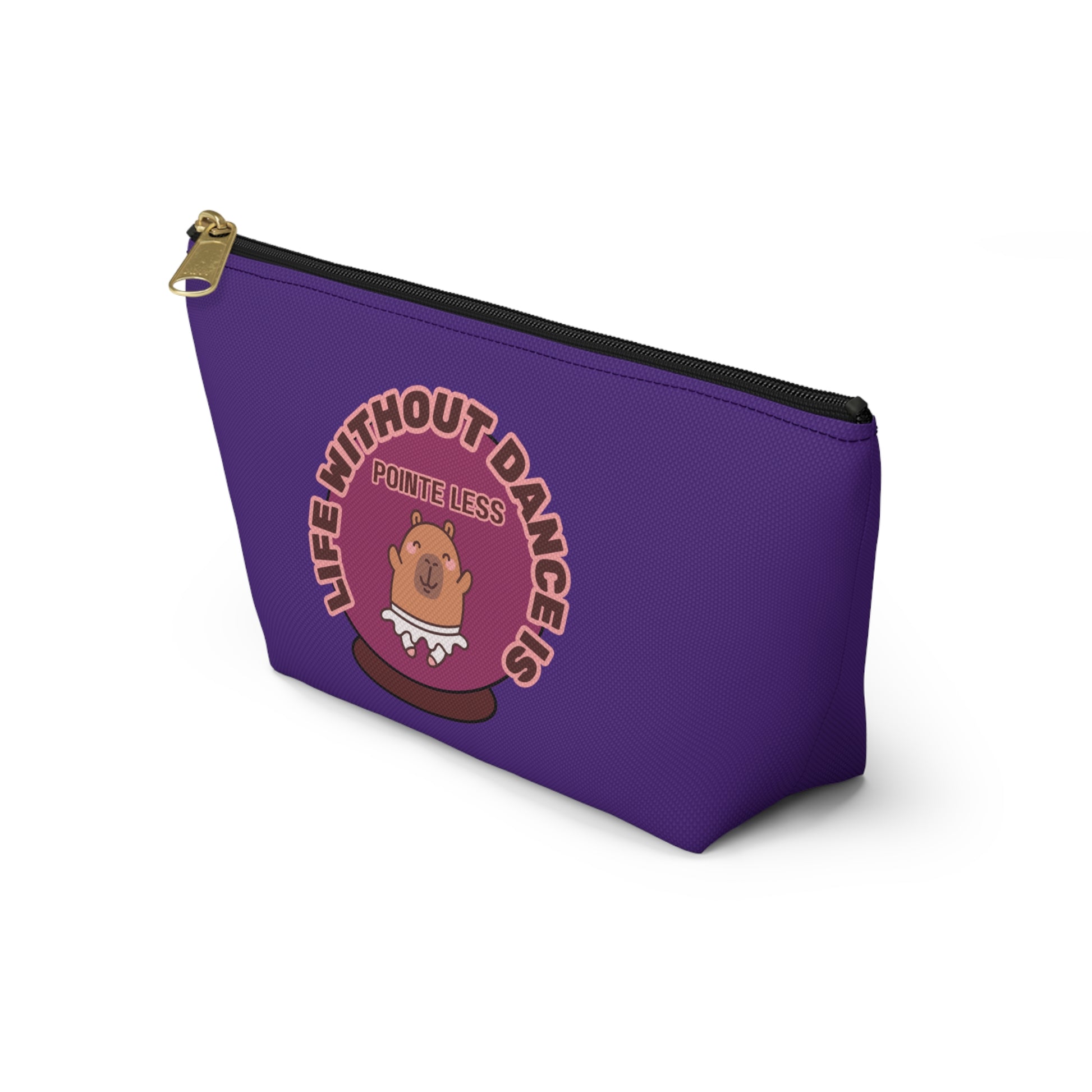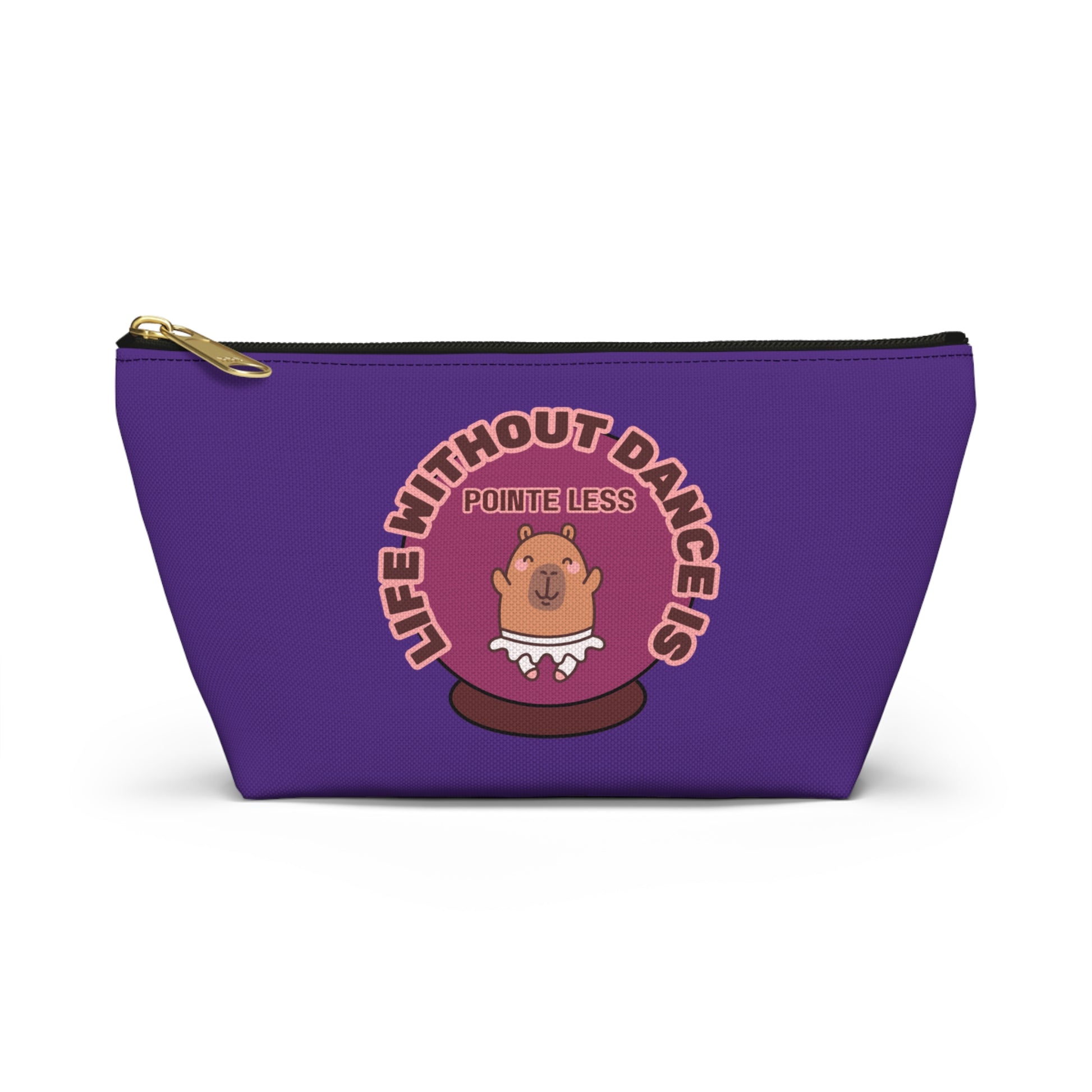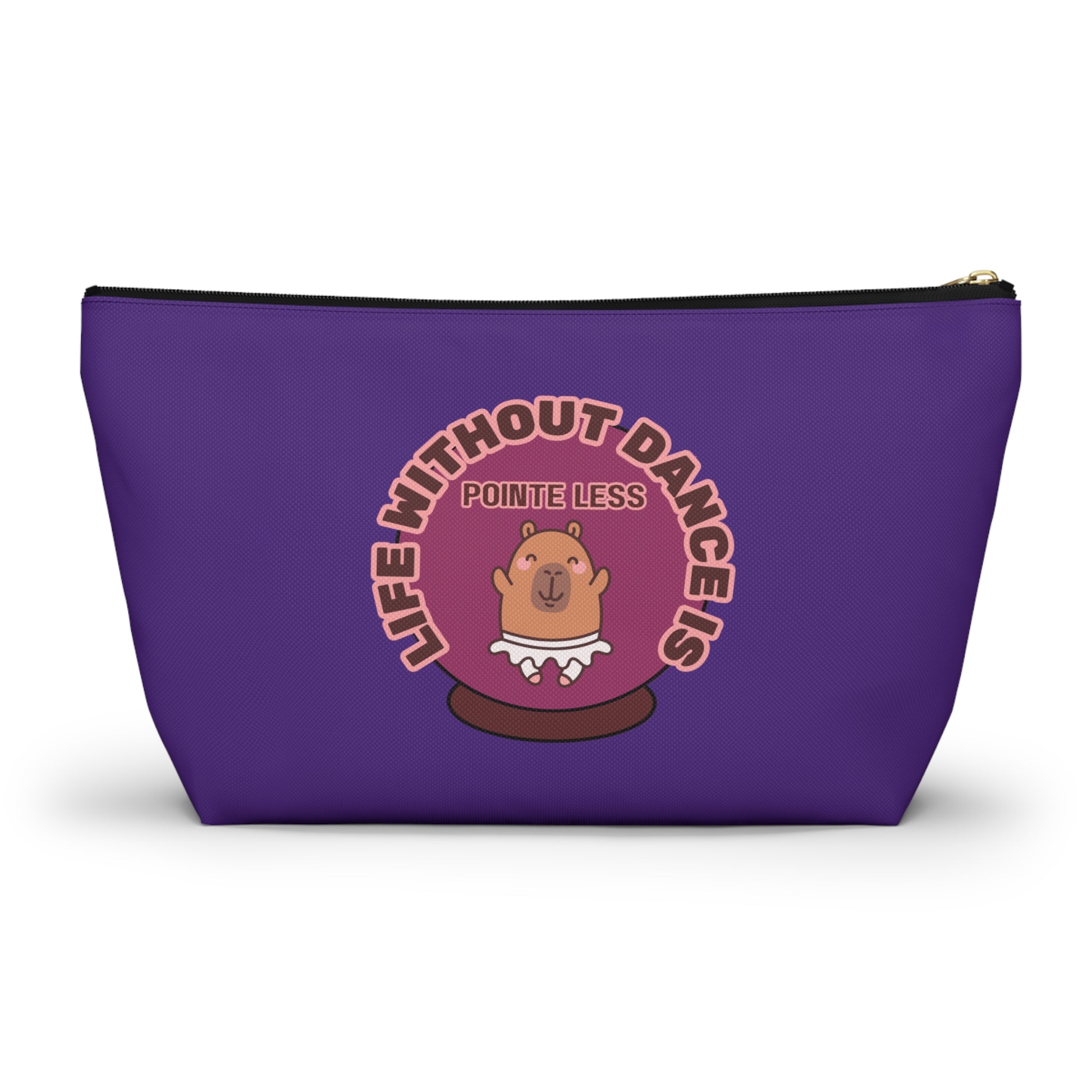 "Life Without Dance is Pointeless" Makeup Bag – Cute Dancing Capybara Graphic – Funny Ballet-Themed Zipper Pouch for Cosmetics, Accessories & Gifts