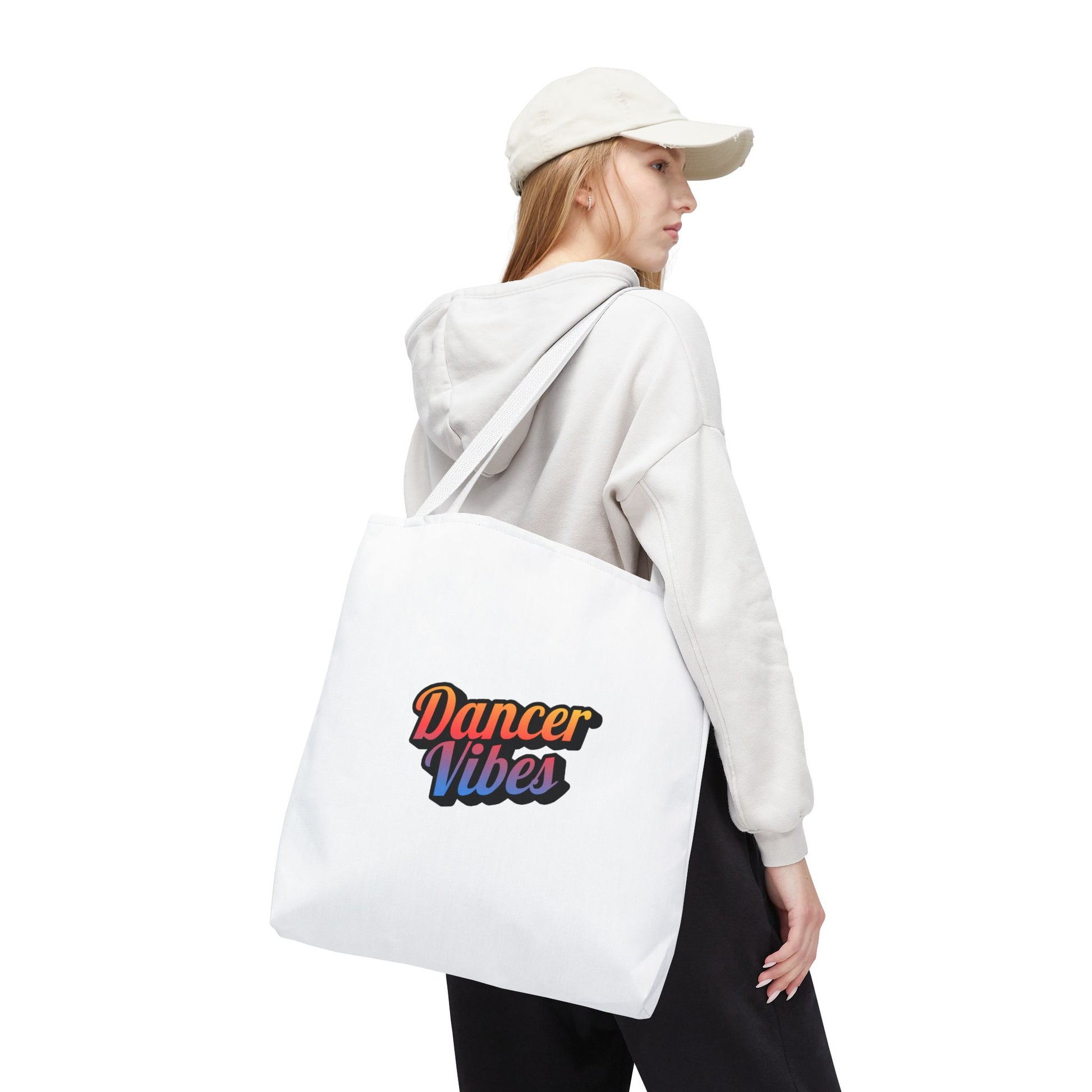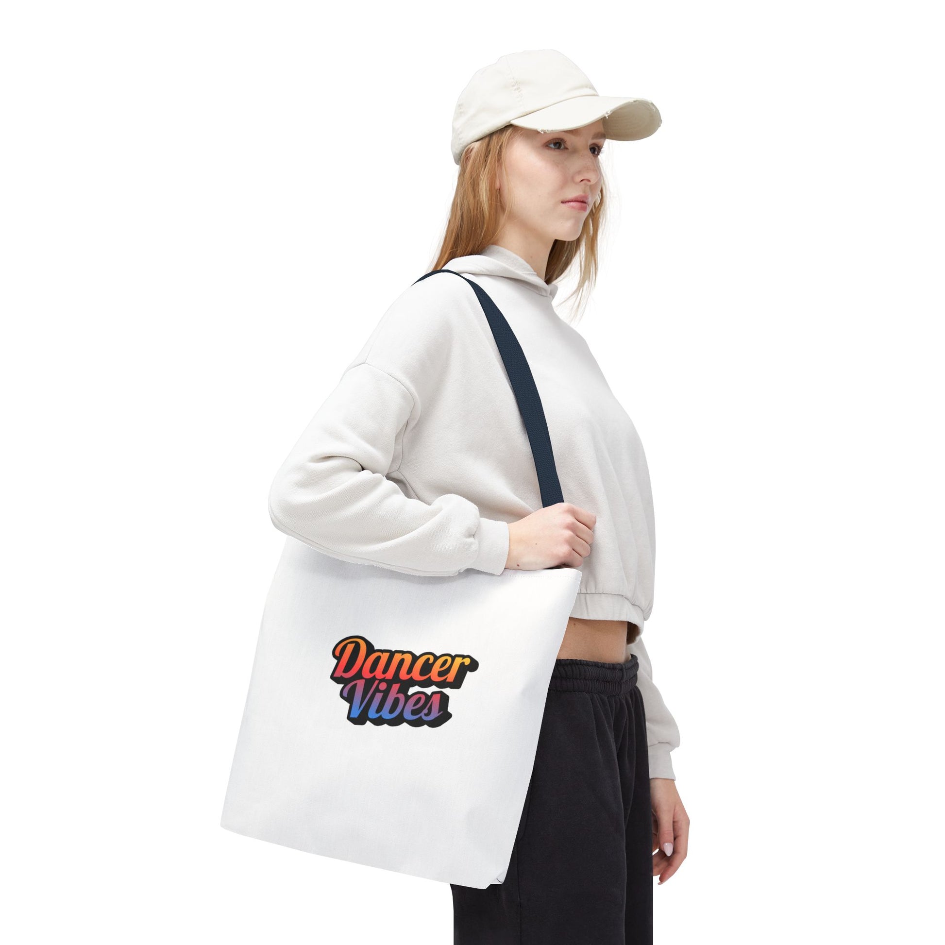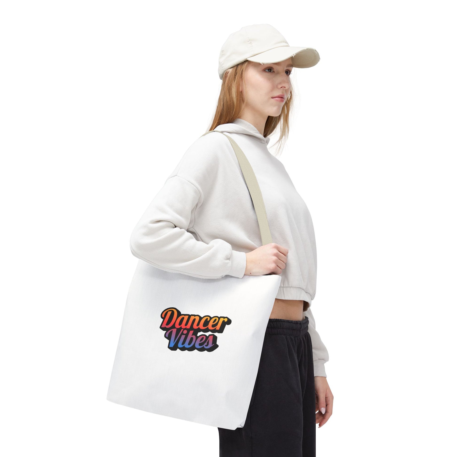 "Dancer Vibes" Canvas Tote Bag – Bold Dance-Themed Text Graphic Bag for Dancers, Students & Everyday Use
