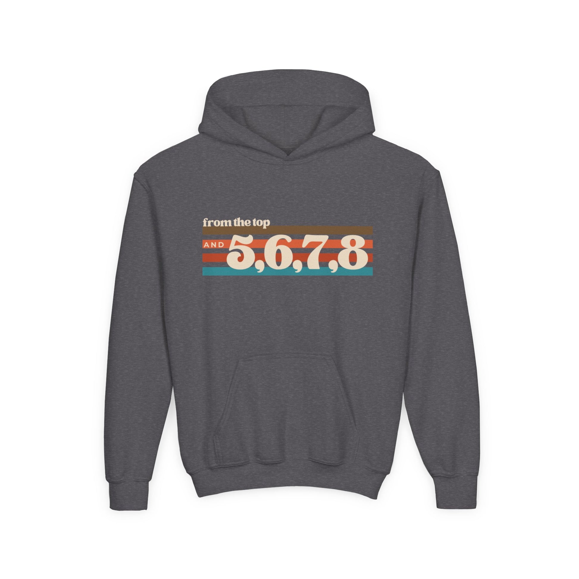 "From the Top and 5, 6, 7, 8" Youth Hooded Sweatshirt – Retro Dance Rehearsal Graphic Hoodie for Kids and Teens
