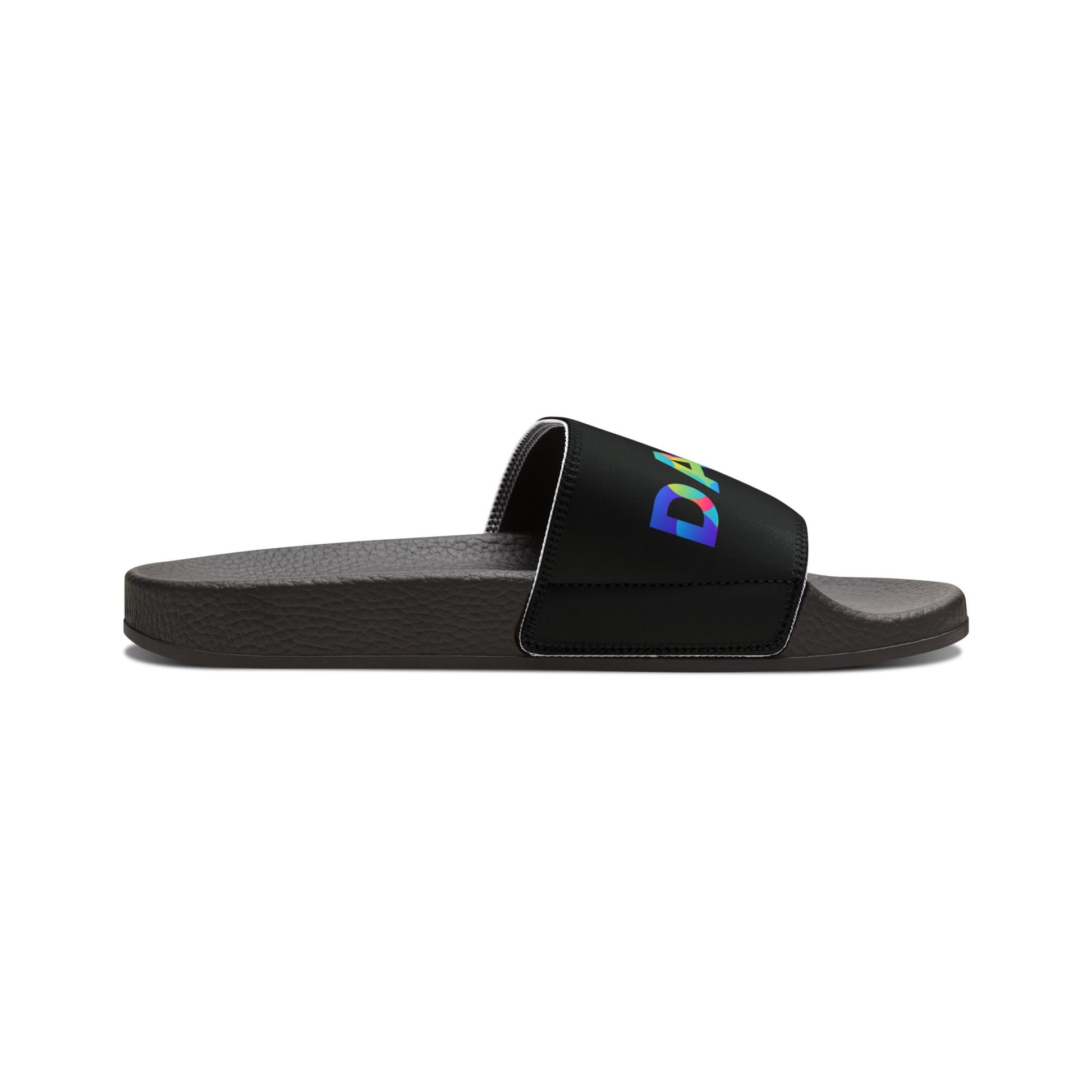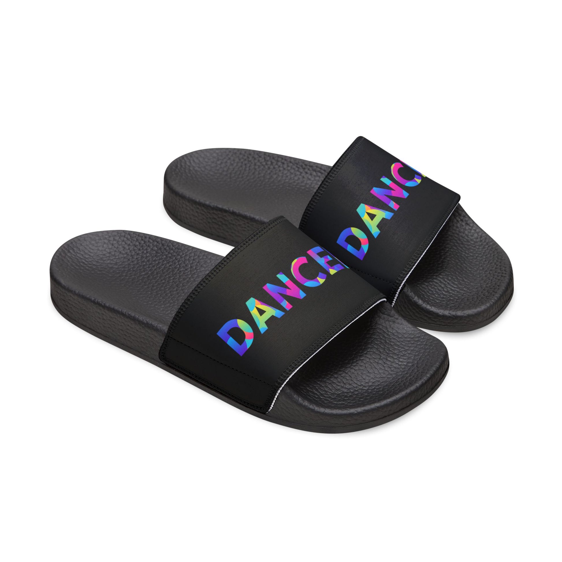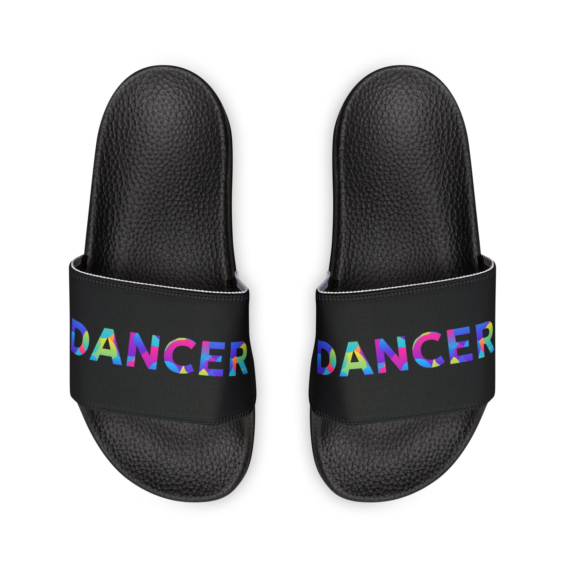 WOMEN'S SIZES - “Dancer” Colorful Text – Dance-Inspired Custom Slides with Removable Straps | Women’s Sandal Slides