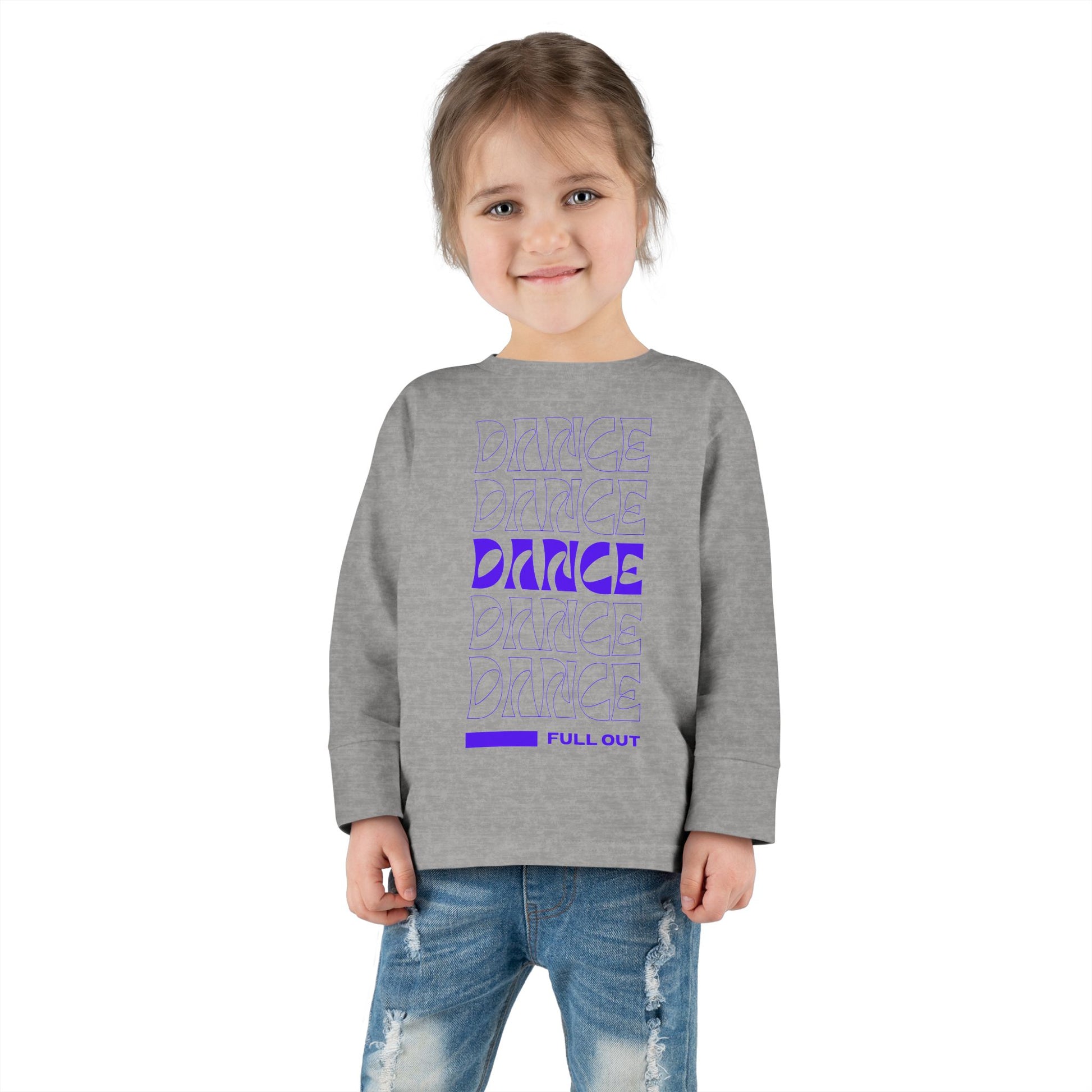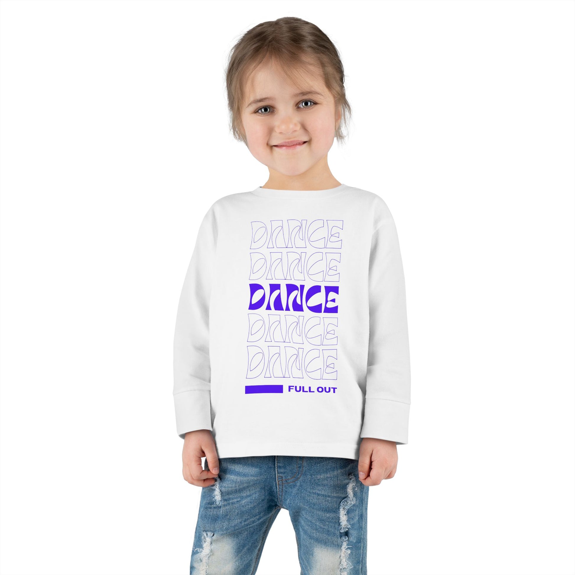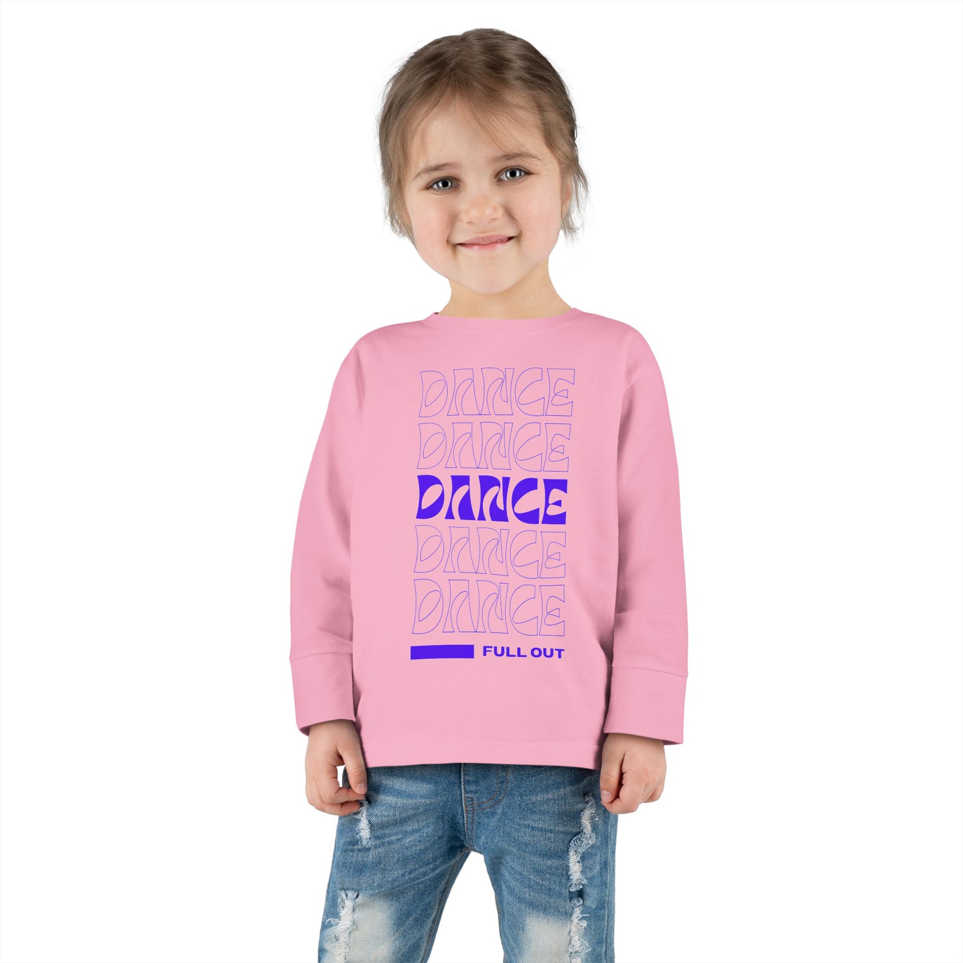 "Dancer – Full Out" Toddler Long Sleeve Dance Tee – Bold Motivational Graphic Shirt for Young Movers