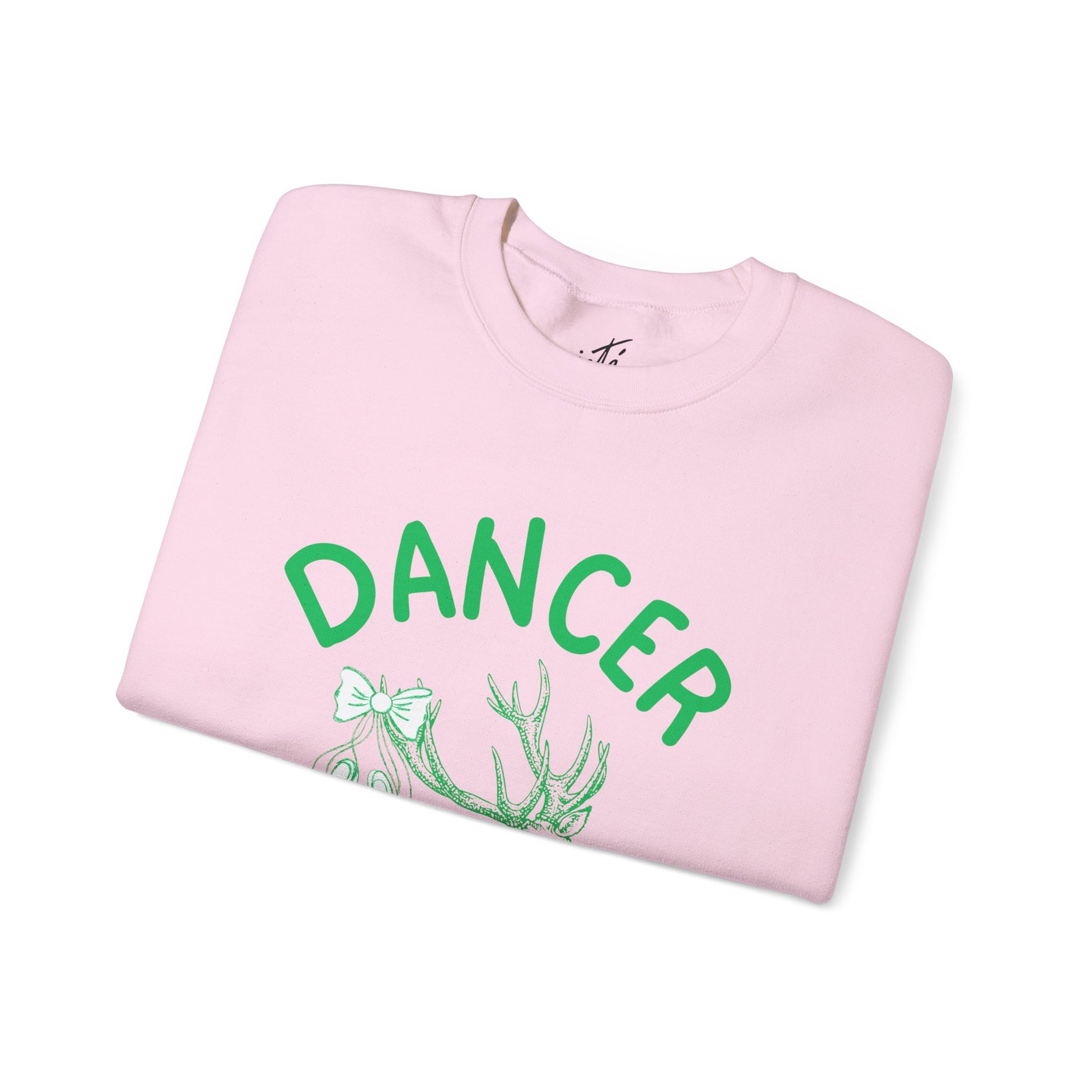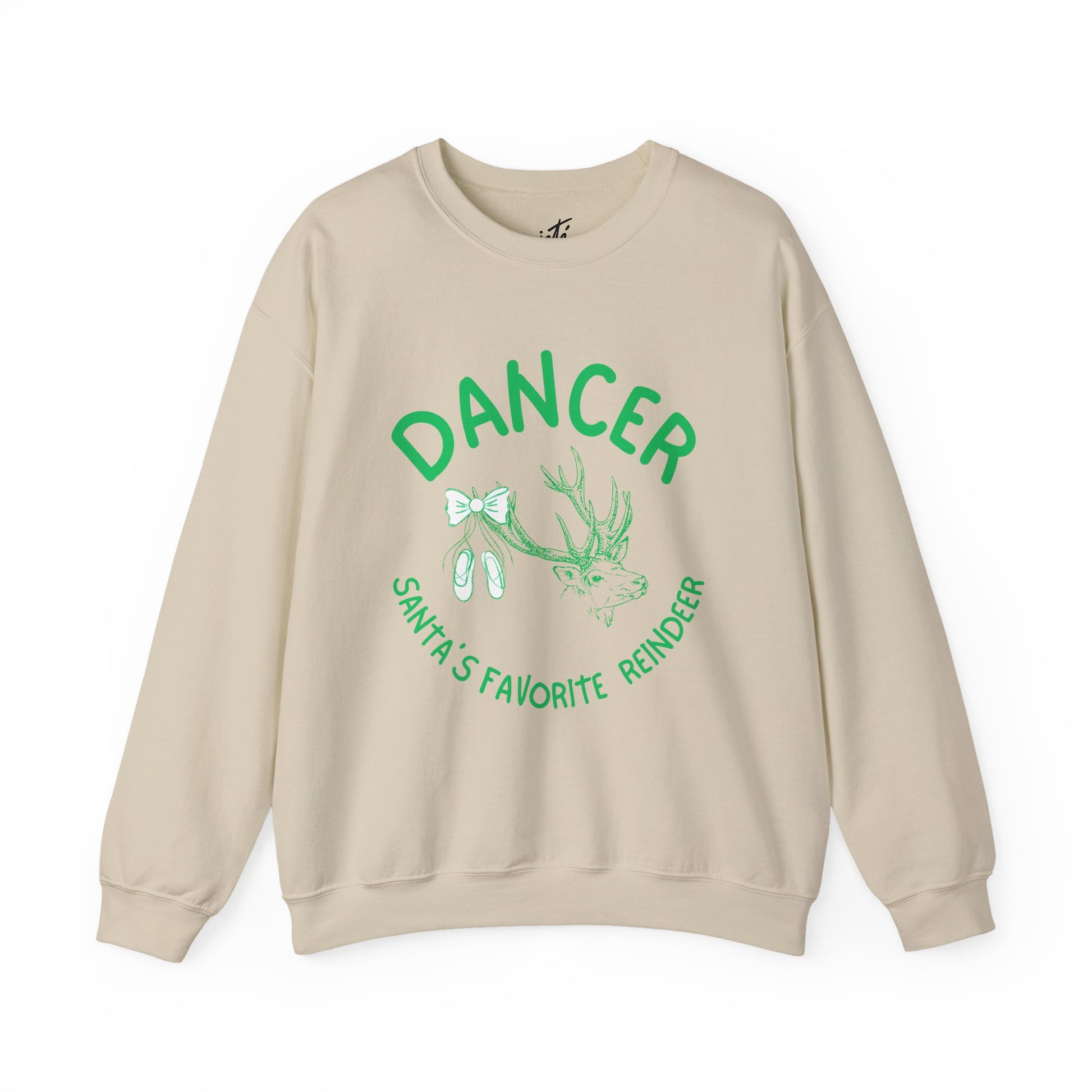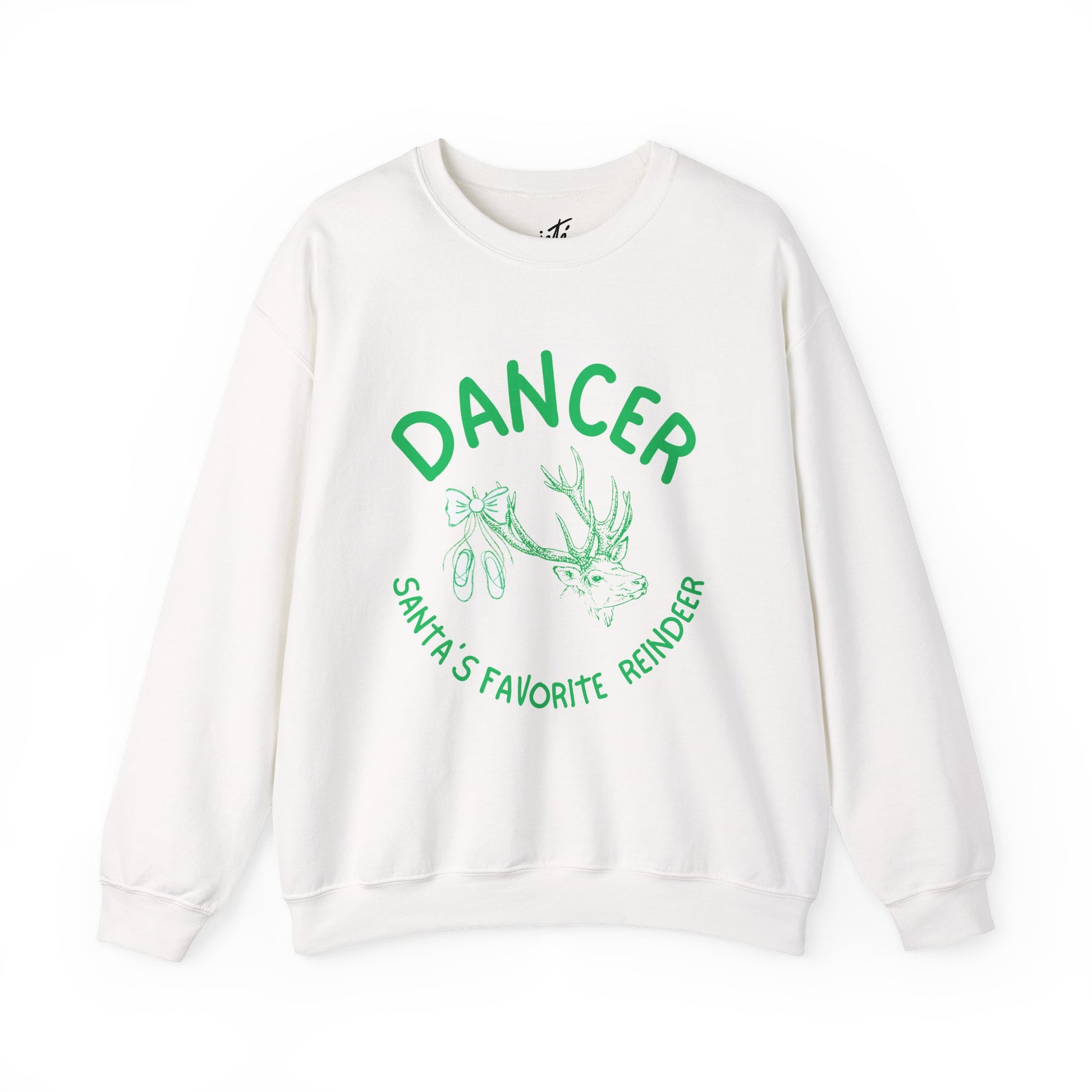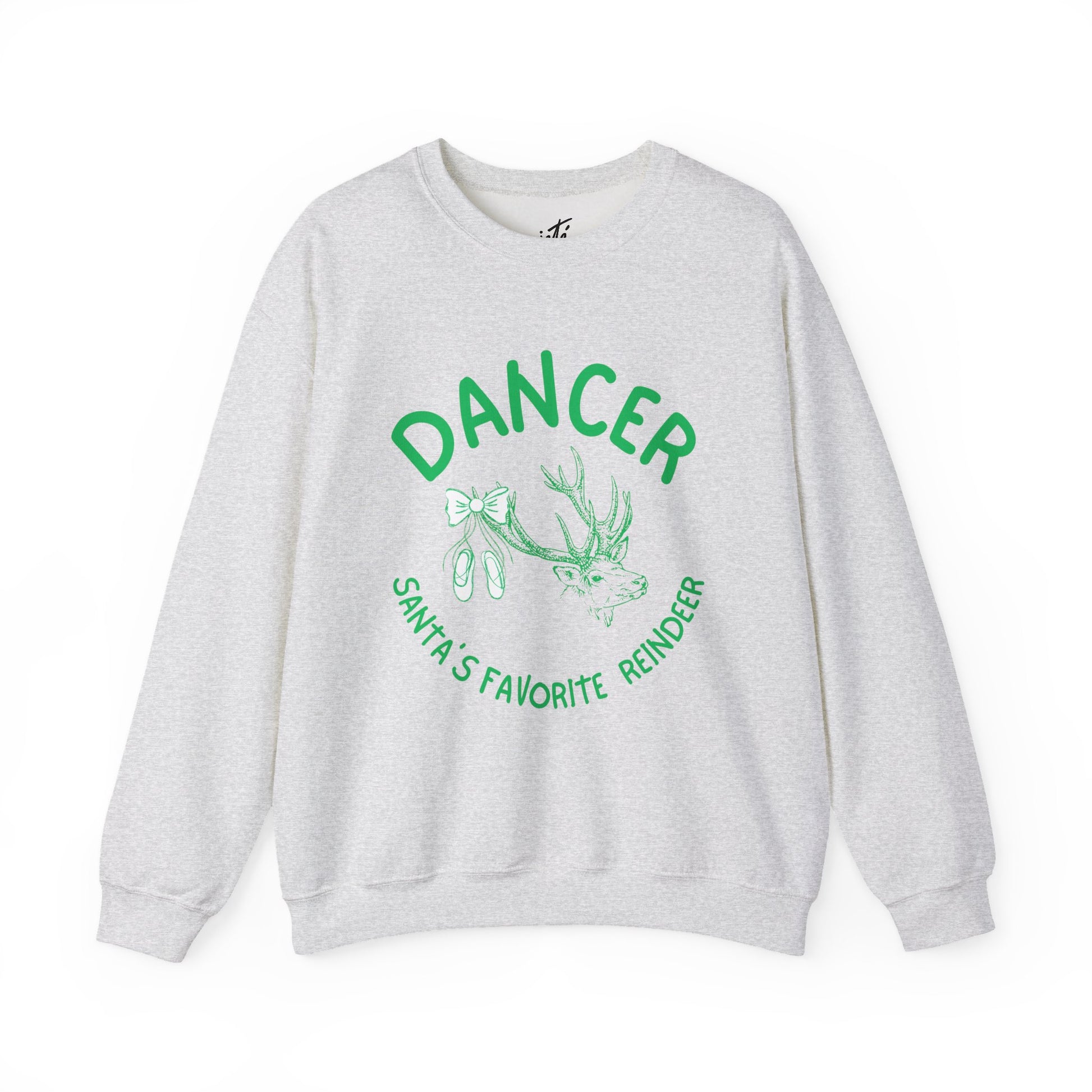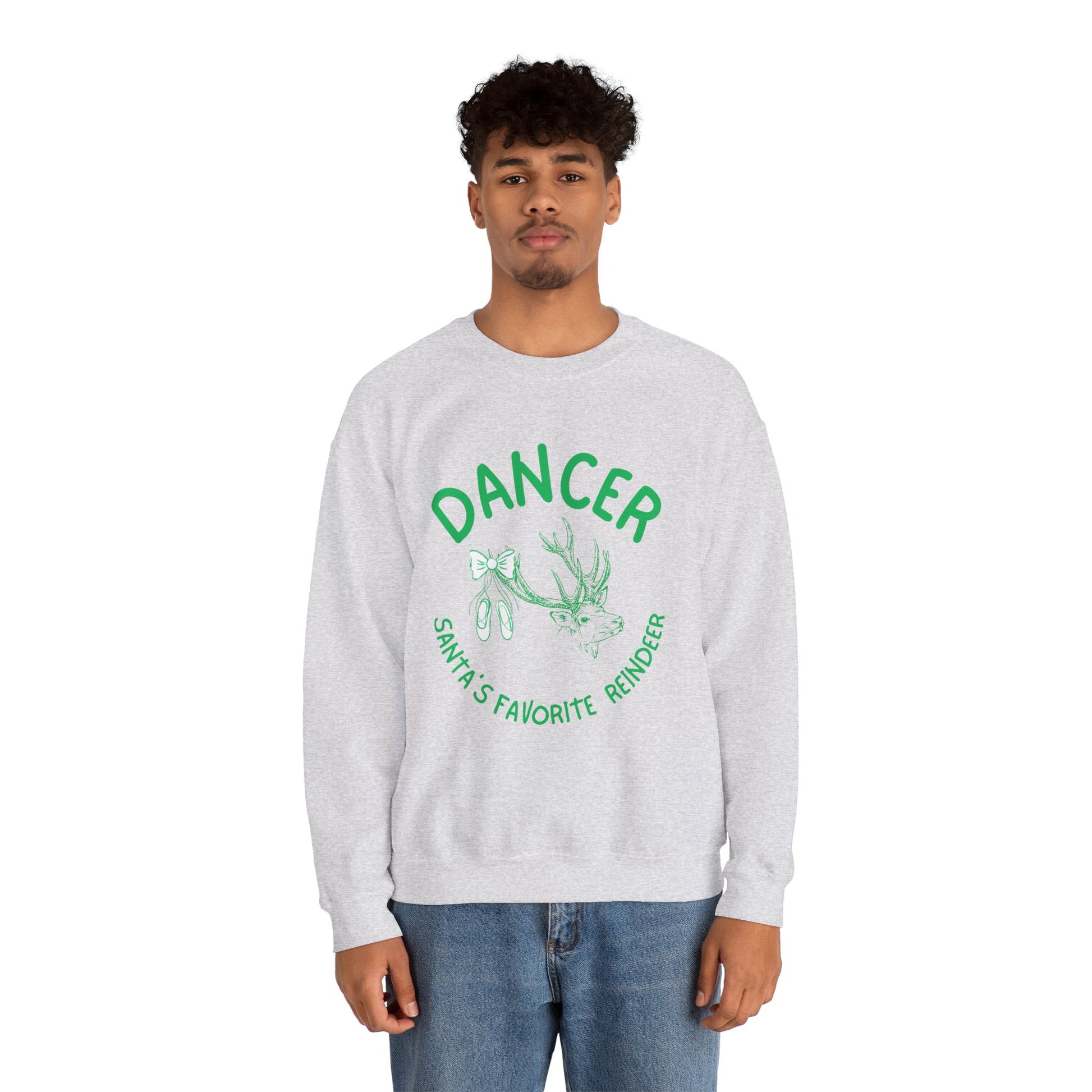 “Dancer, Santa’s Favorite Reindeer” ADULT SWEATSHIRT Unisex Heavy Blend Crewneck with Vintage Reindeer Graphic – Festive Christmas Dance Sweatshirt for Dancers & Holiday Events
