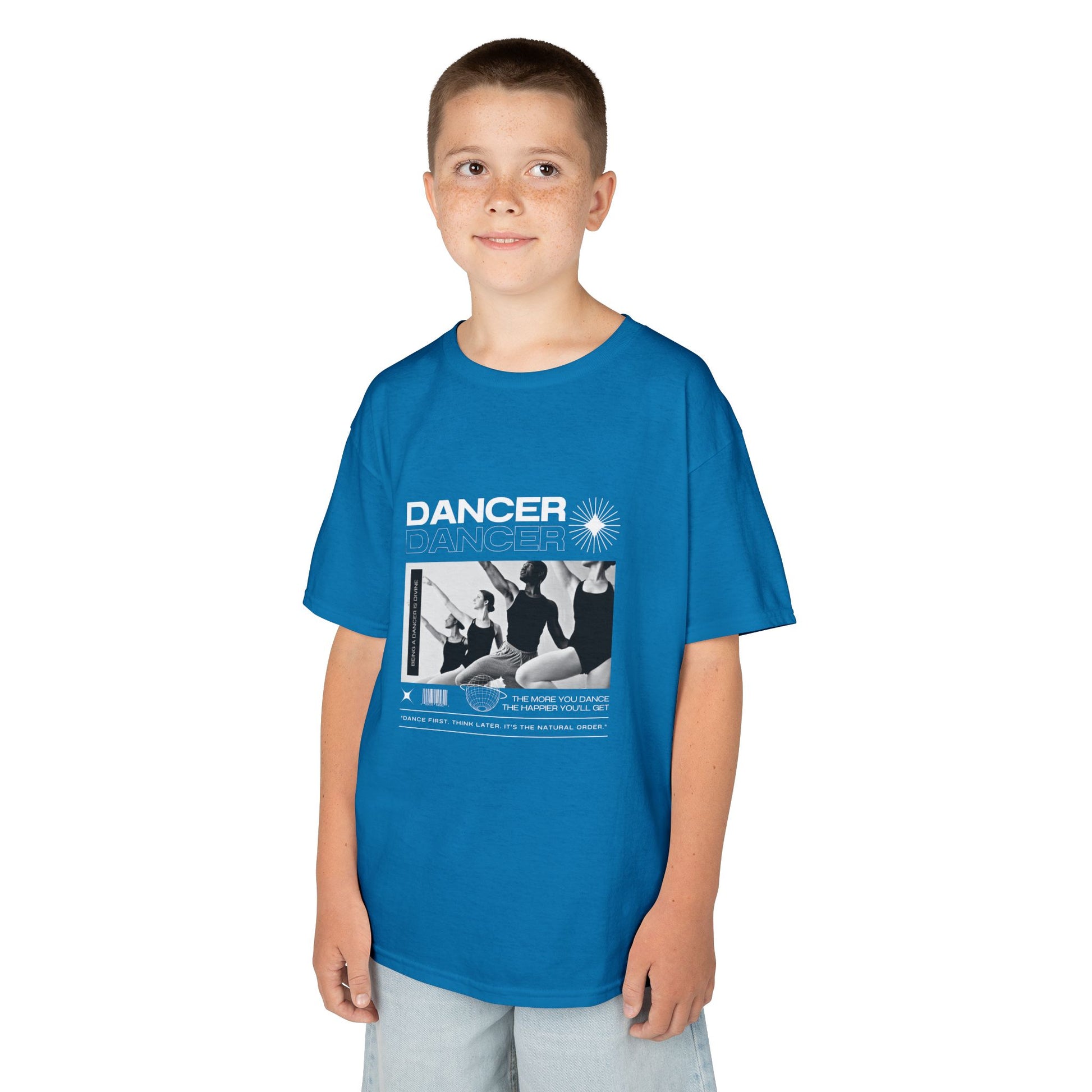 Text on Tee: "Dancer, The More You Dance, The Happier You'll Get. Dance first. Think later. It's the natural order. Being a dancer is divine."