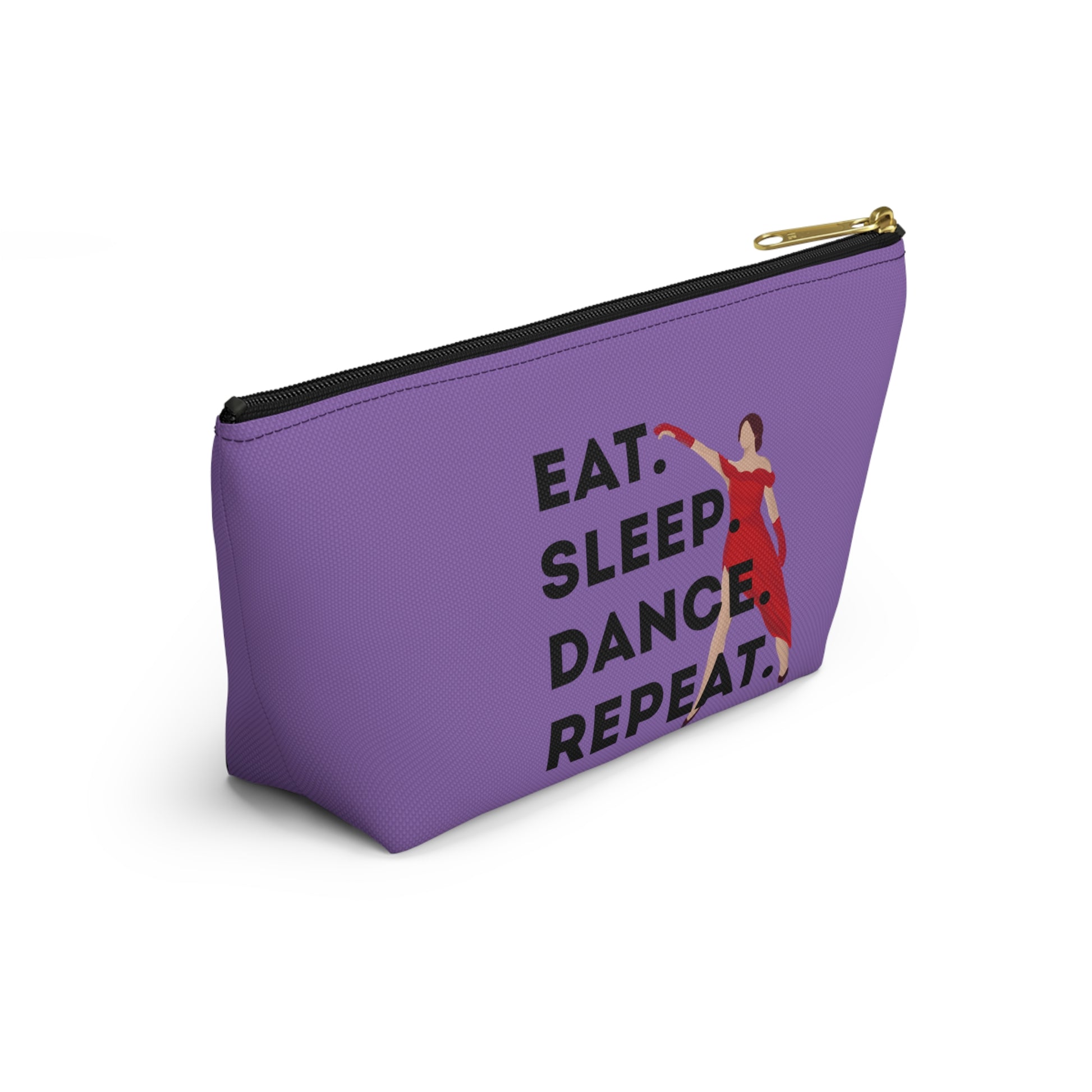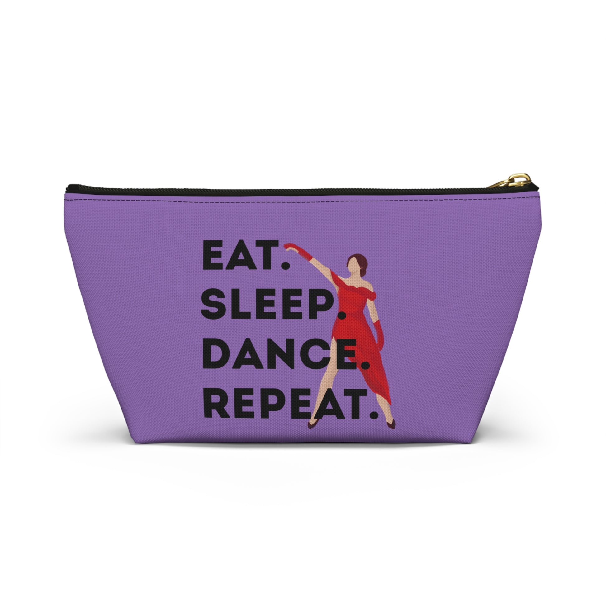 “Eat Sleep Dance Repeat” Makeup Bag – Bold Dancer Graphic – Dance-Themed Zipper Pouch for Cosmetics, Accessories & Travel Essentials
