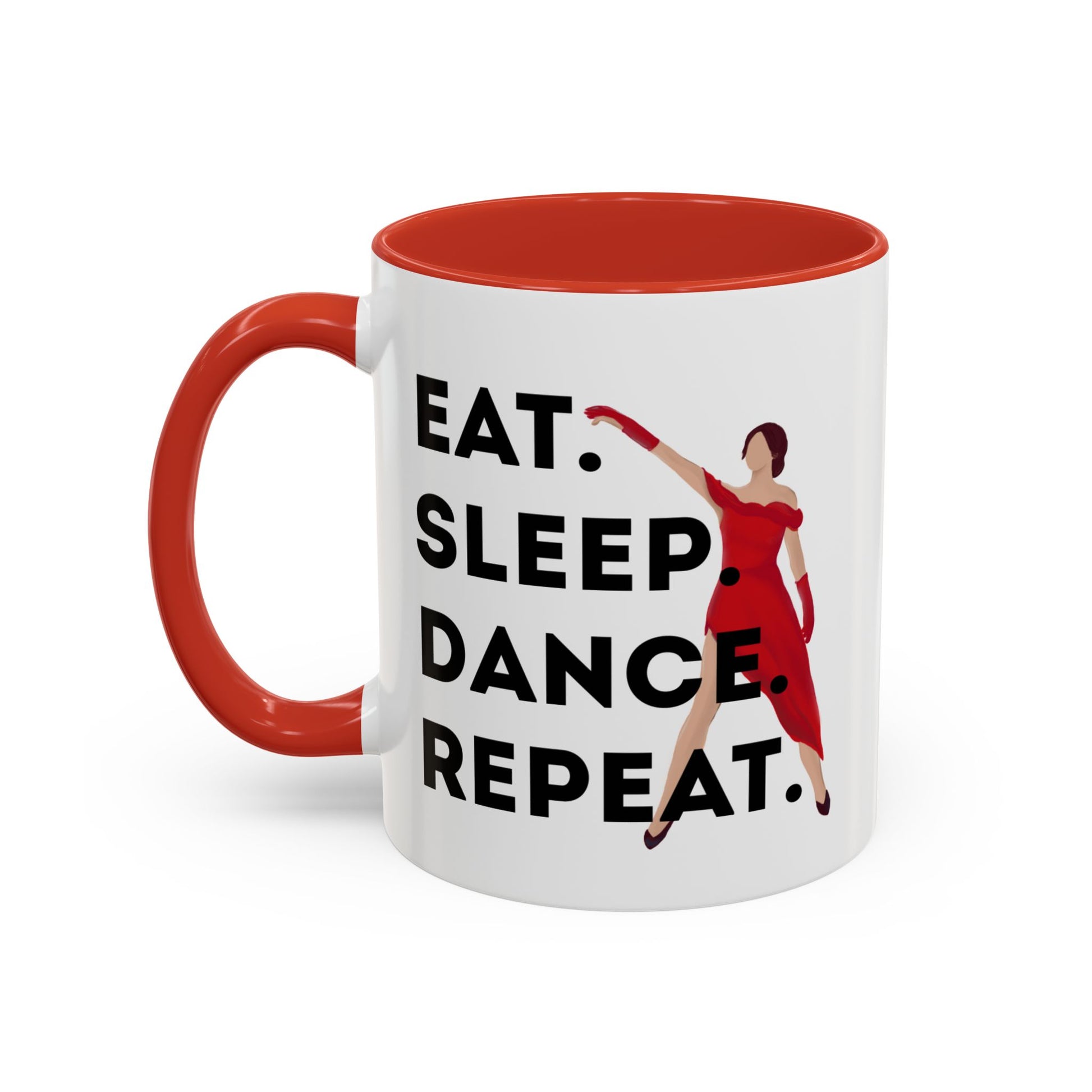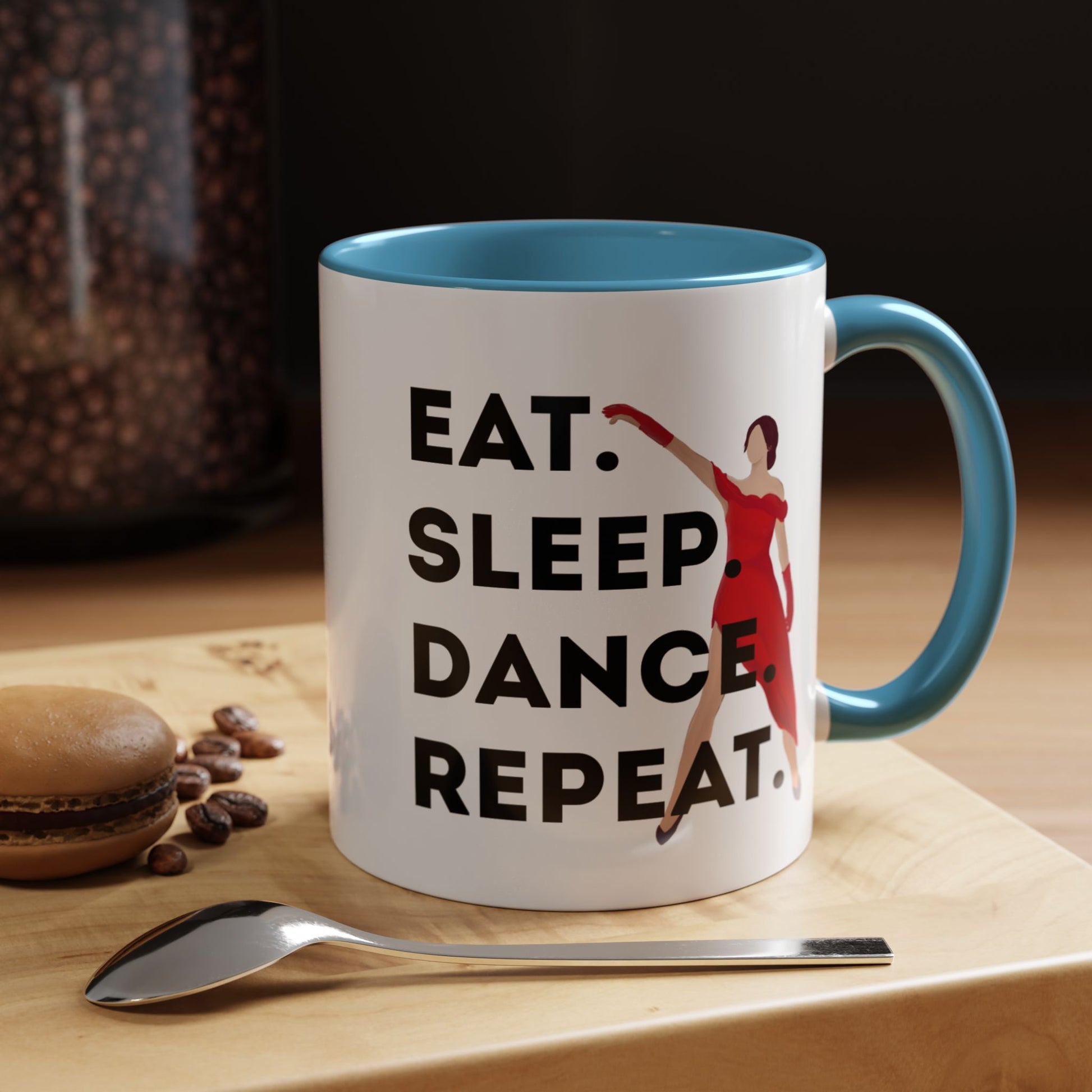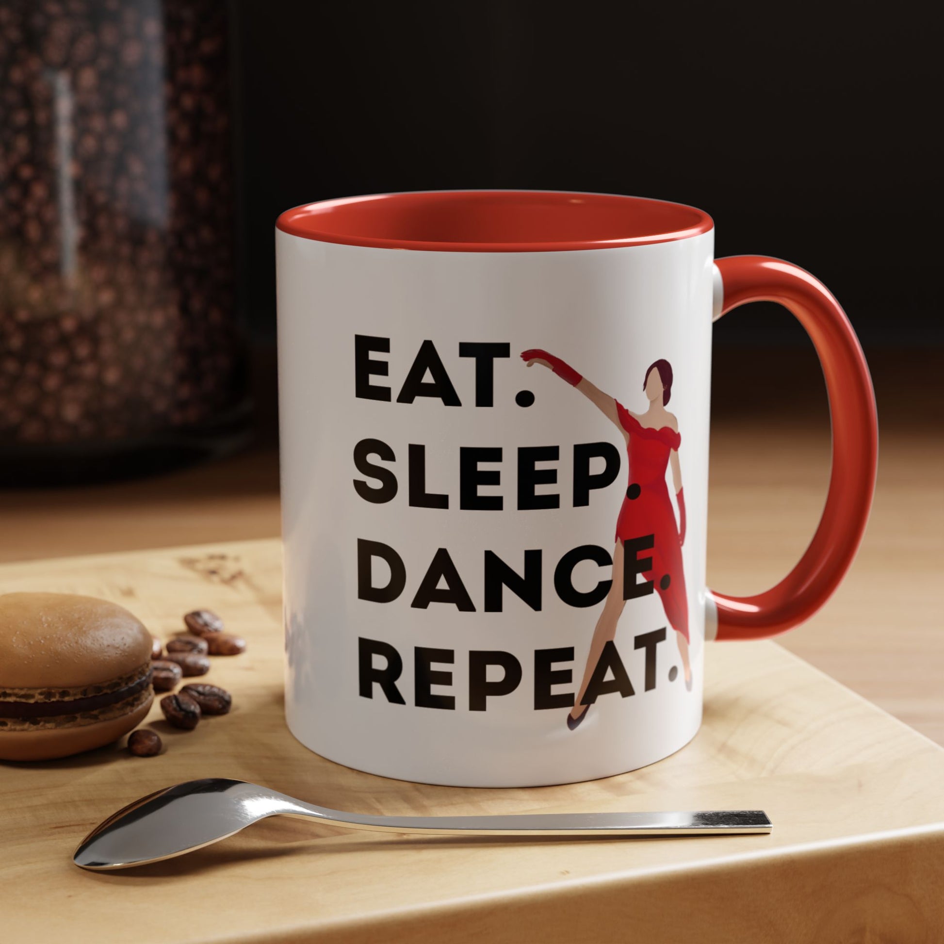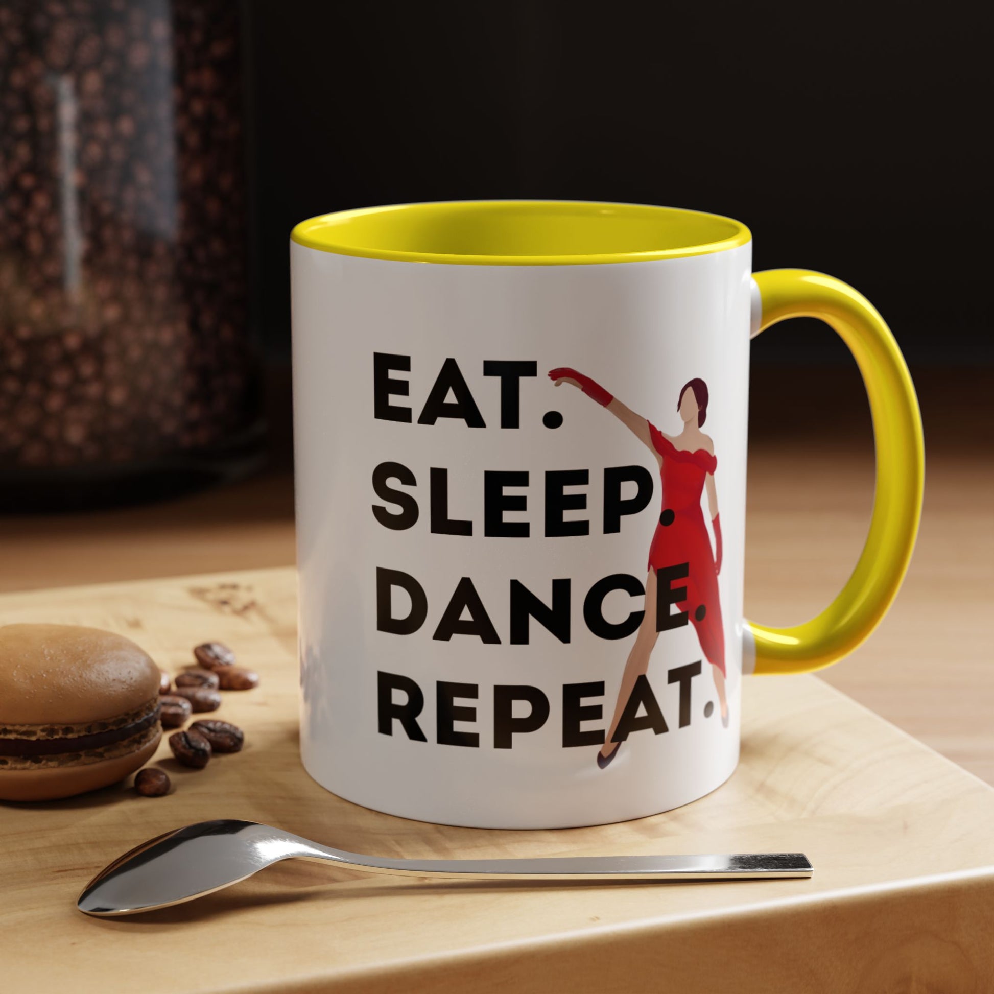 "Eat Sleep Dance Repeat" Accent Coffee Mug – Bold Dancer Graphic Ceramic Mug for Dance Lovers