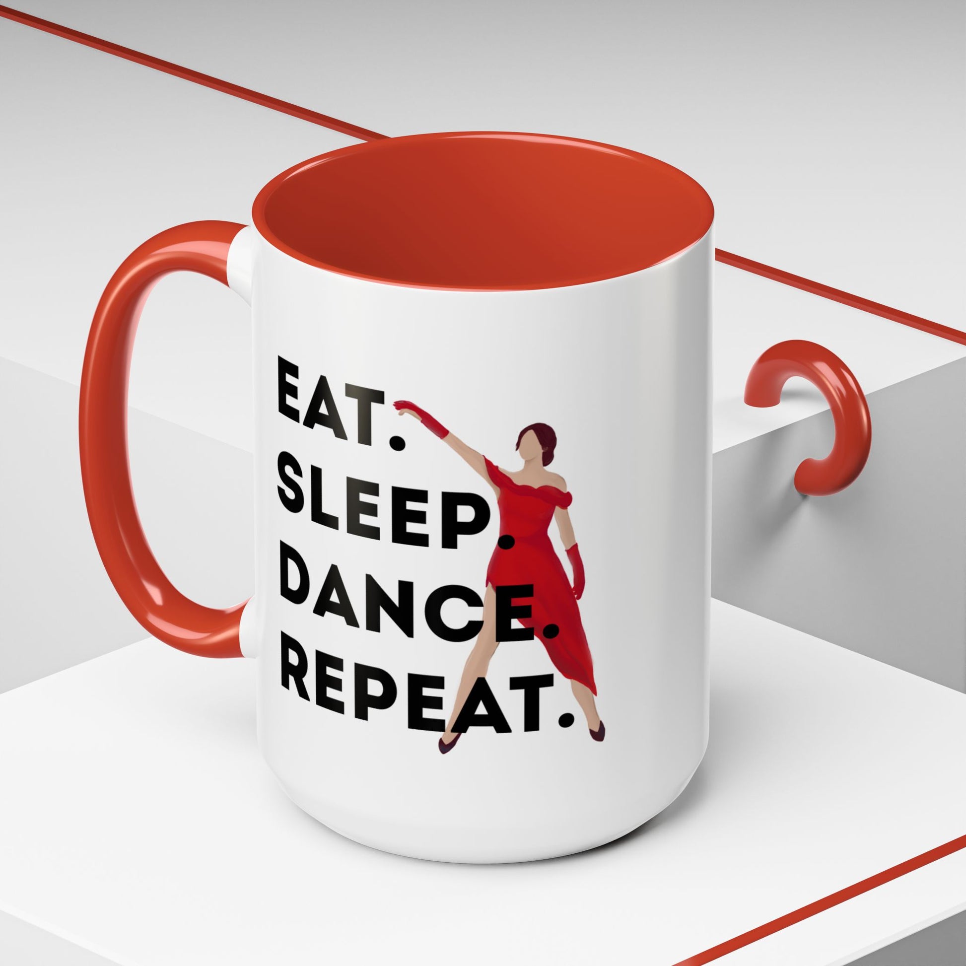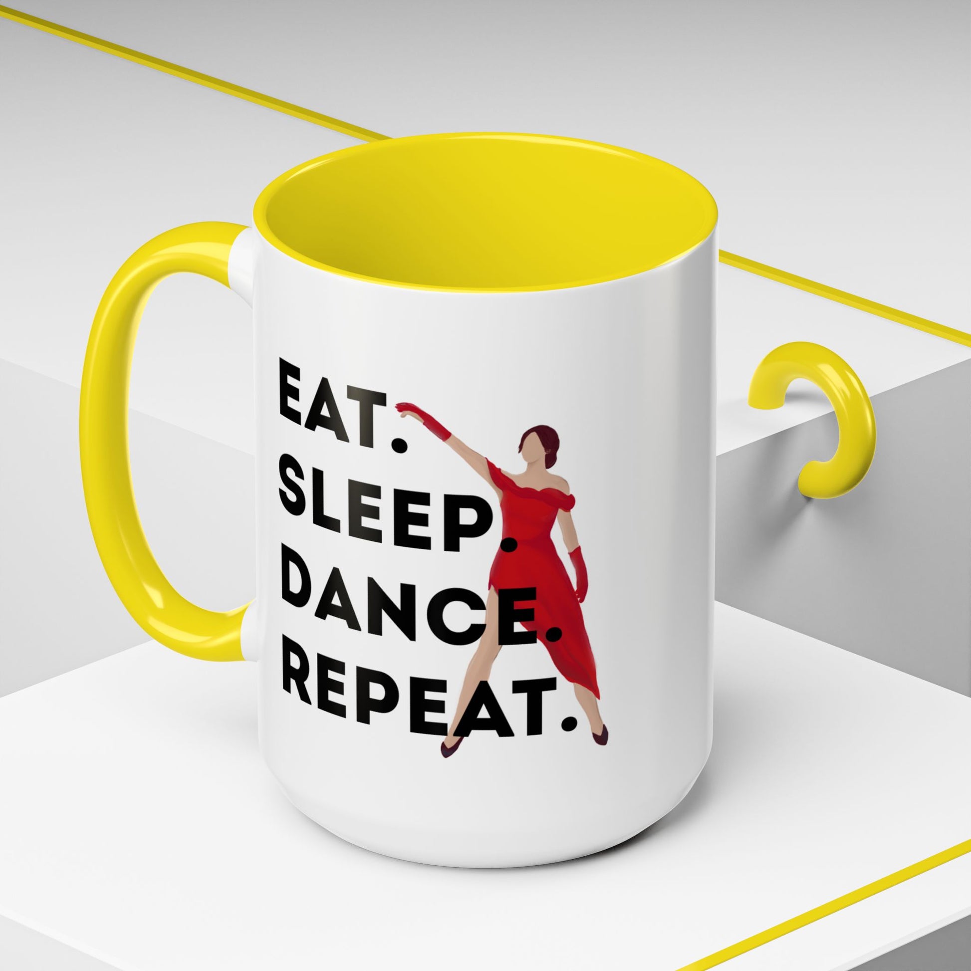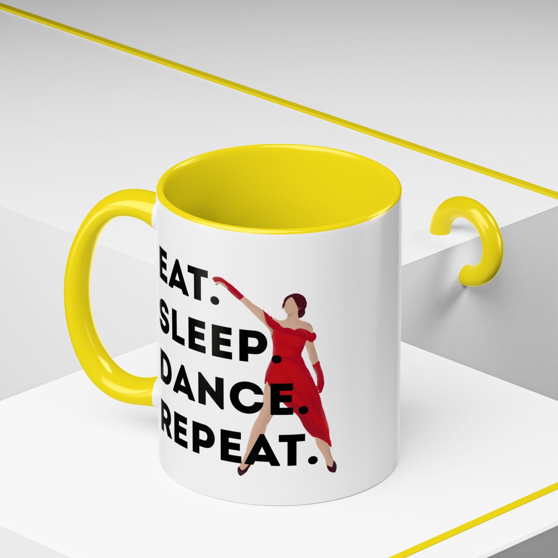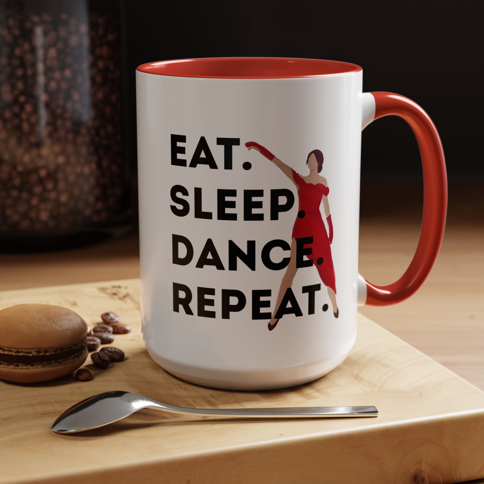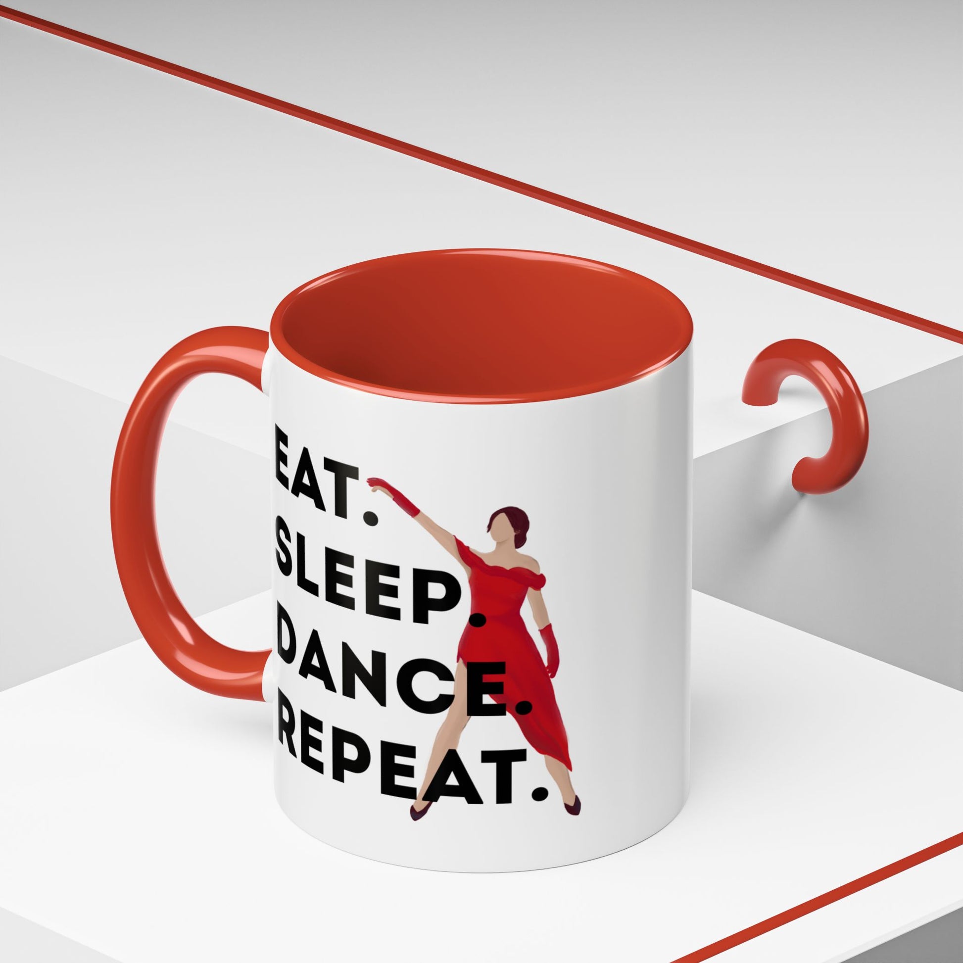 "Eat Sleep Dance Repeat" Accent Coffee Mug – Bold Dancer Graphic Ceramic Mug for Dance Lovers
