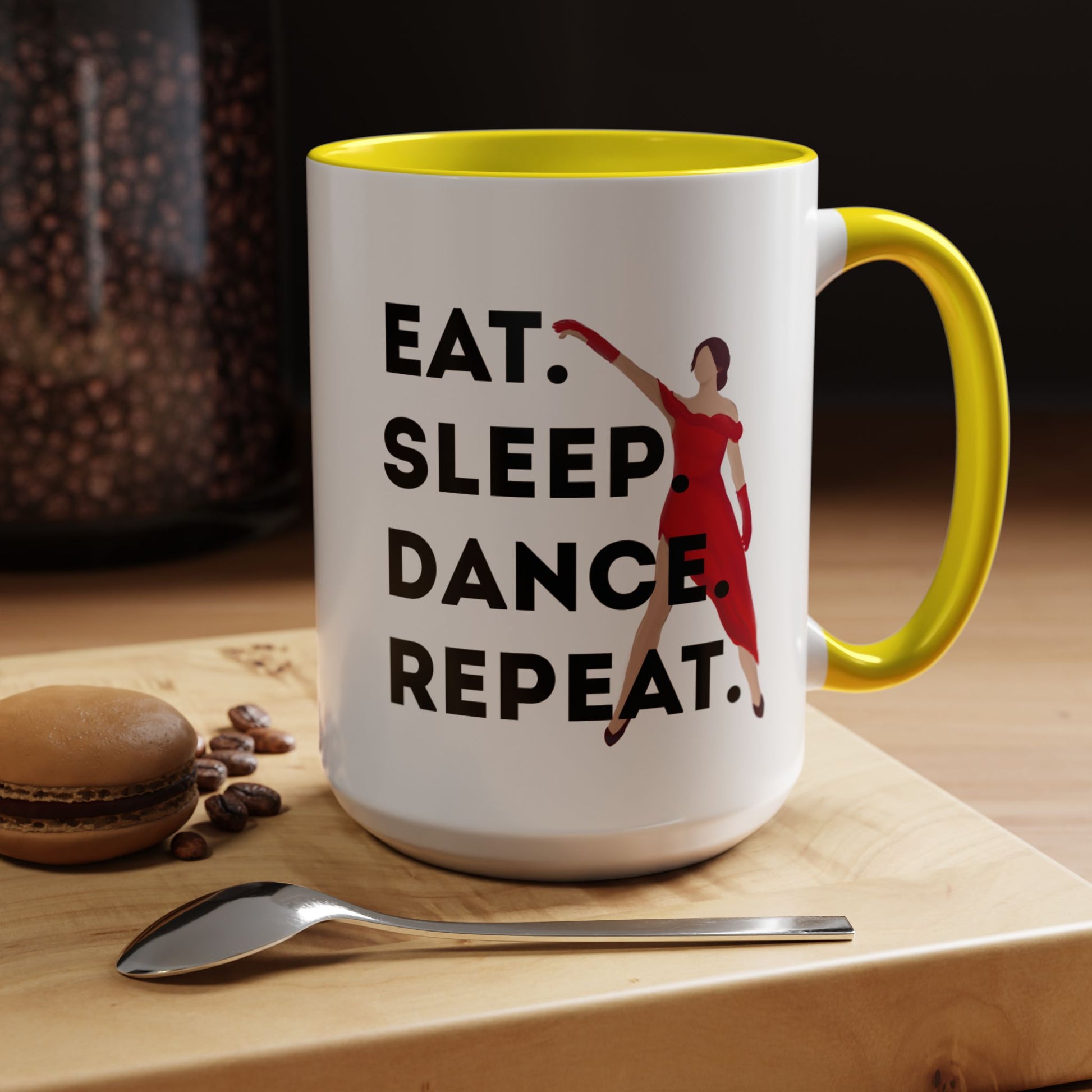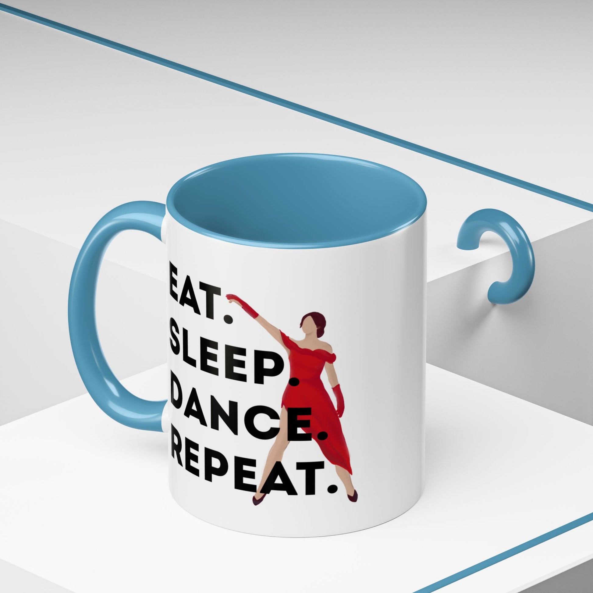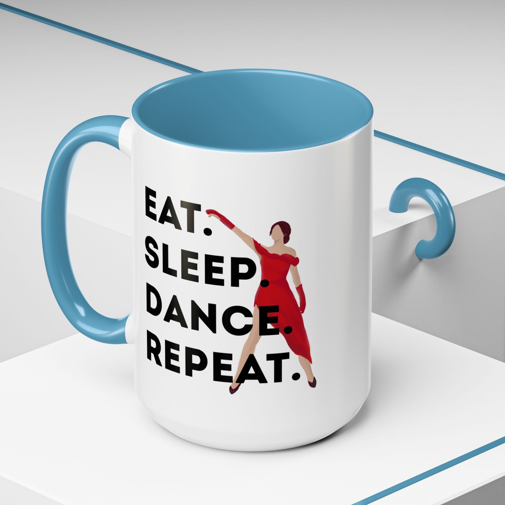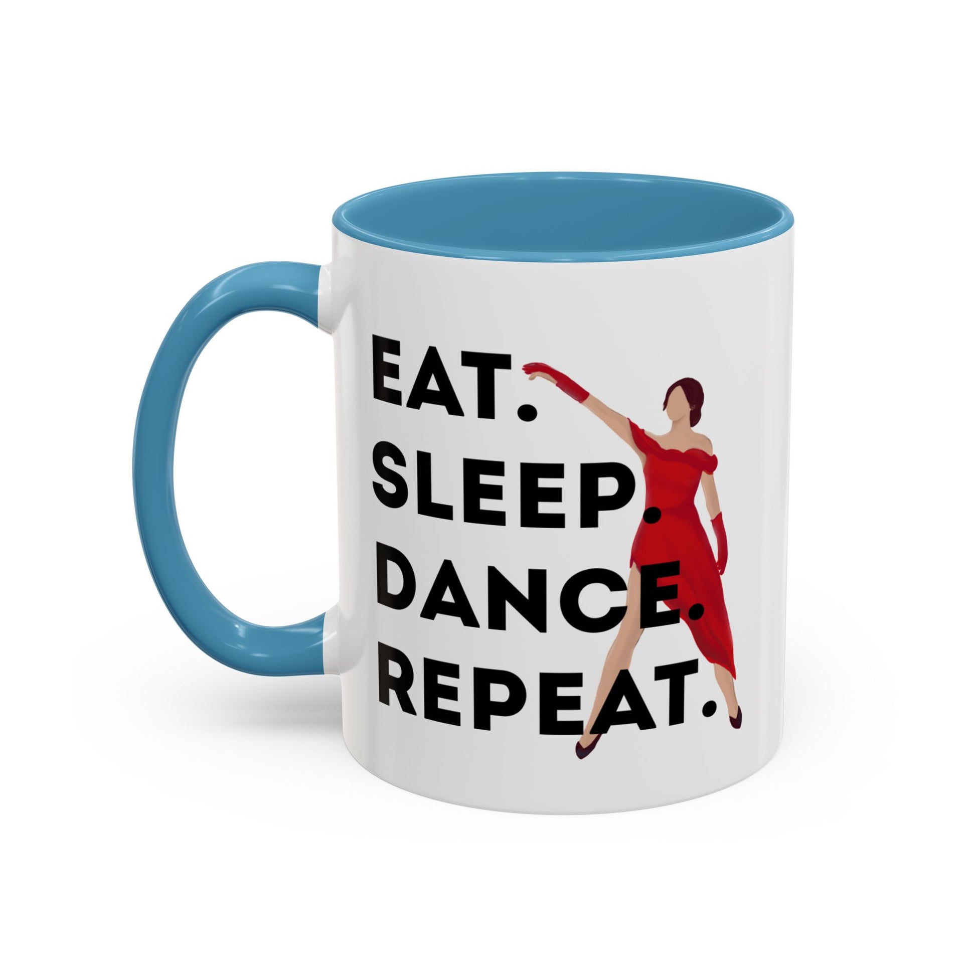 "Eat Sleep Dance Repeat" Accent Coffee Mug – Bold Dancer Graphic Ceramic Mug for Dance Lovers