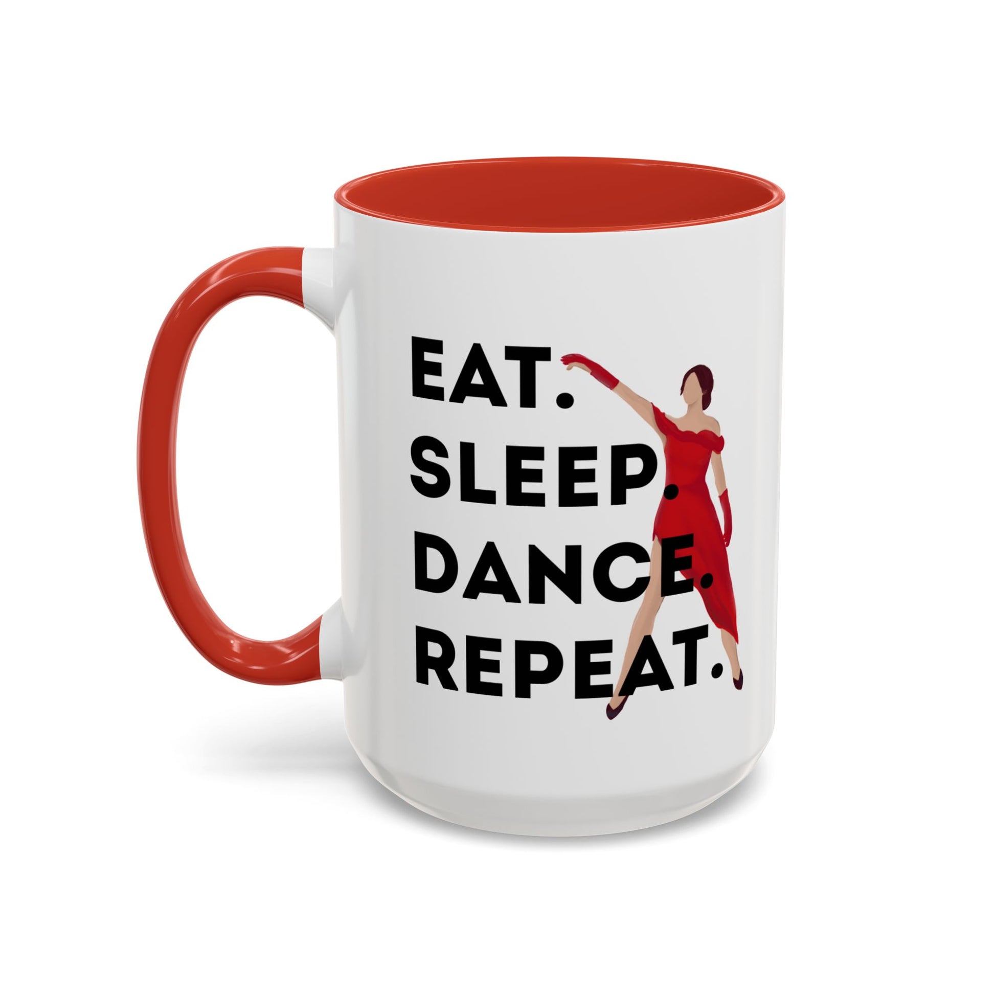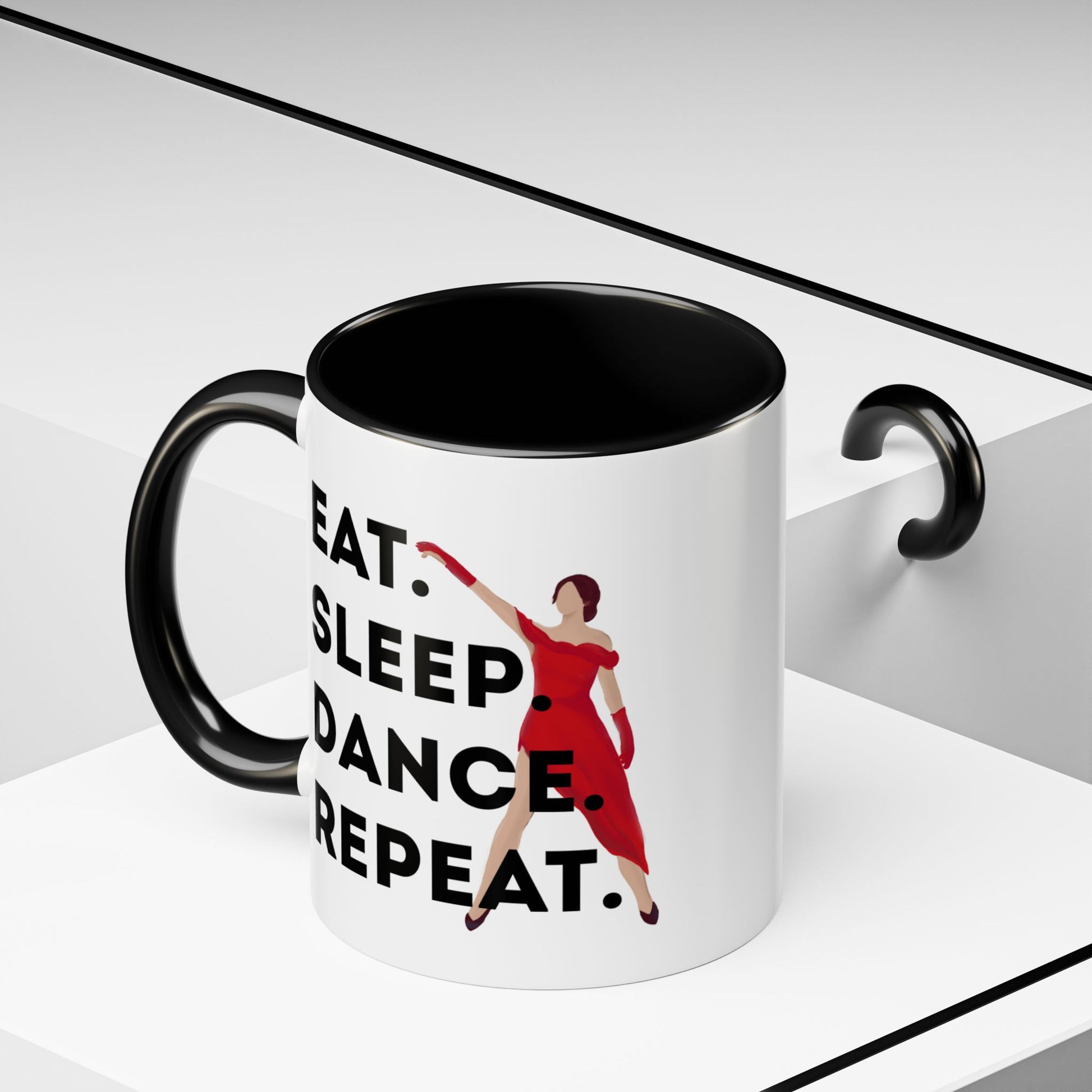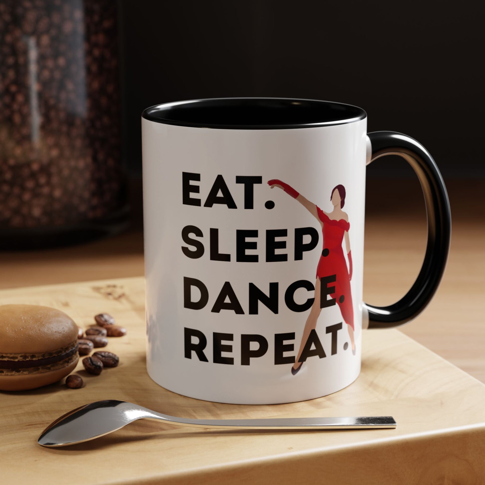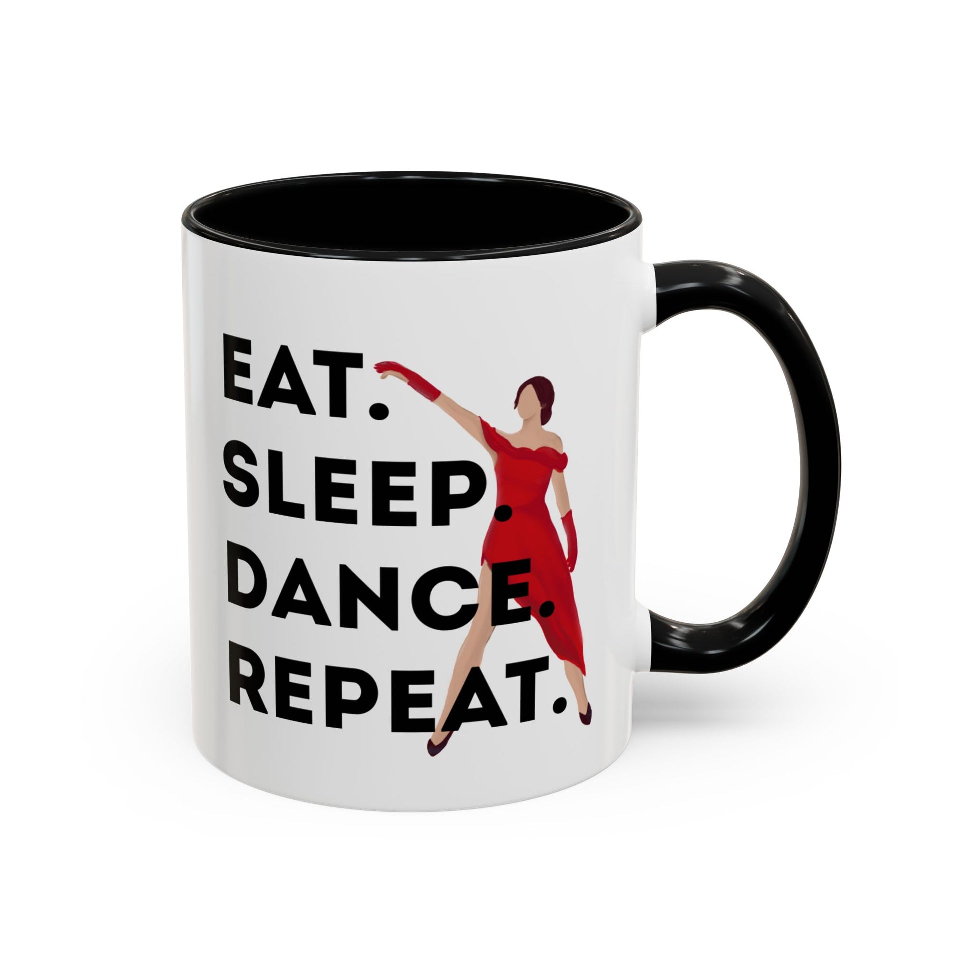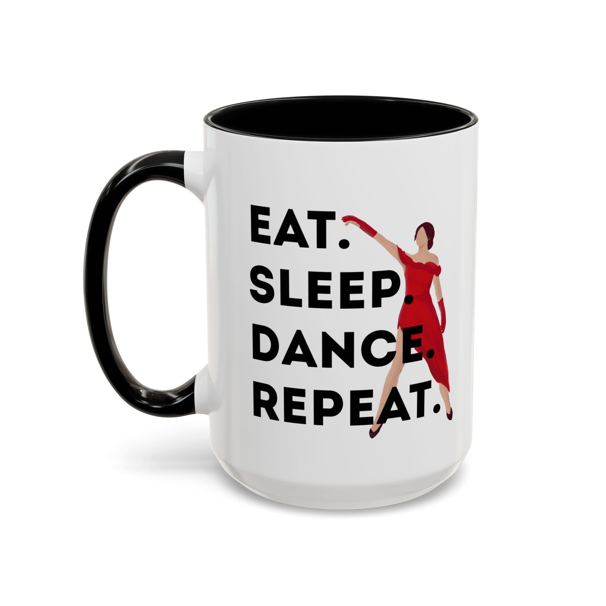 💃 "Eat Sleep Dance Repeat" Accent Coffee Mug – Featuring Bold Female Dancer Graphic ☕✨