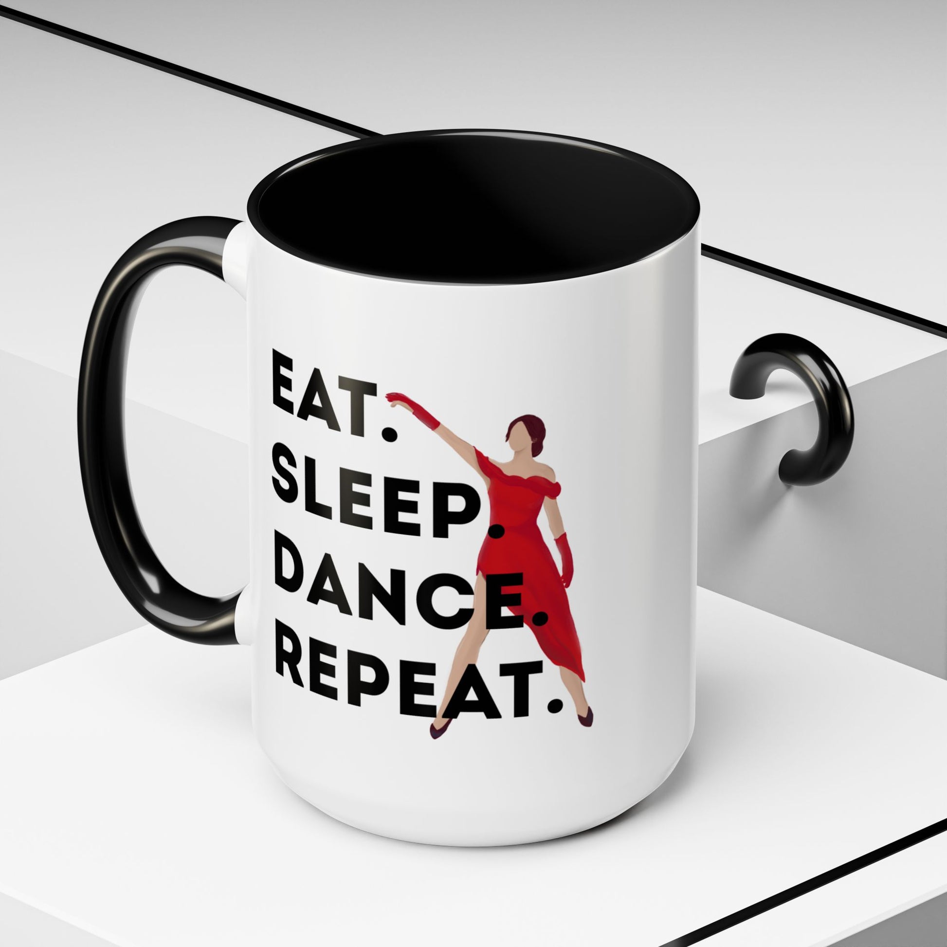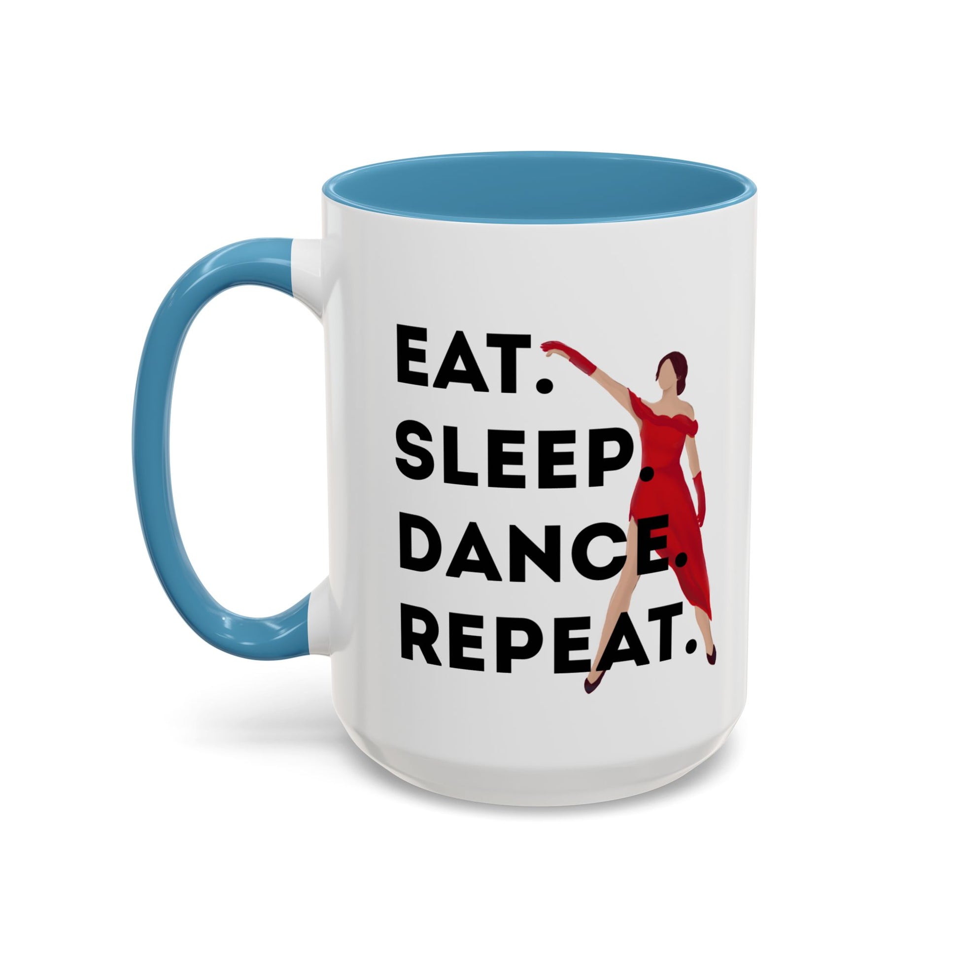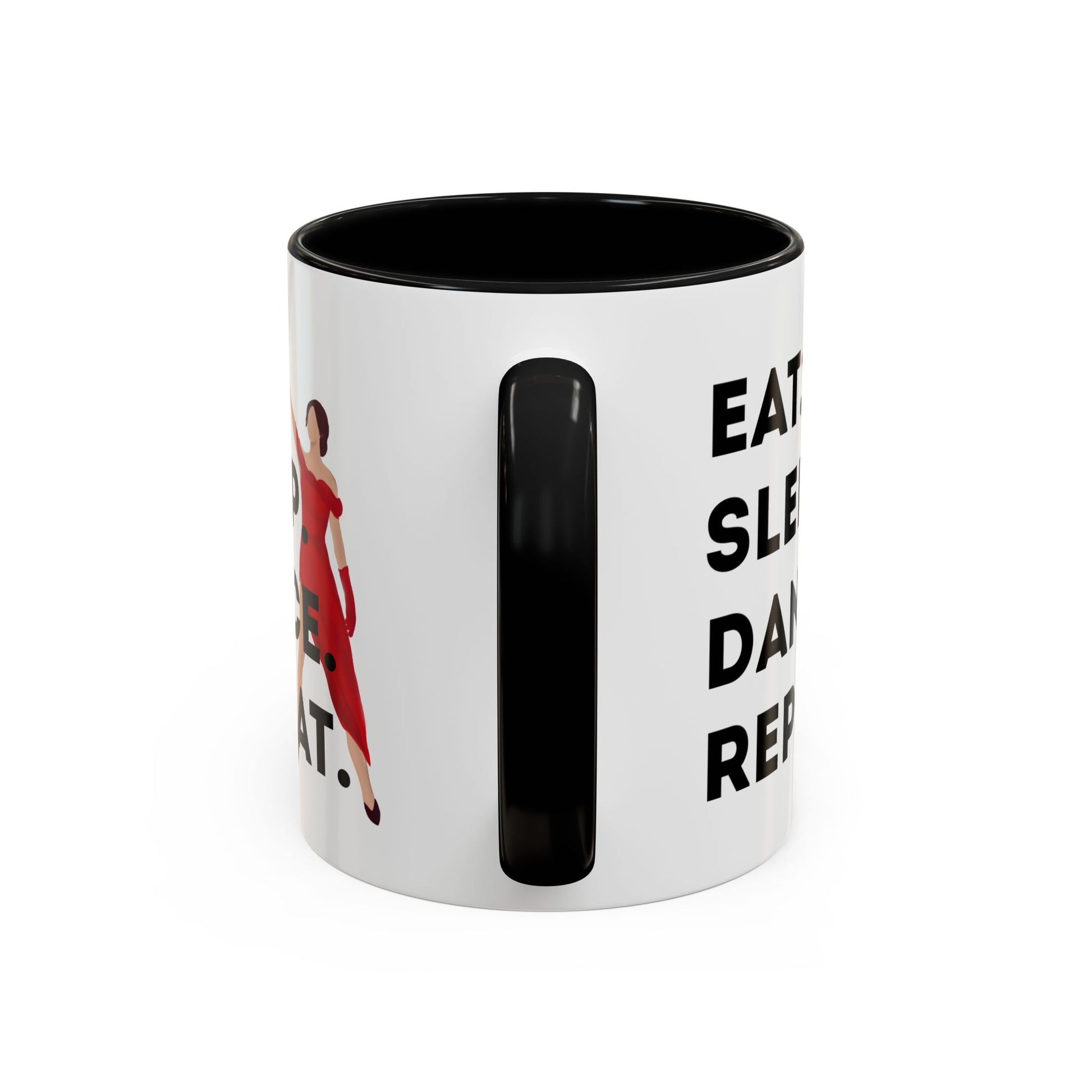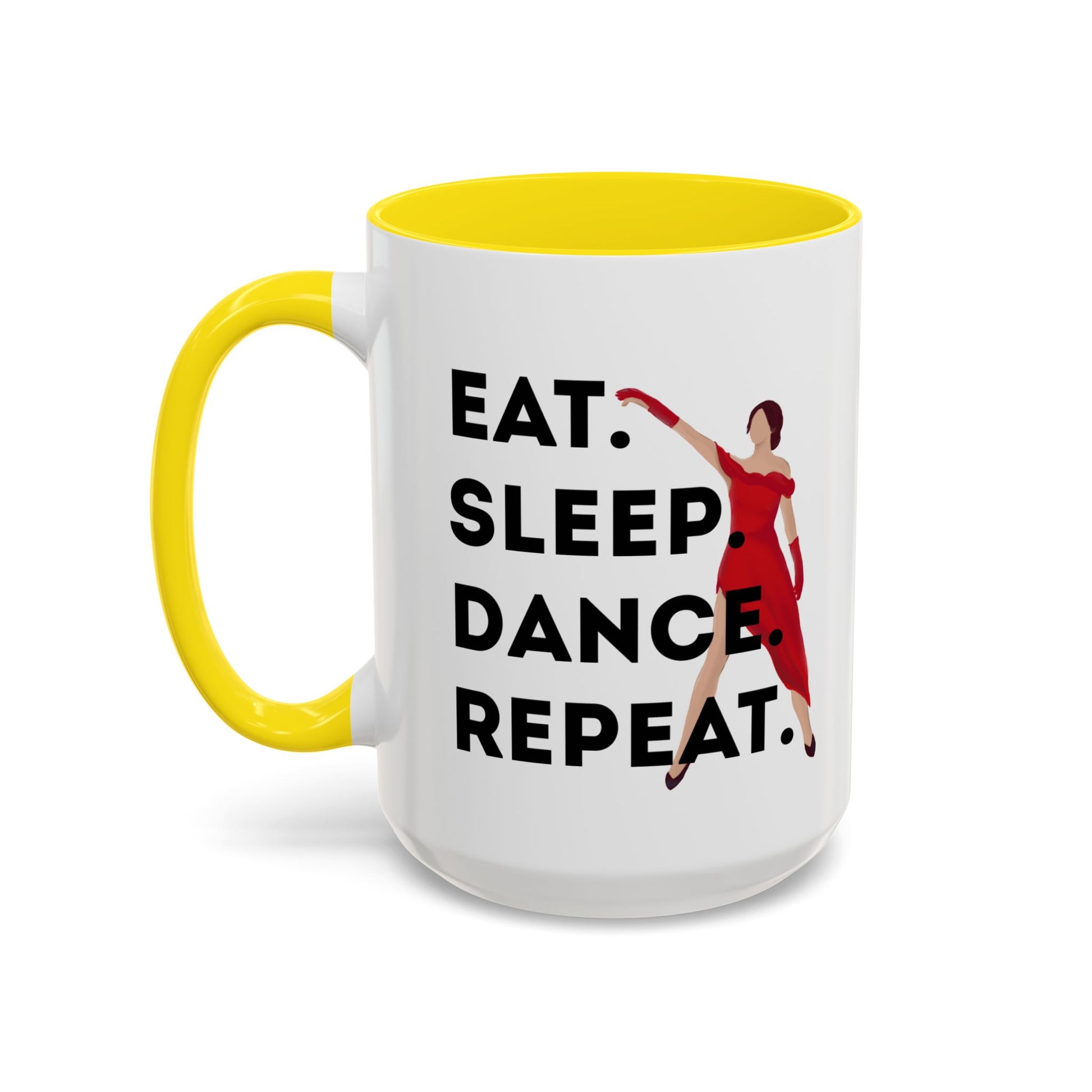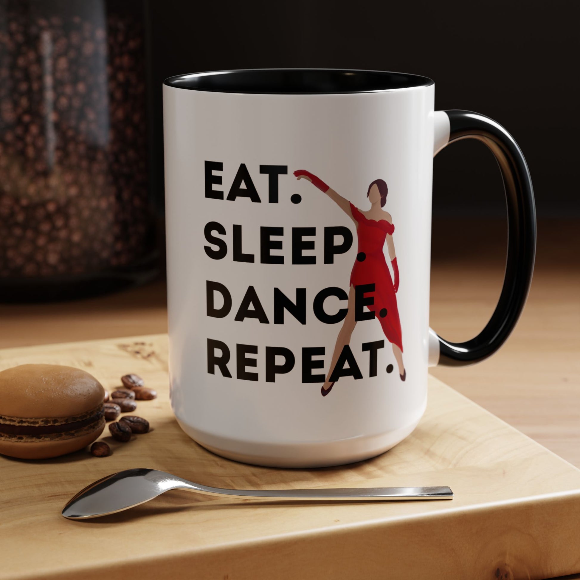 💃 "Eat Sleep Dance Repeat" Accent Coffee Mug – Featuring Bold Female Dancer Graphic ☕✨