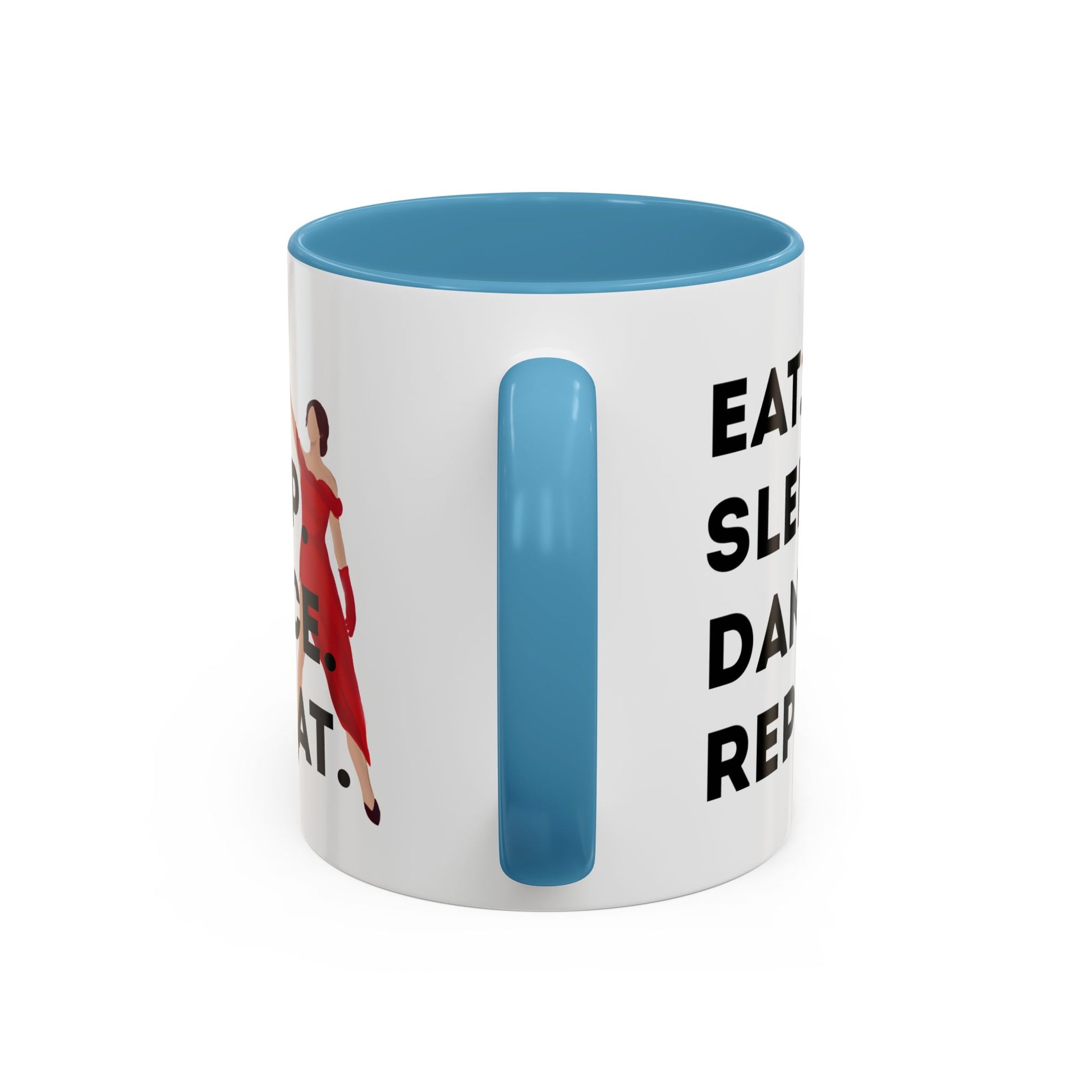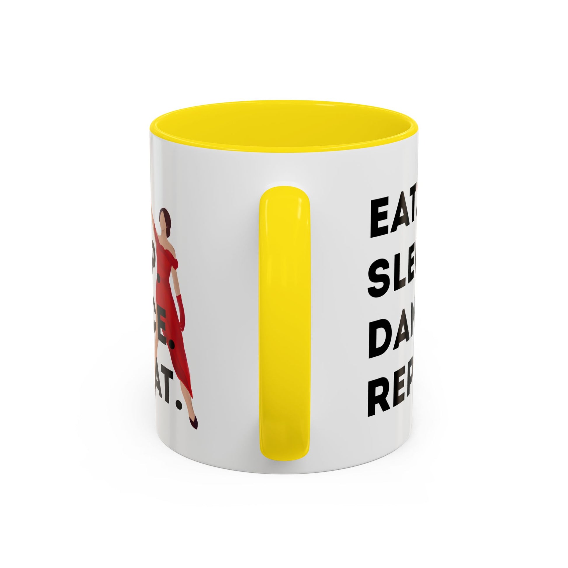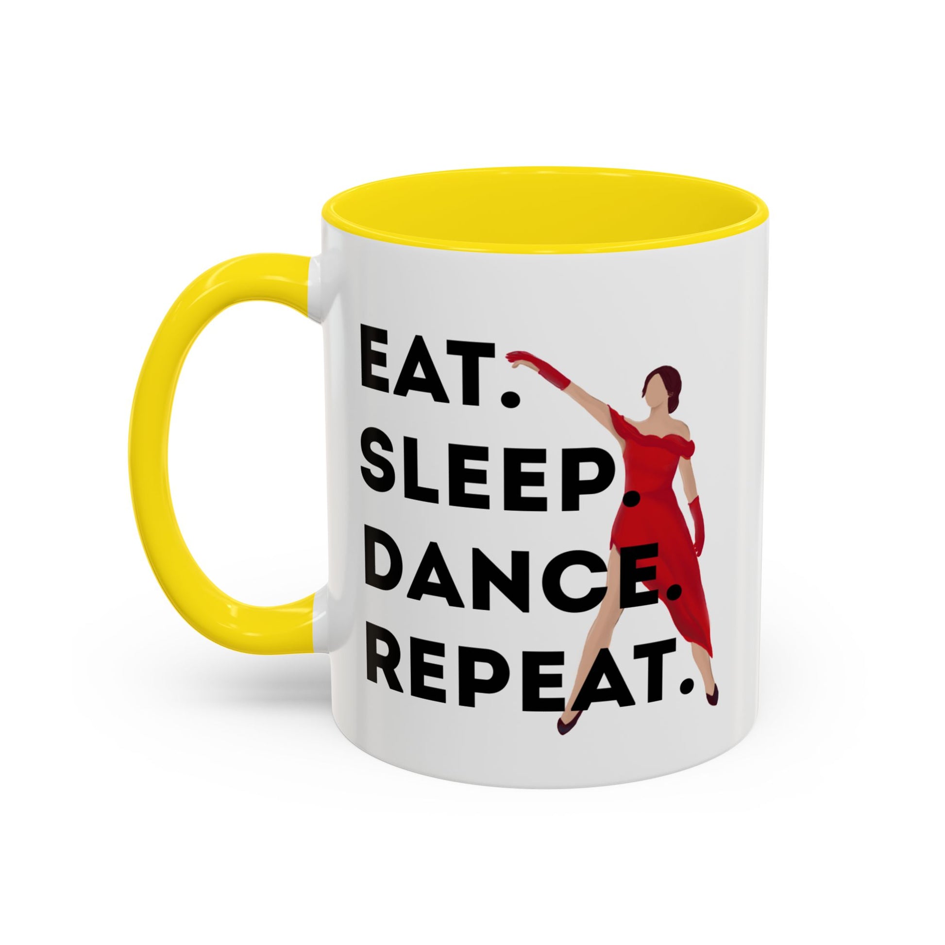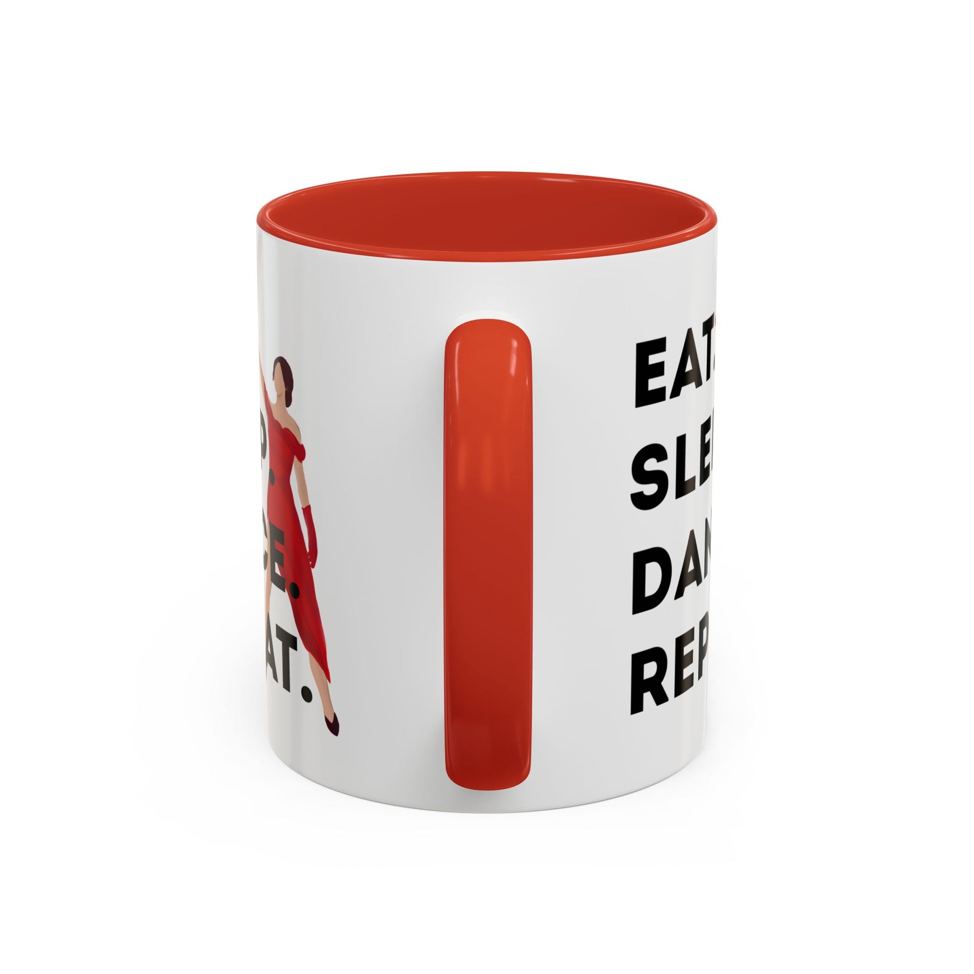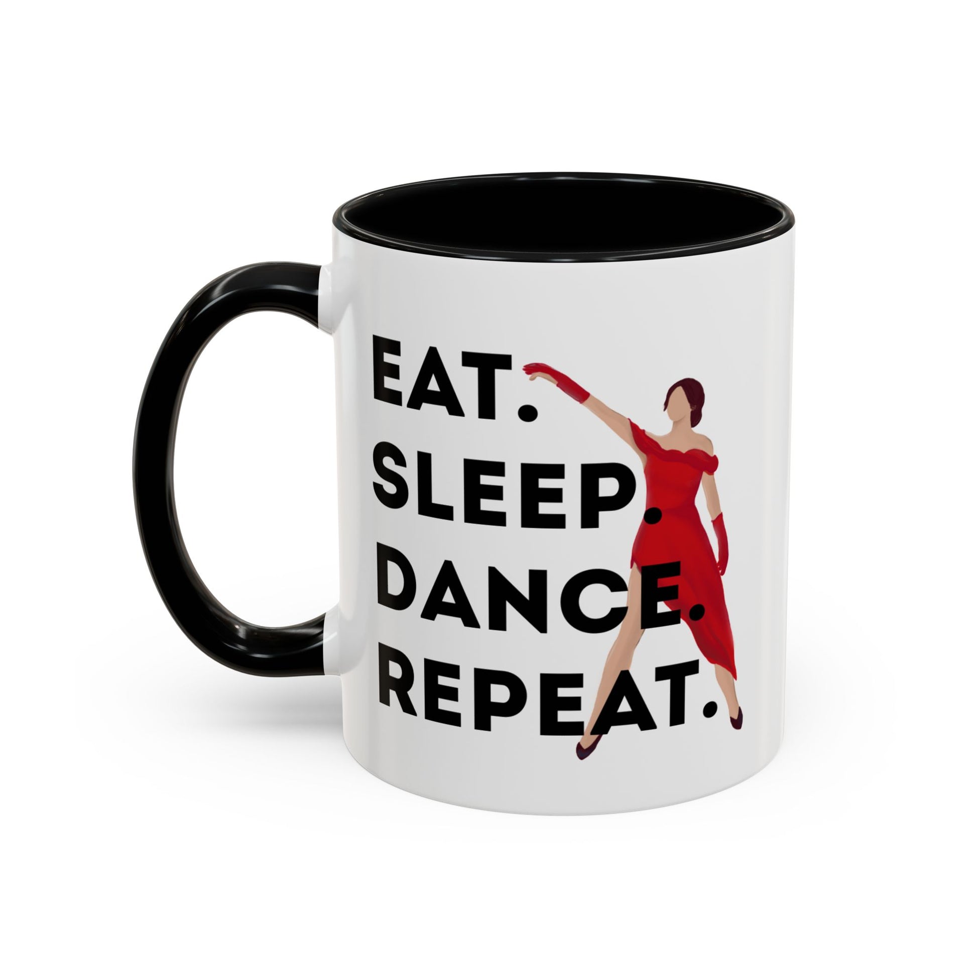 💃 "Eat Sleep Dance Repeat" Accent Coffee Mug – Featuring Bold Female Dancer Graphic ☕✨