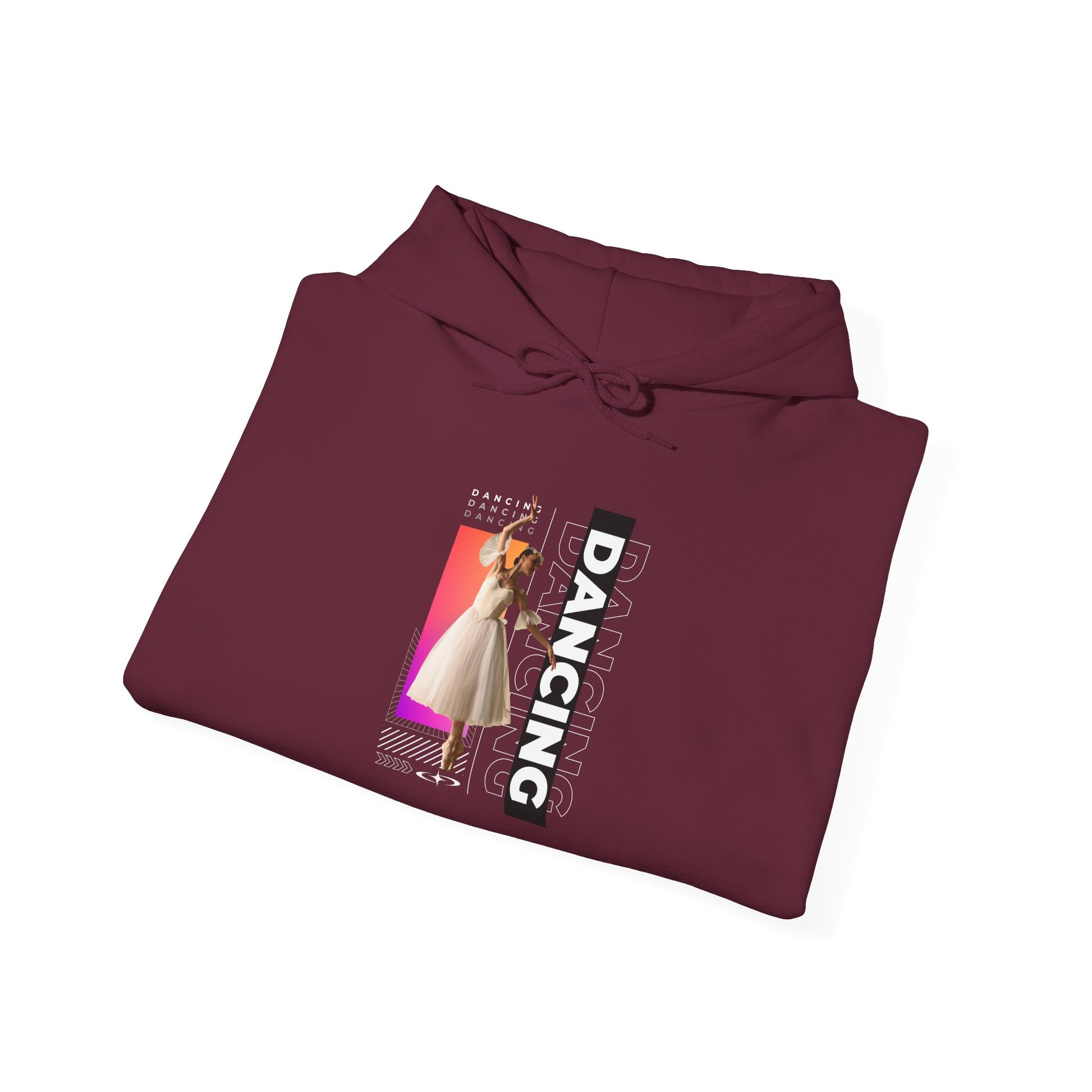 “Dancing” Text with Streetwear-Style Female Dancer Graphic - Unisex Heavy Blend™ Hooded Sweatshirt – Cozy Dance Hoodie for Ballet & Hip-Hop Enthusiasts