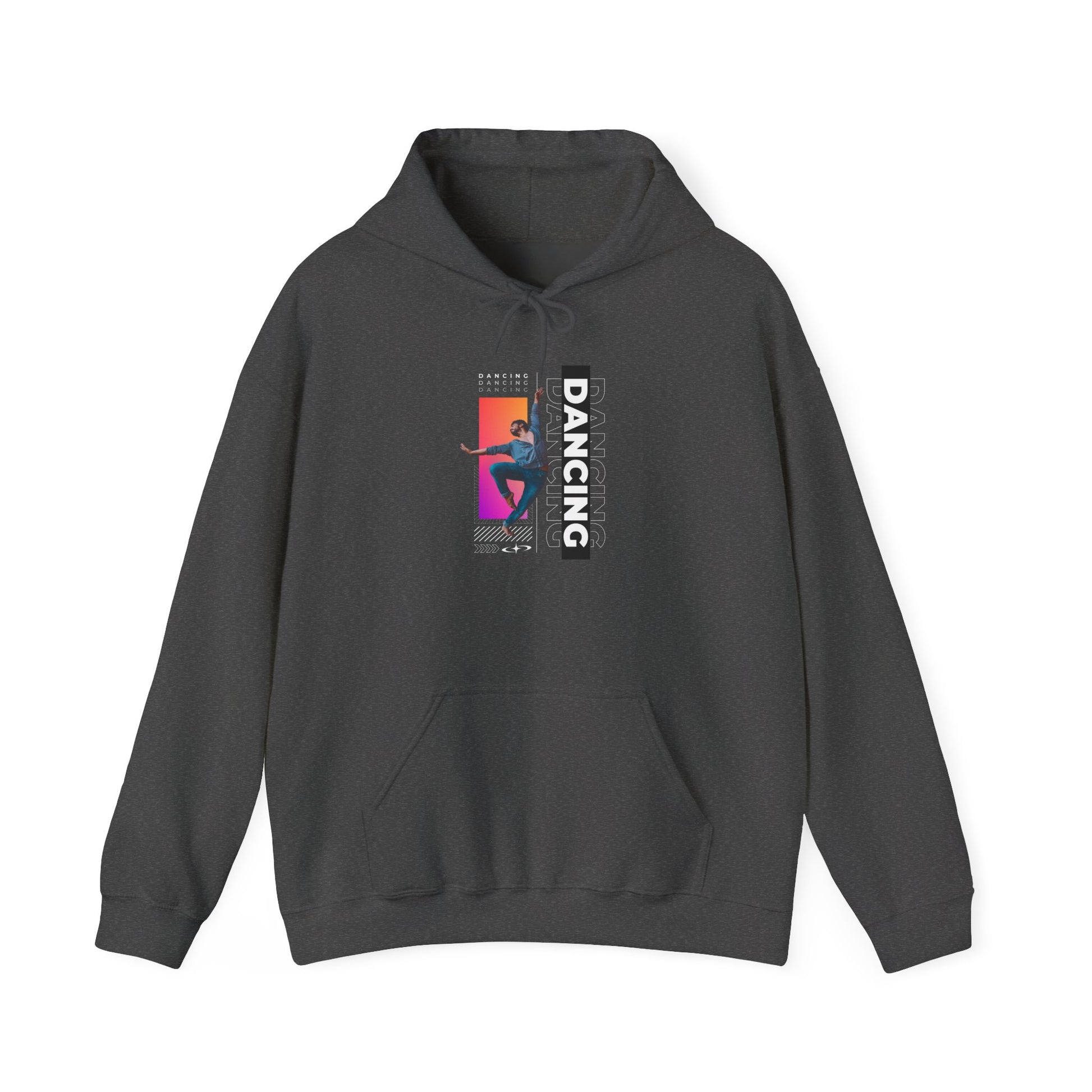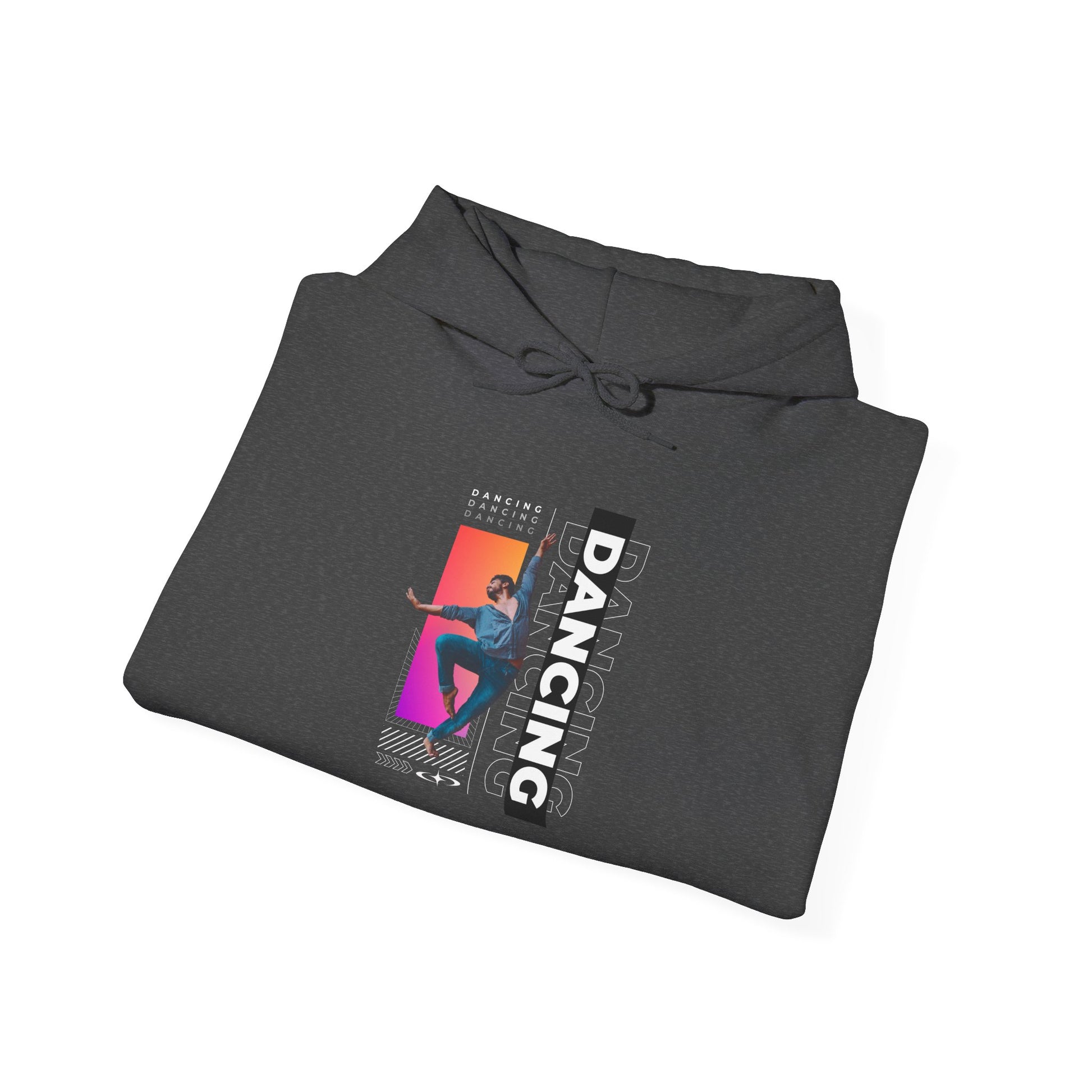 “Dancing” Text with Streetwear-Style Male Dancer Graphic – Unisex Heavy Blend™ Hooded Sweatshirt – Cozy Dance Hoodie for Performers & Dance Enthusiasts