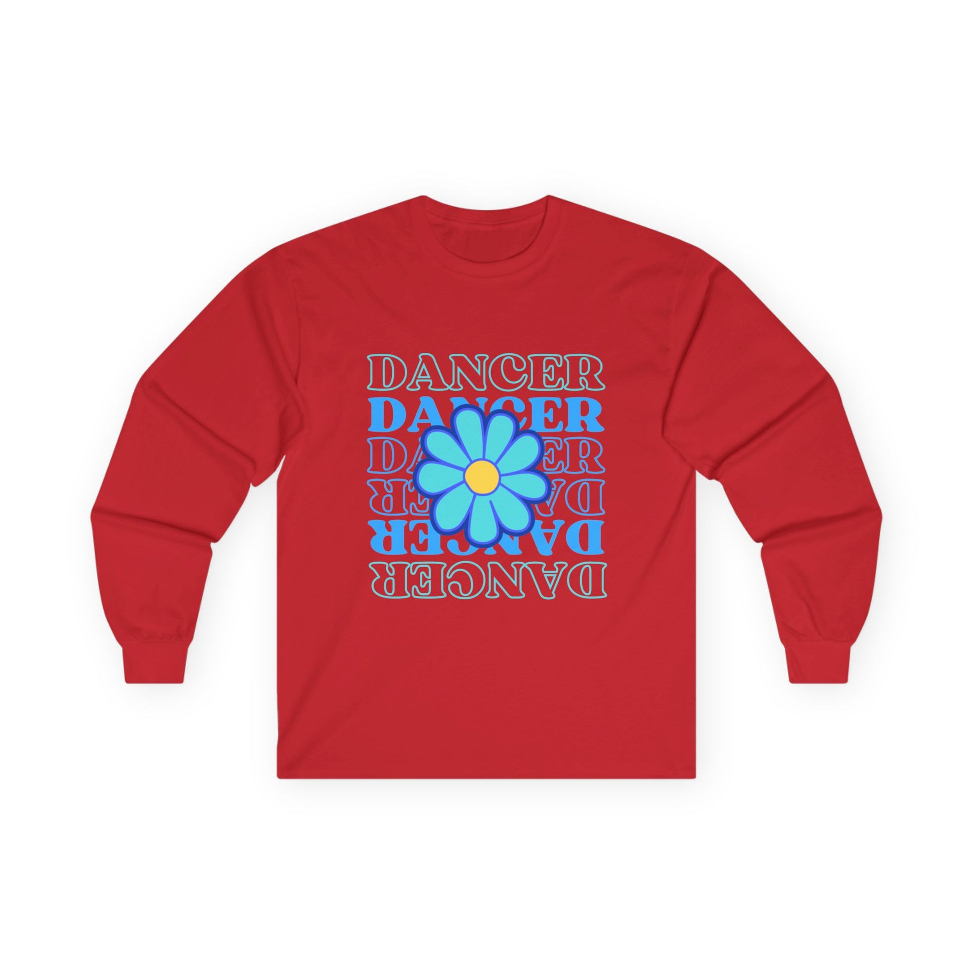 "Dancer" Unisex Long Sleeve Tee – Elegant Floral Text Graphic Dance Shirt for Performers, Instructors & Studio Style