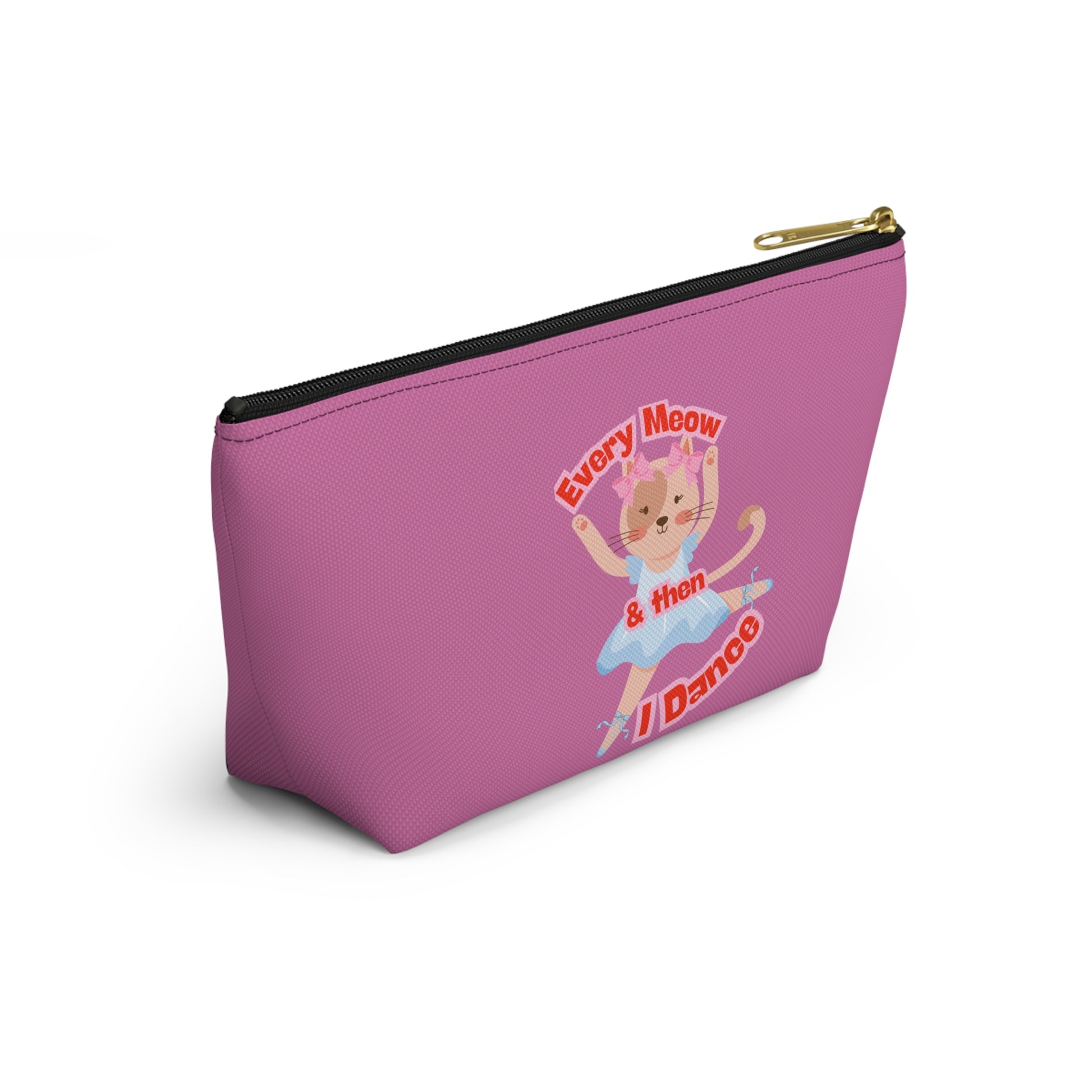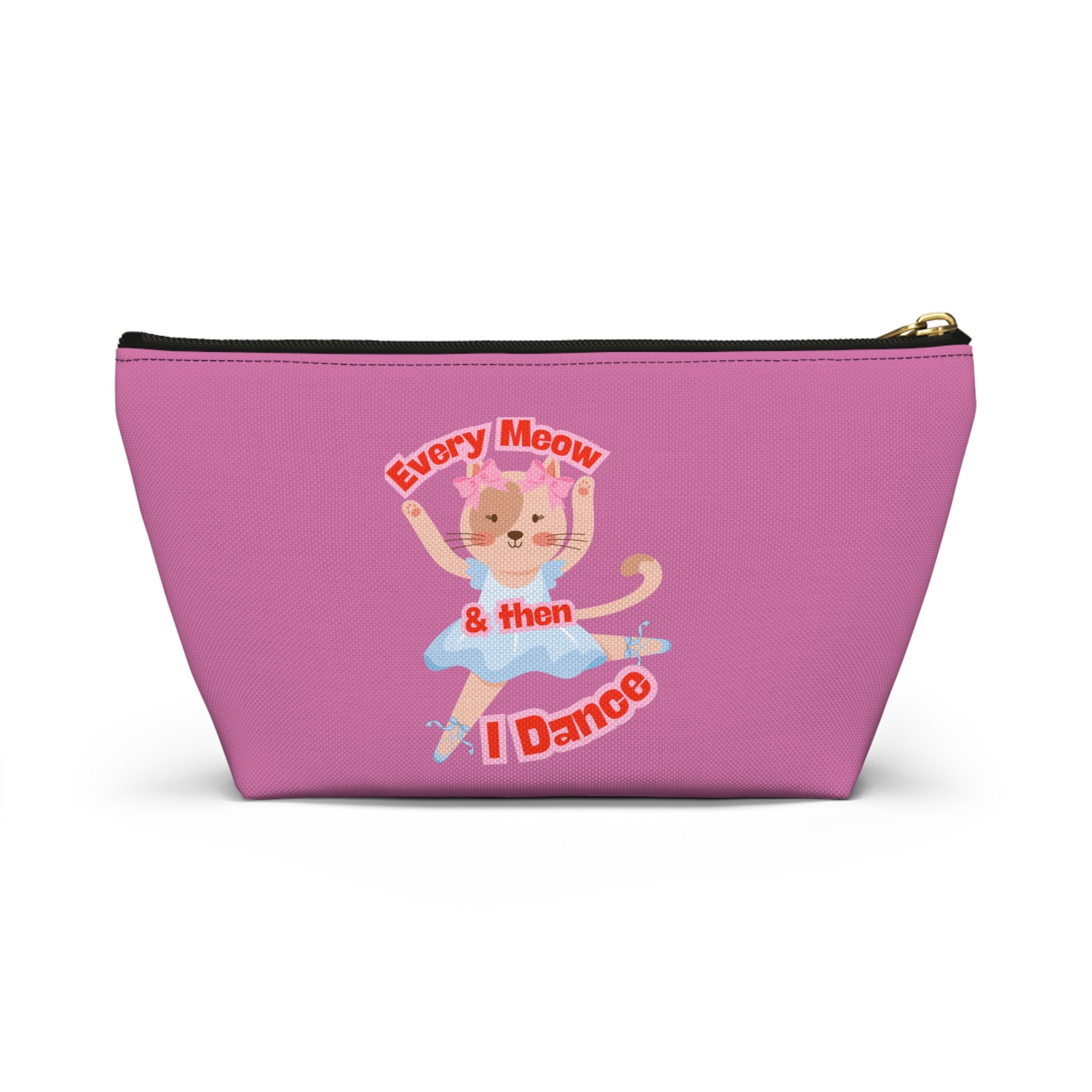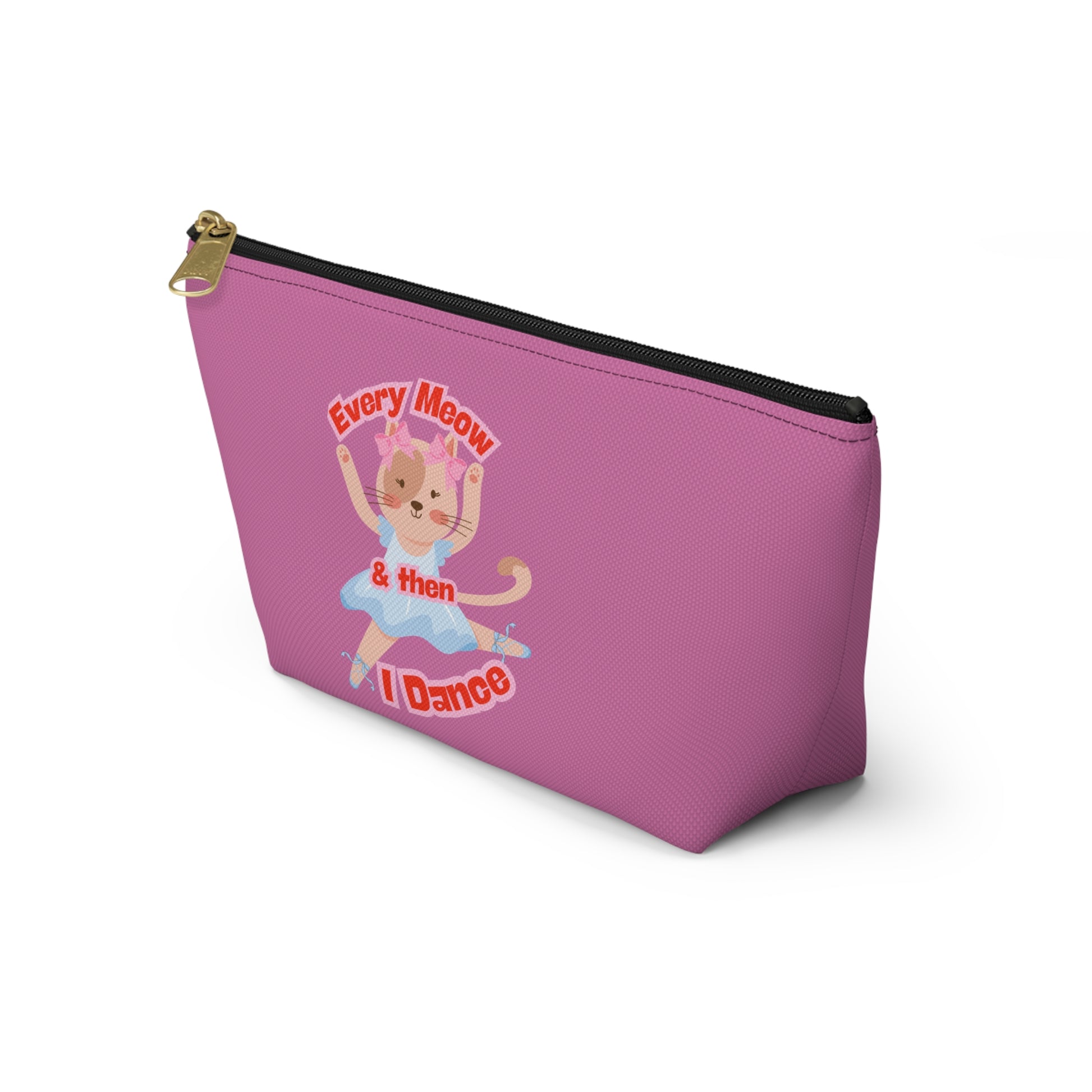 “Every Meow & Then I Dance” Adorable Dancing Cat Graphic | Cute Cat Dance Cosmetic Bag for Ballet Lovers & Travel Essentials - Makeup Bag