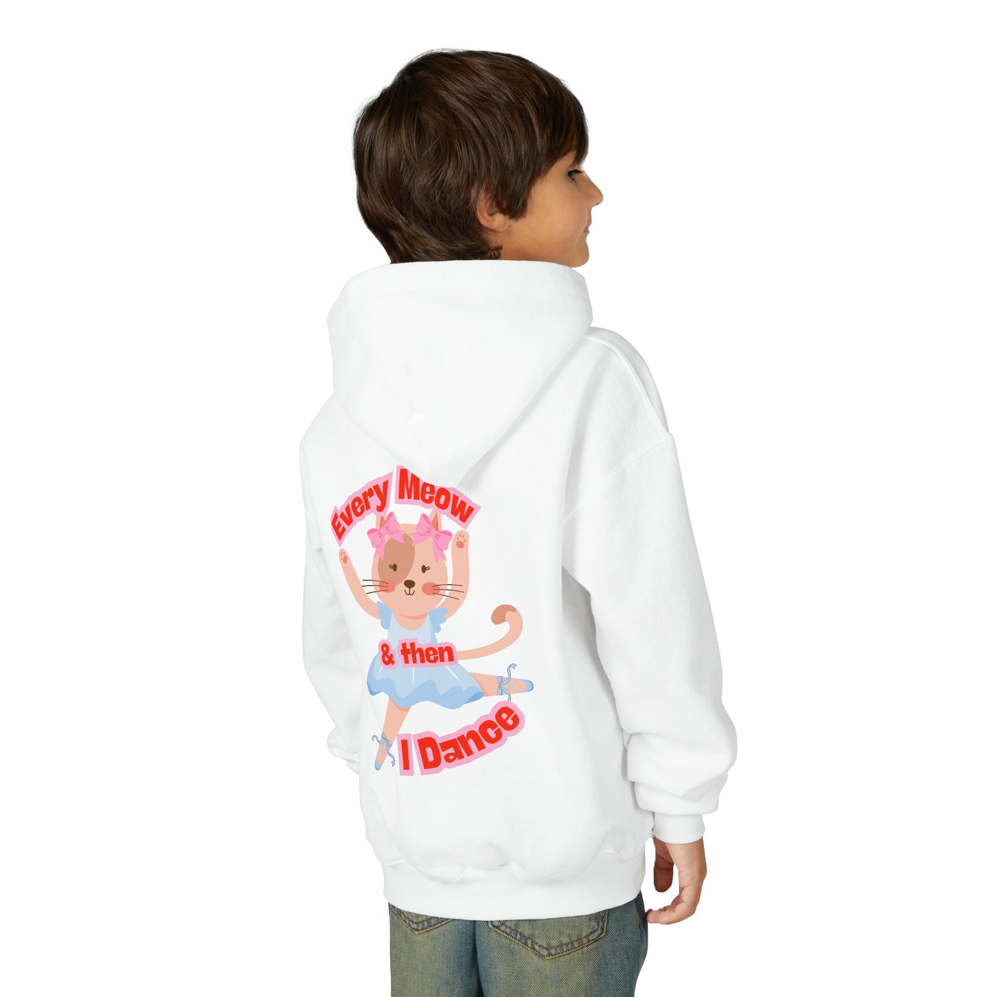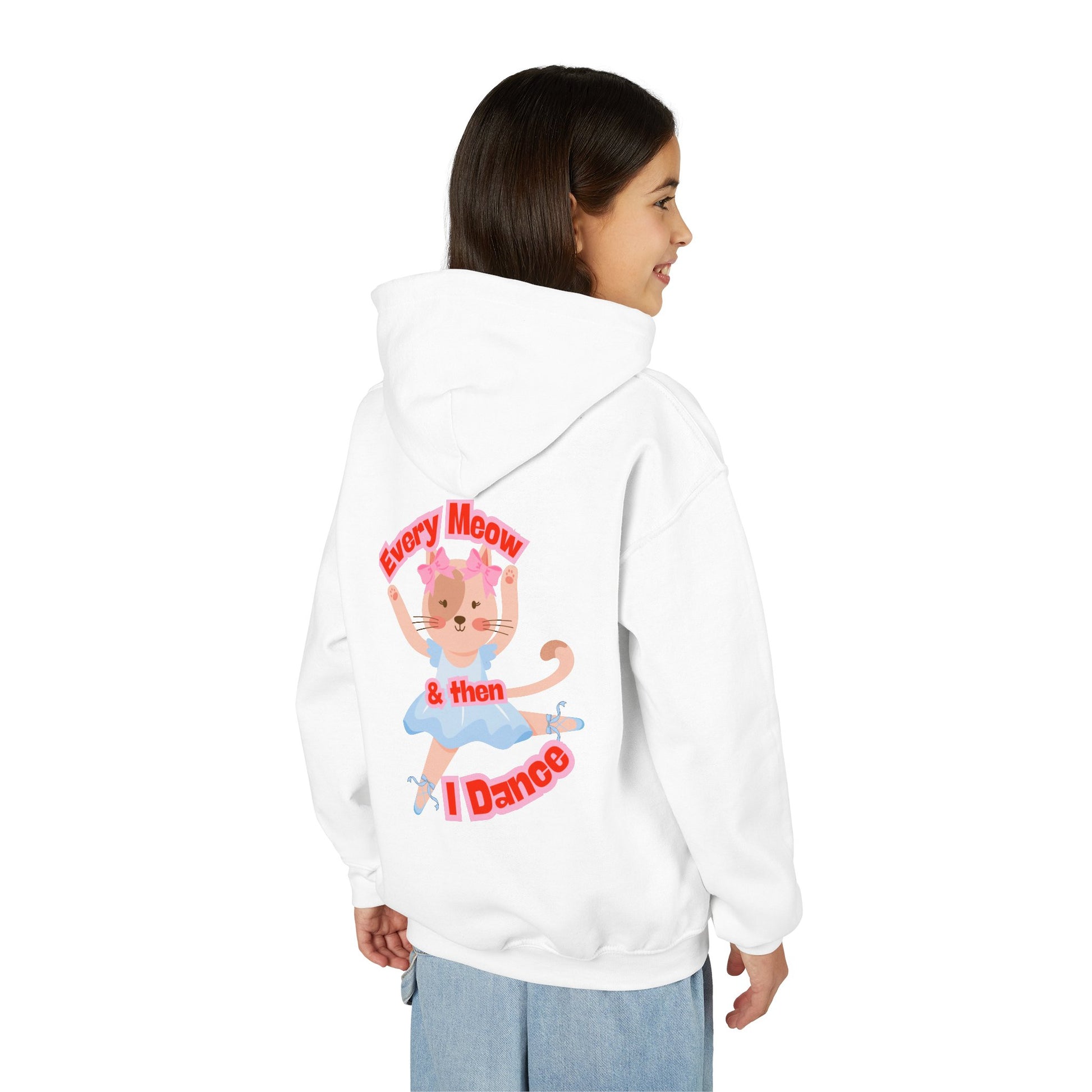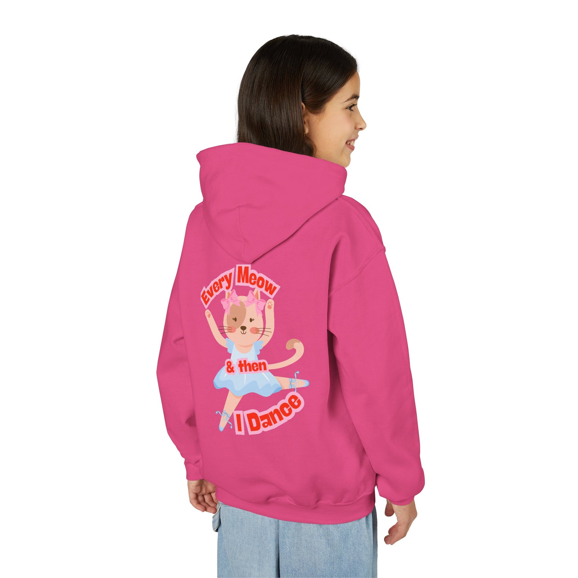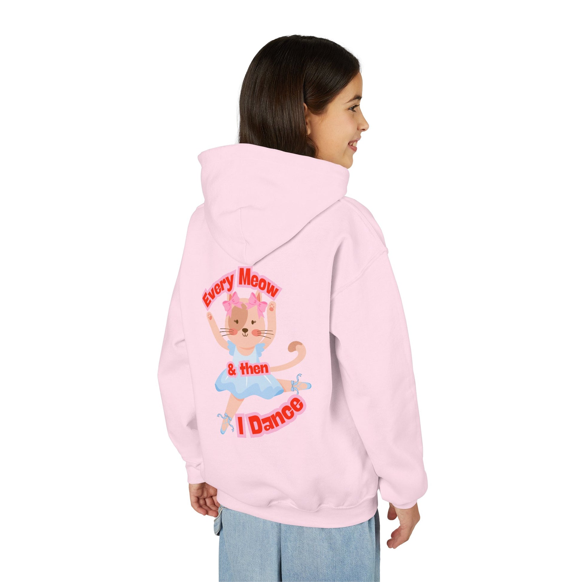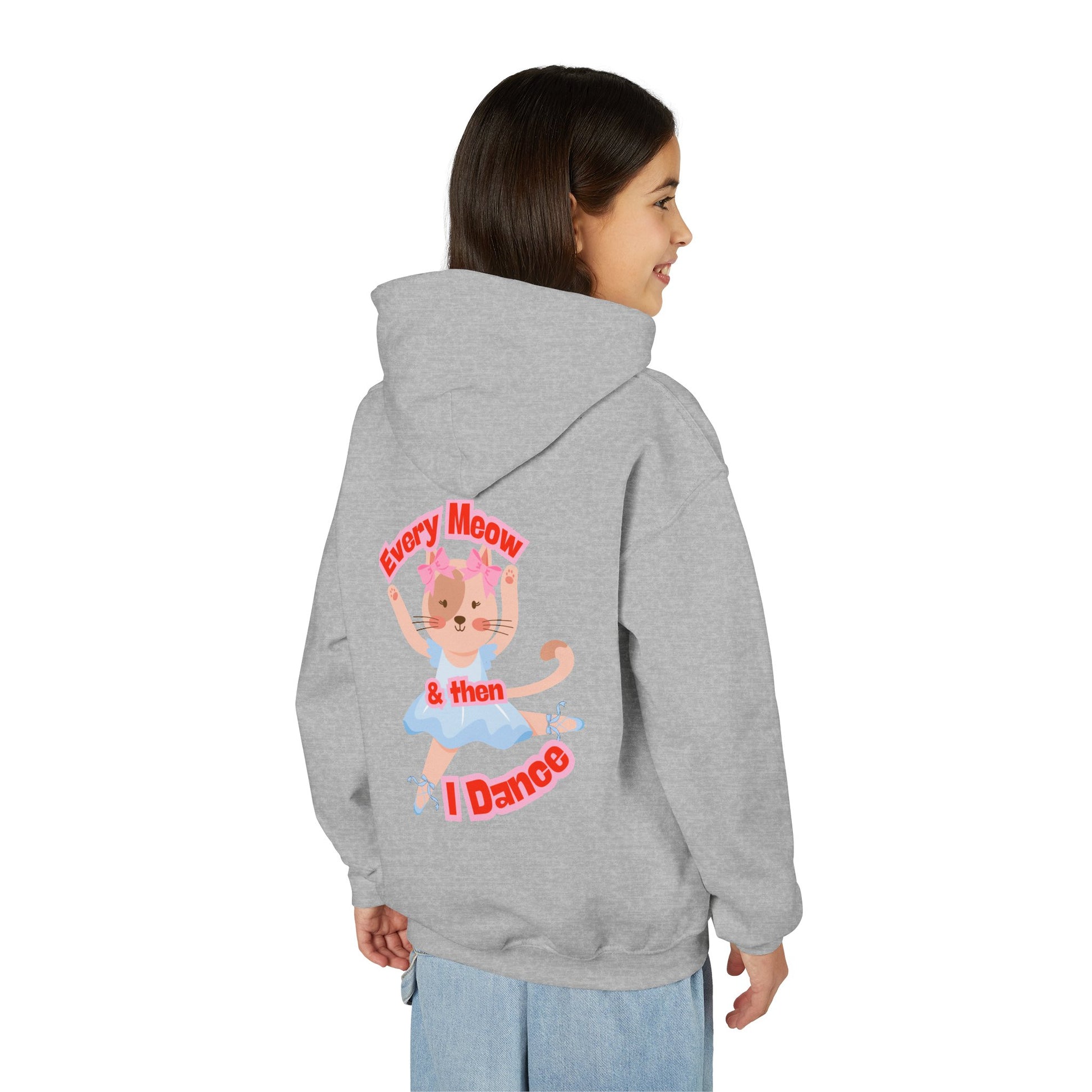 “Every Meow & Then I Dance” Adorable Dancing Cat Graphic | Cute Cat Dance Hoodie for Kids & Young Ballet Enthusiasts - Unisex Youth Hoodie