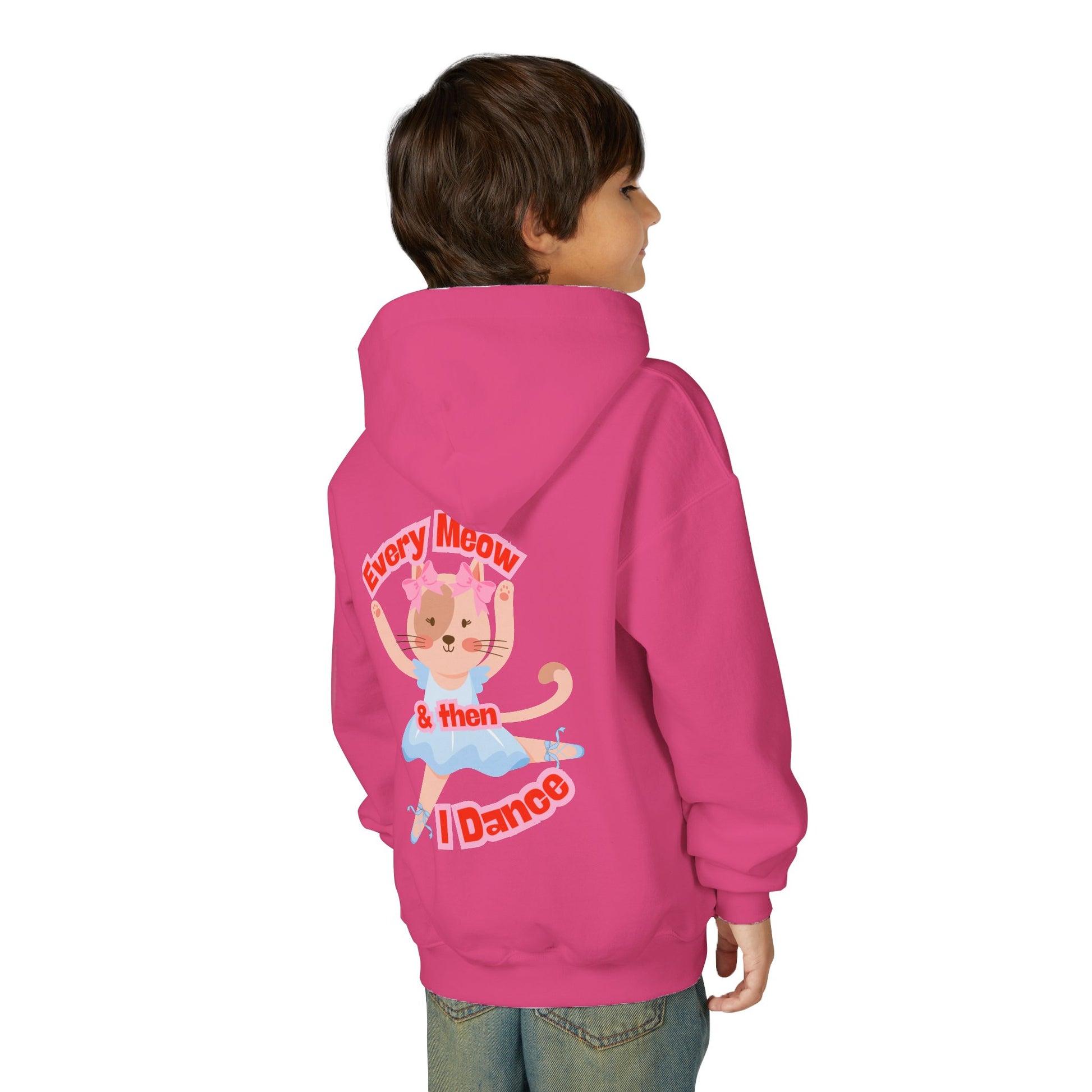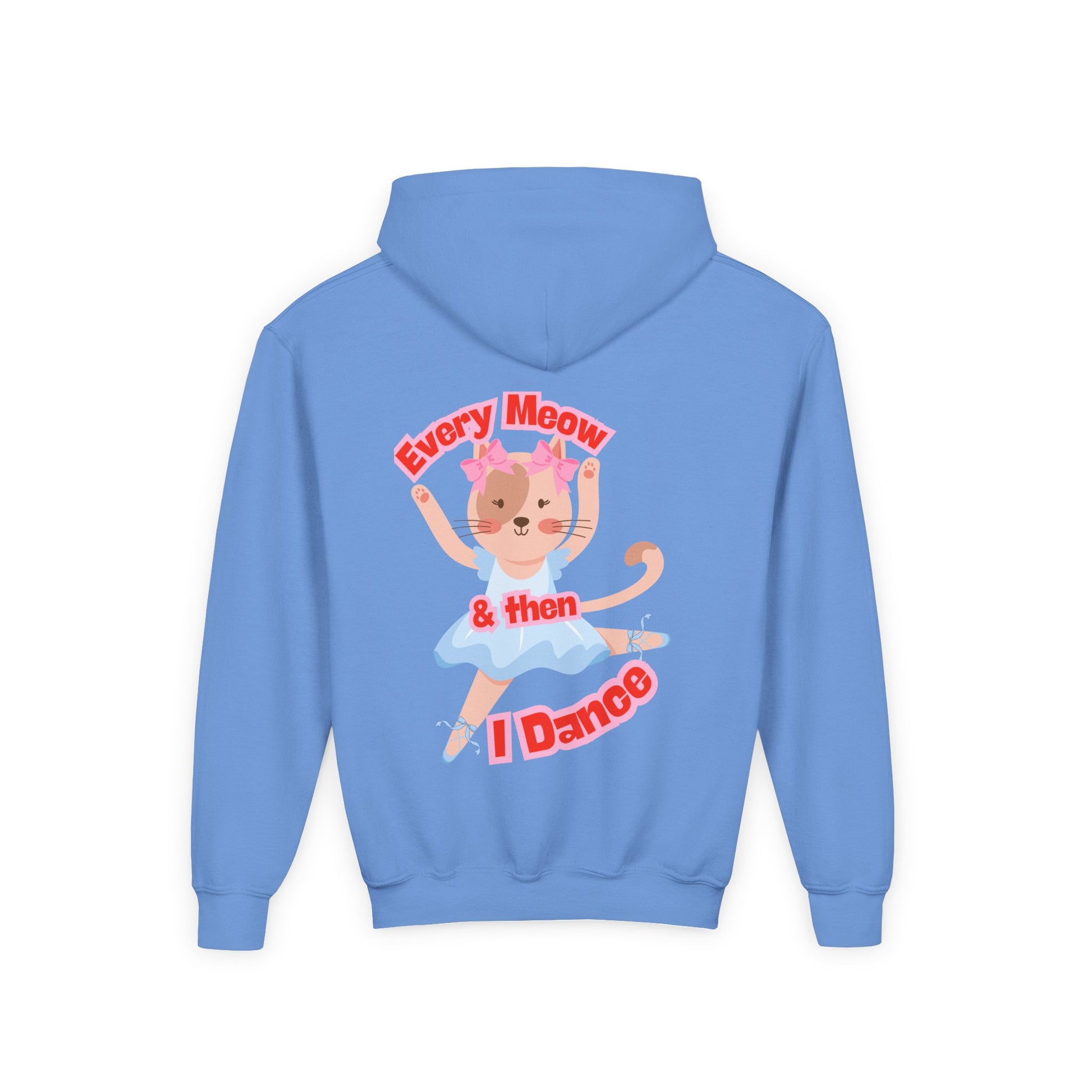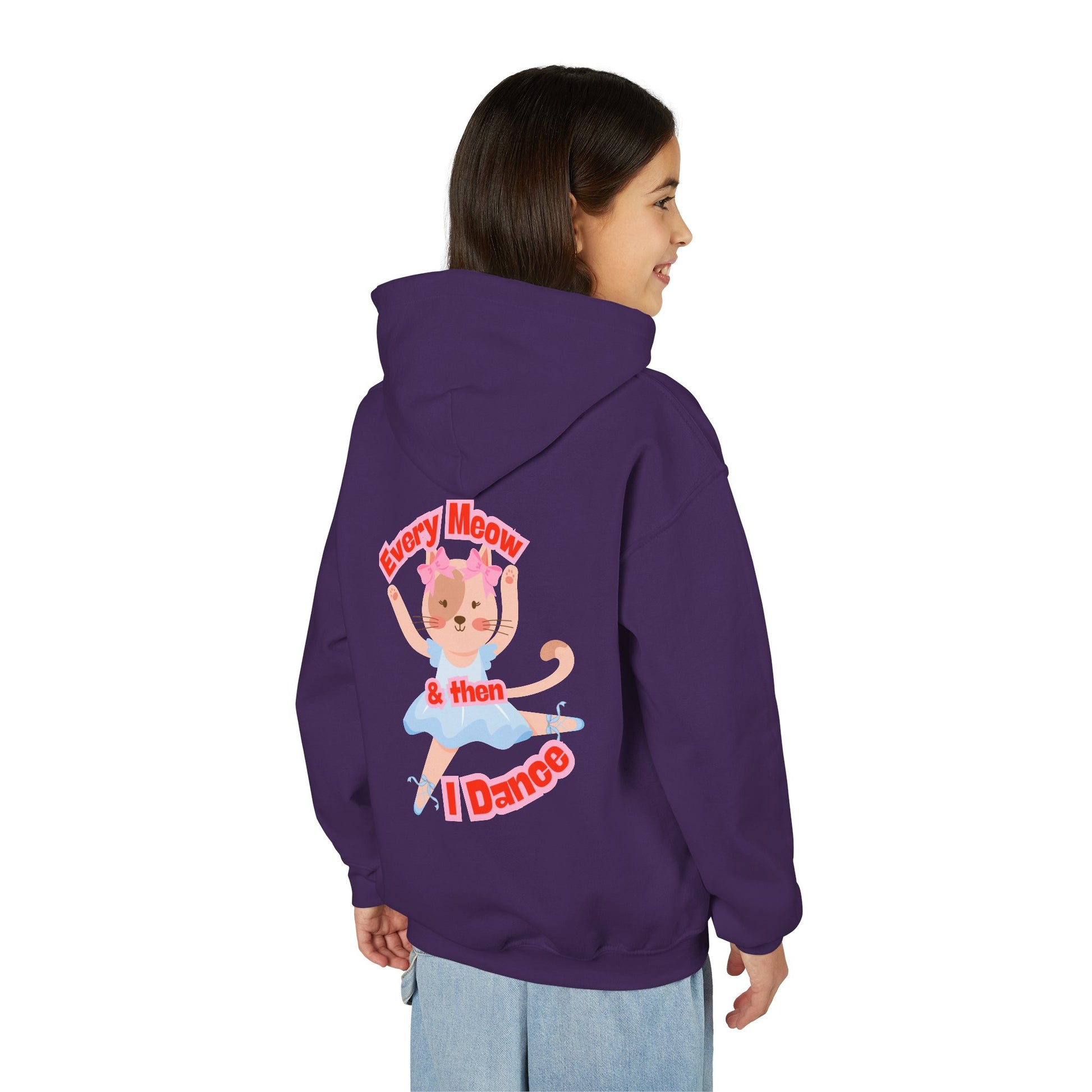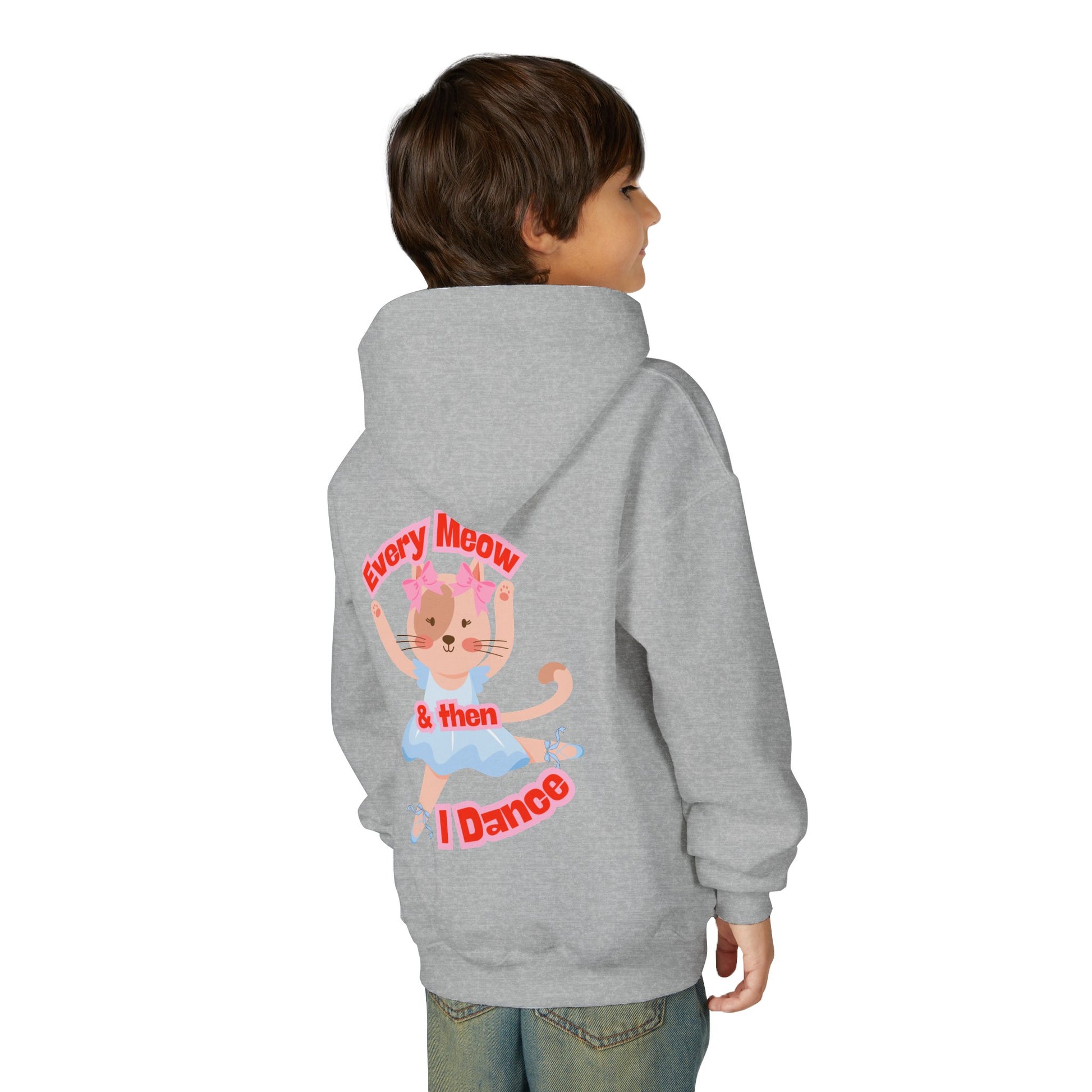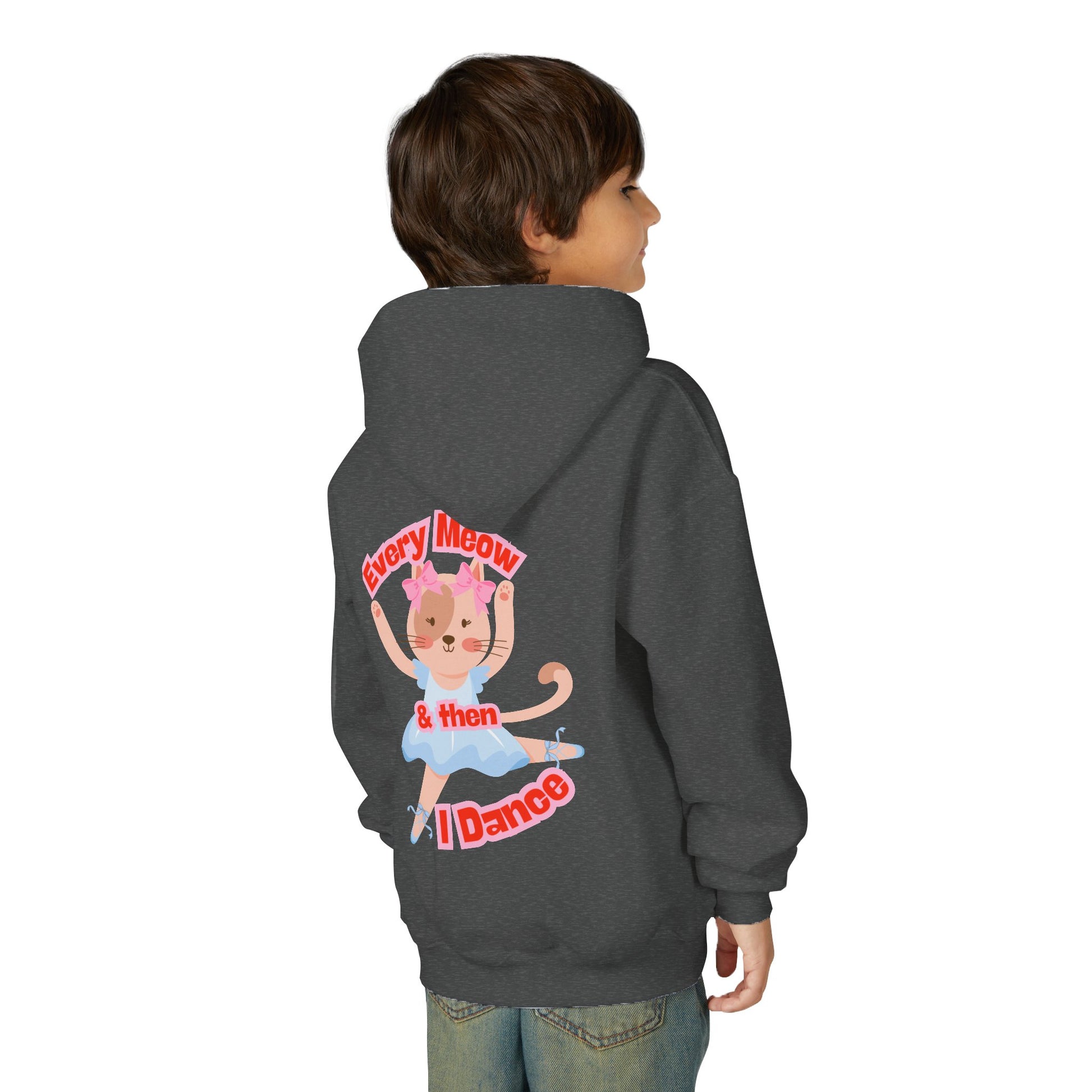 “Every Meow & Then I Dance” Adorable Dancing Cat Graphic | Cute Cat Dance Hoodie for Kids & Young Ballet Enthusiasts - Unisex Youth Hoodie