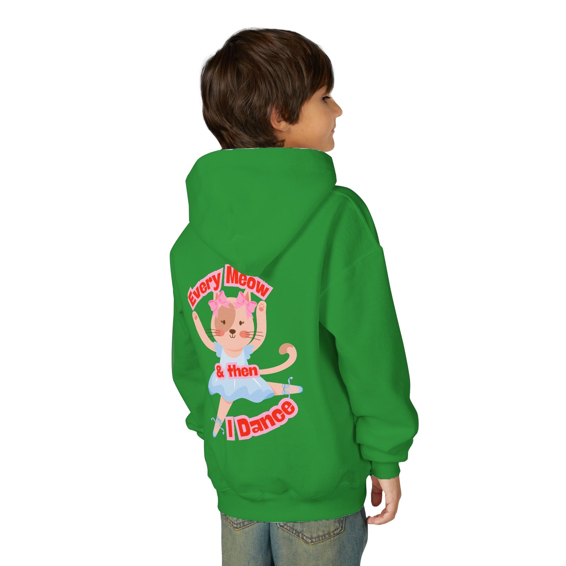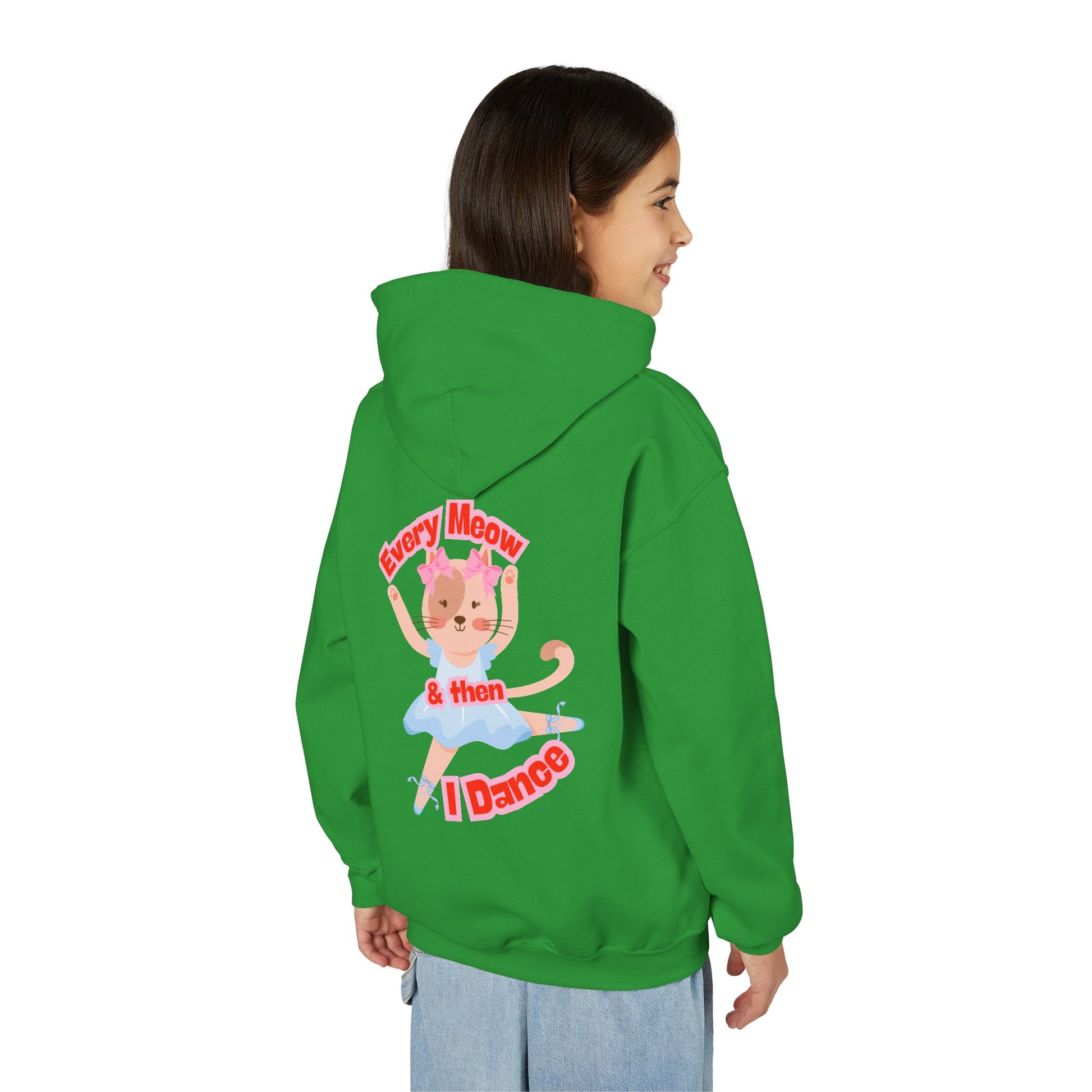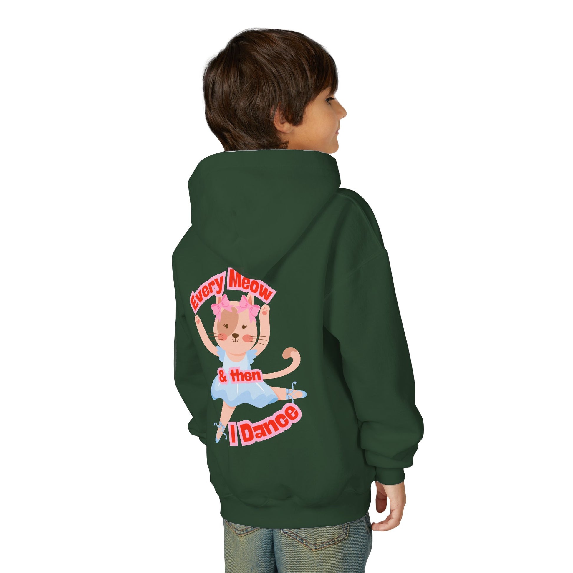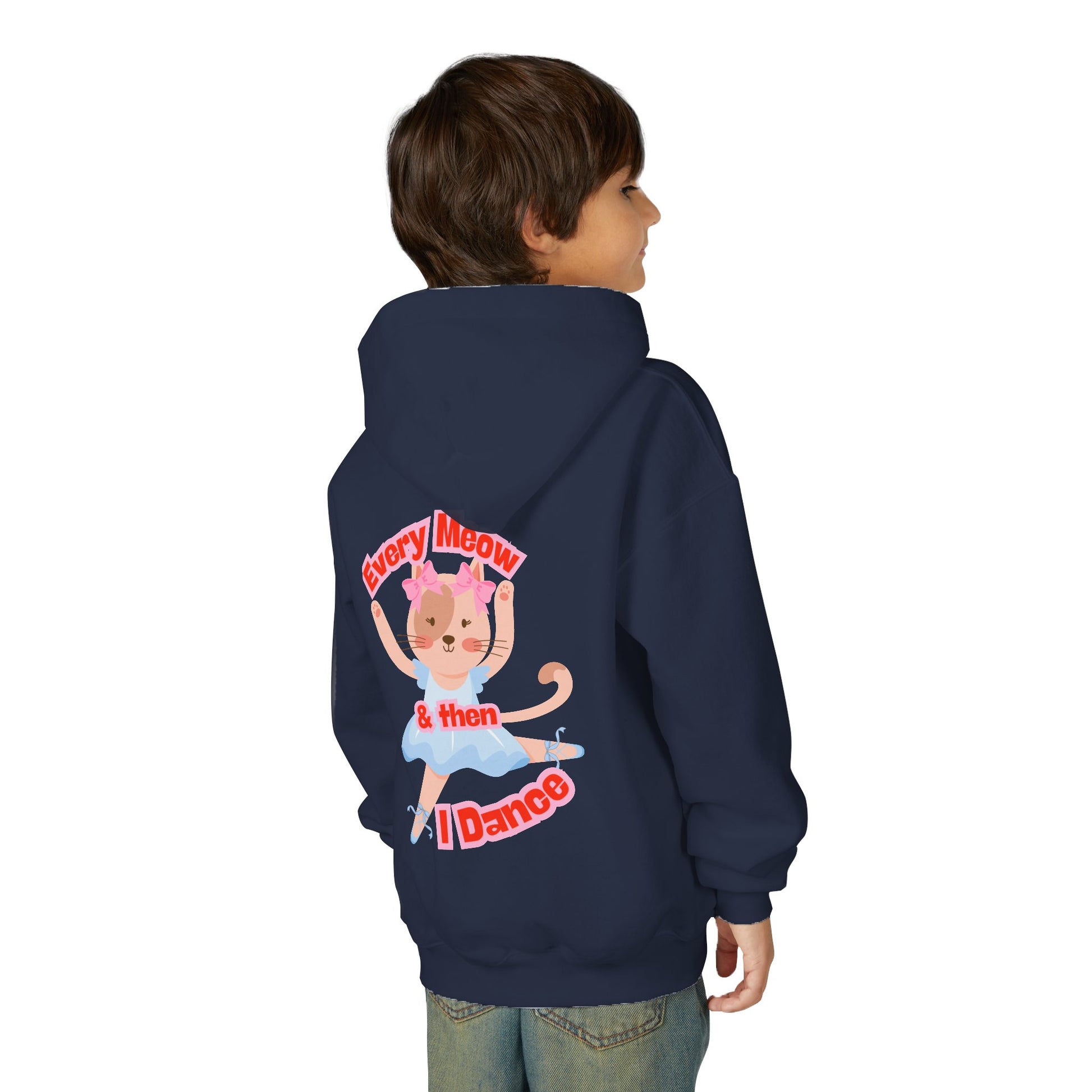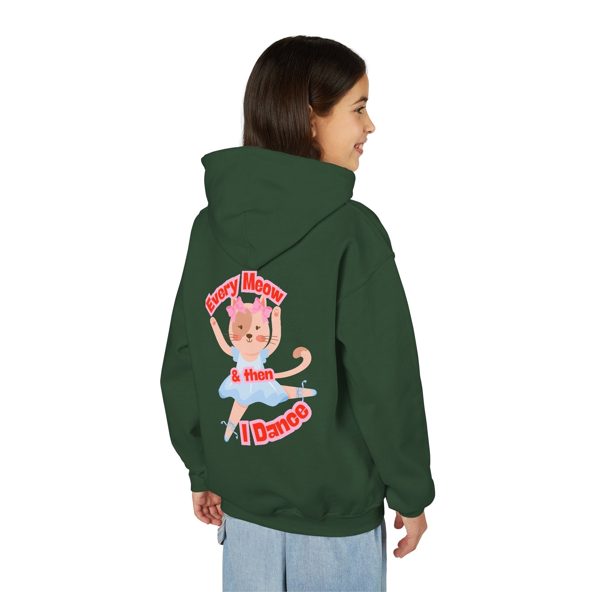 “Every Meow & Then I Dance” Adorable Dancing Cat Graphic | Cute Cat Dance Hoodie for Kids & Young Ballet Enthusiasts - Unisex Youth Hoodie