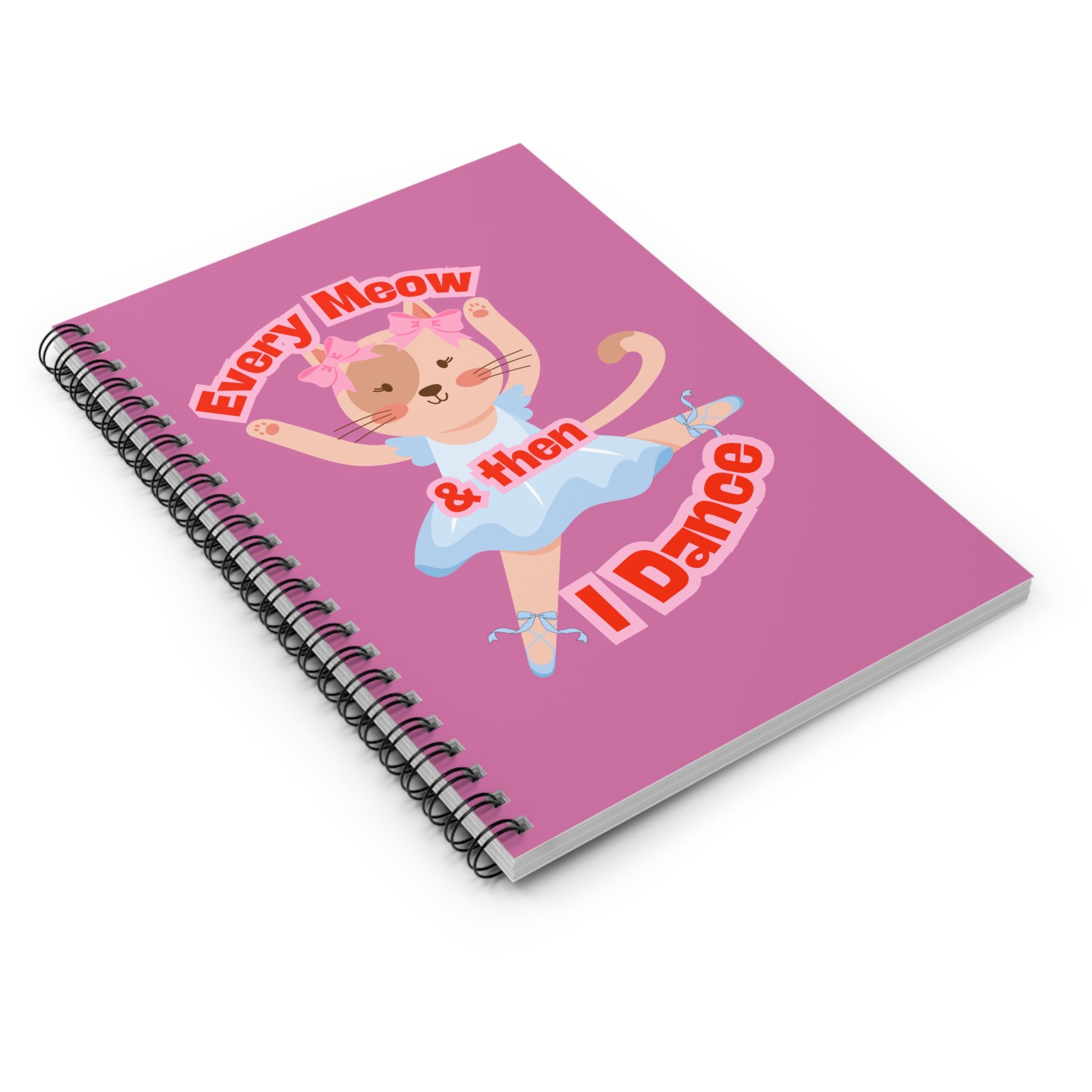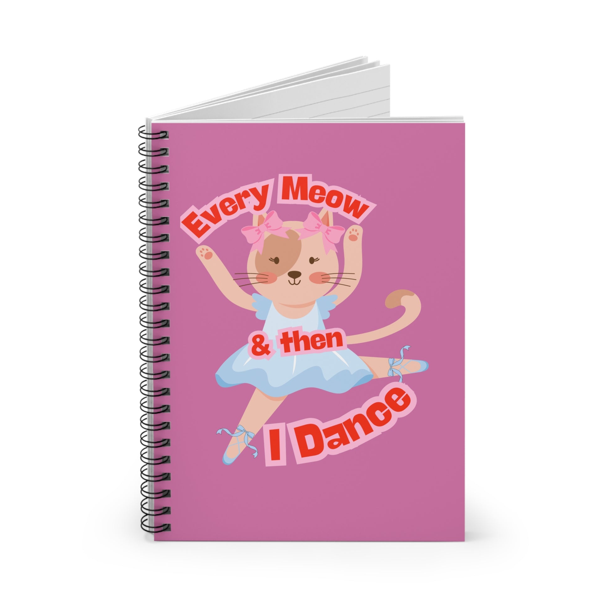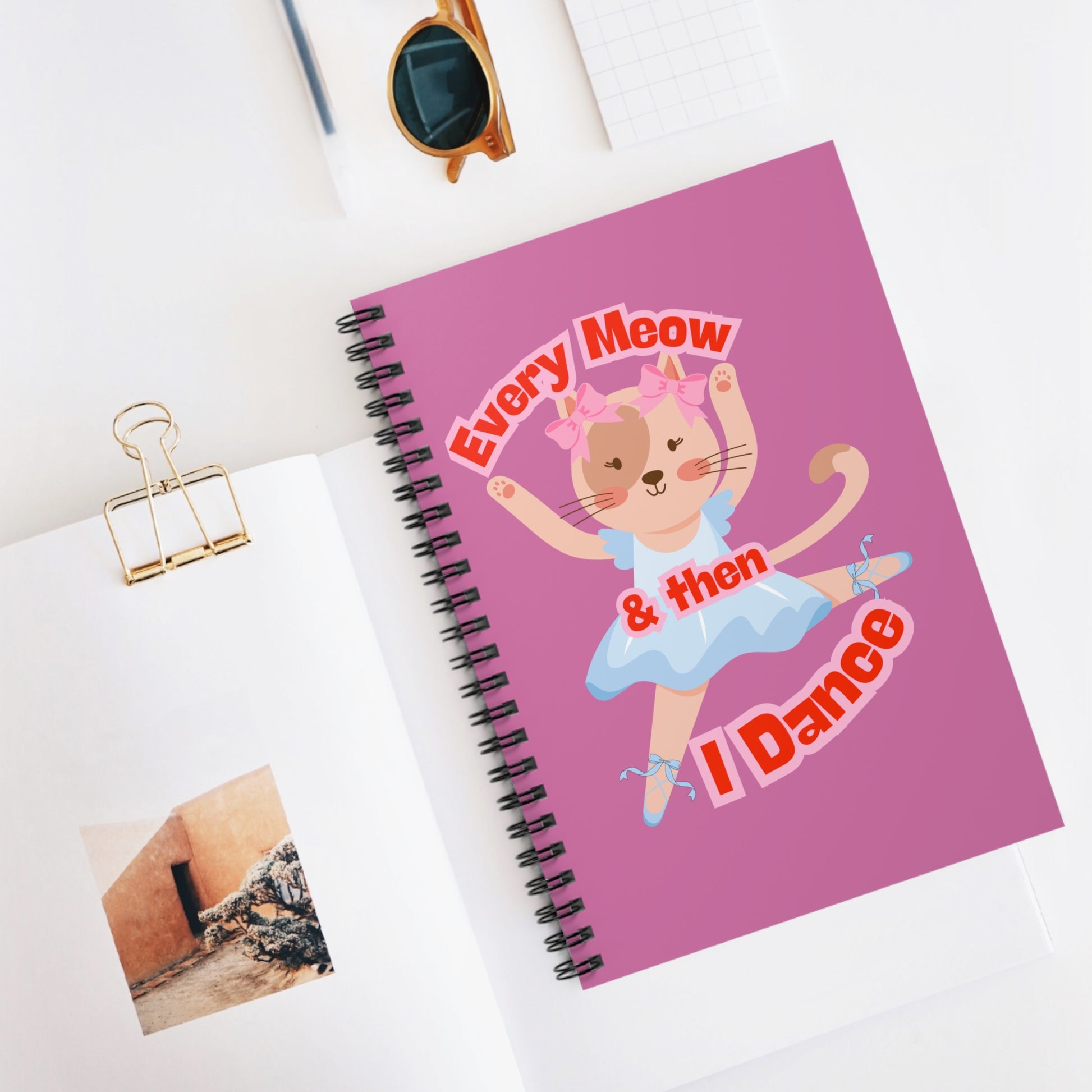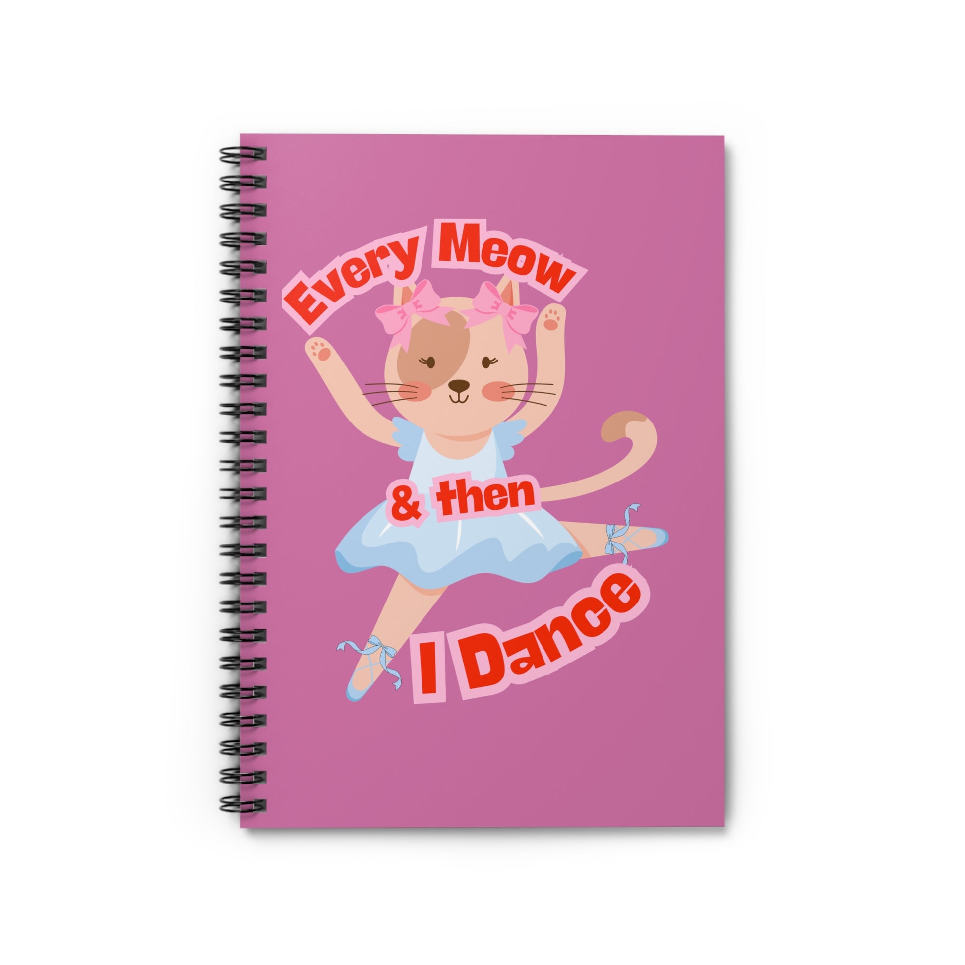 “Every Meow & Then I Dance” Adorable Dancing Cat Graphic | Cute Cat Dance Journal for Ballet Lovers, Students & Writers - Spiral Notebook
