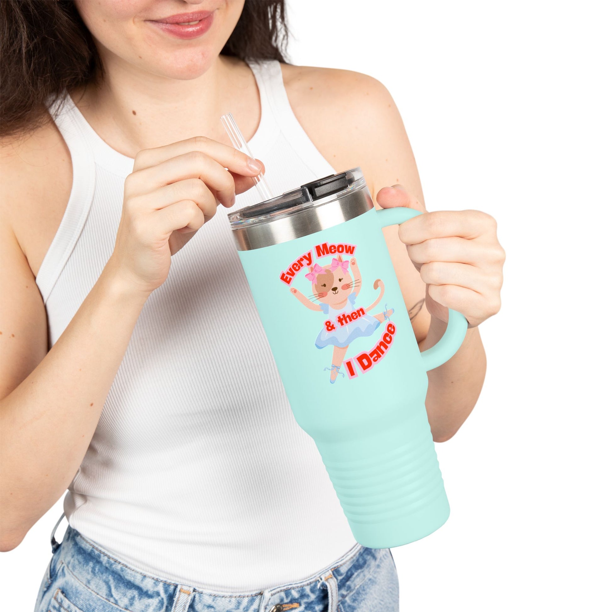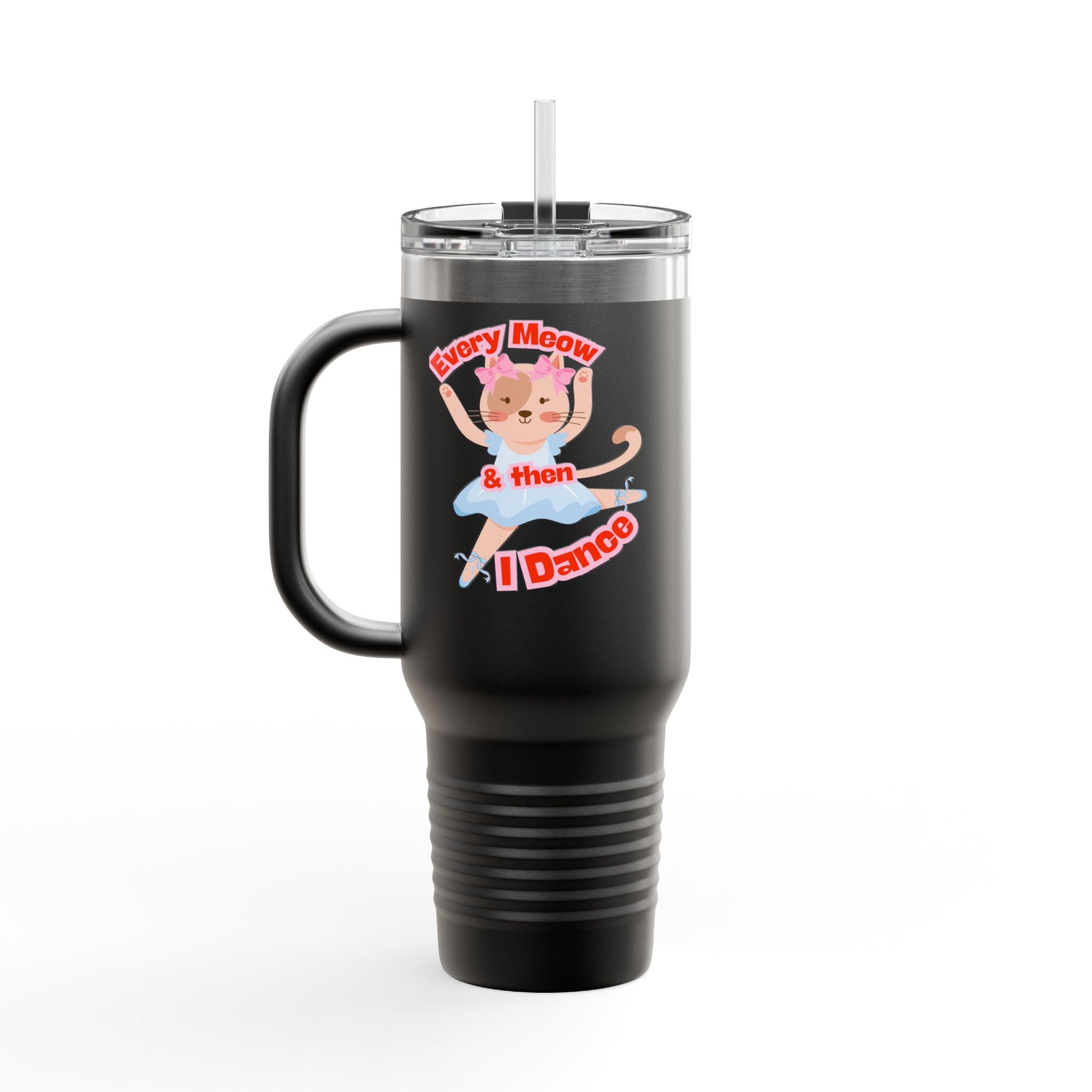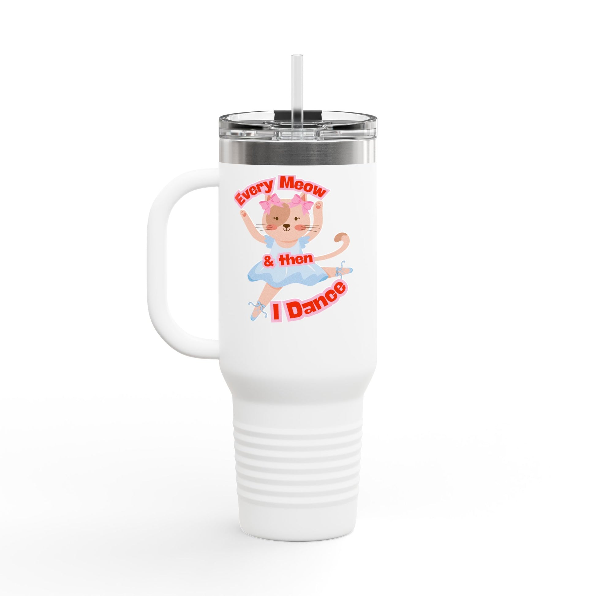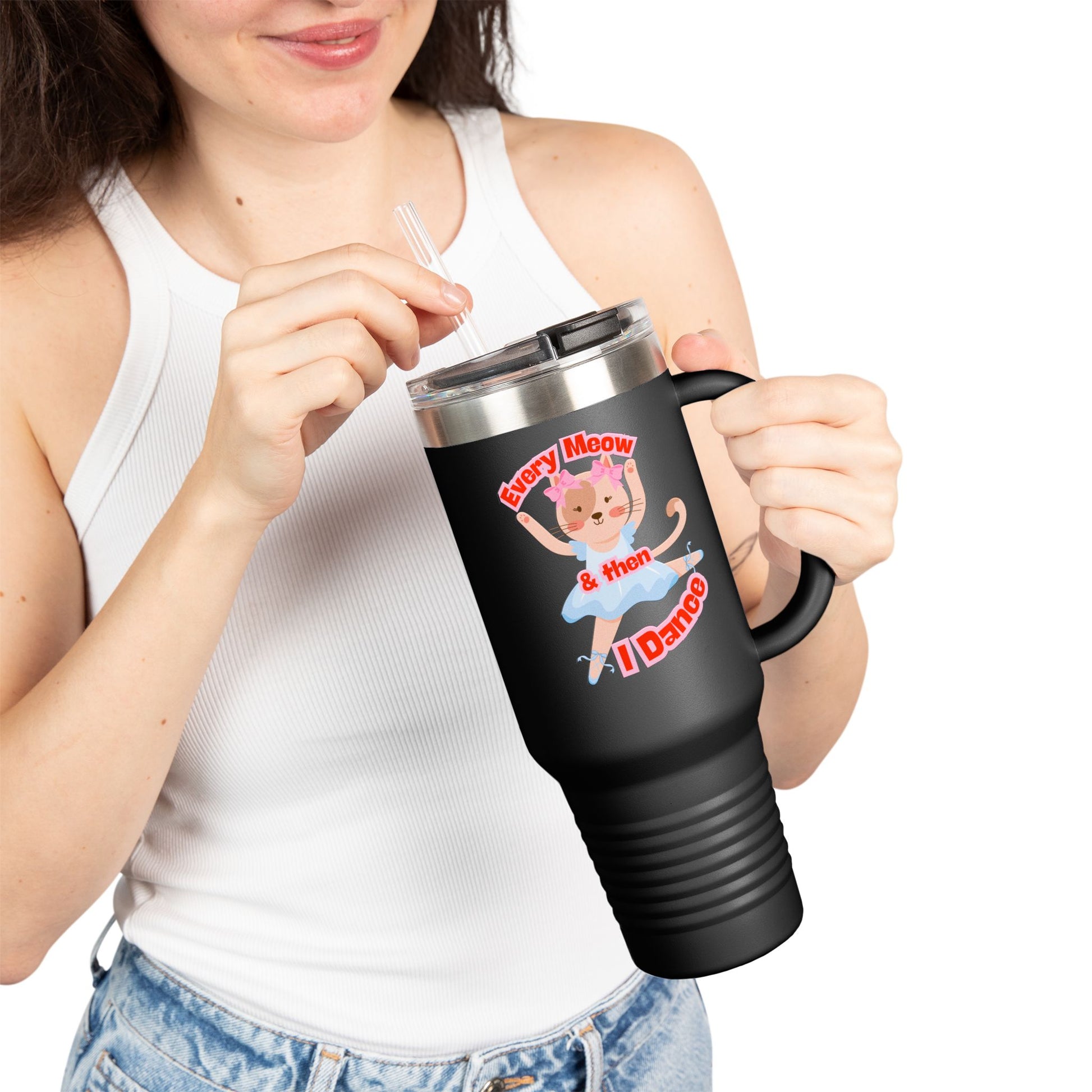 “Every Meow & Then I Dance” Adorable Dancing Cat Graphic | Cute Cat Dance Tumbler for Ballet Lovers & On-the-Go Coffee Enthusiasts - 40oz Insulated Travel Mug