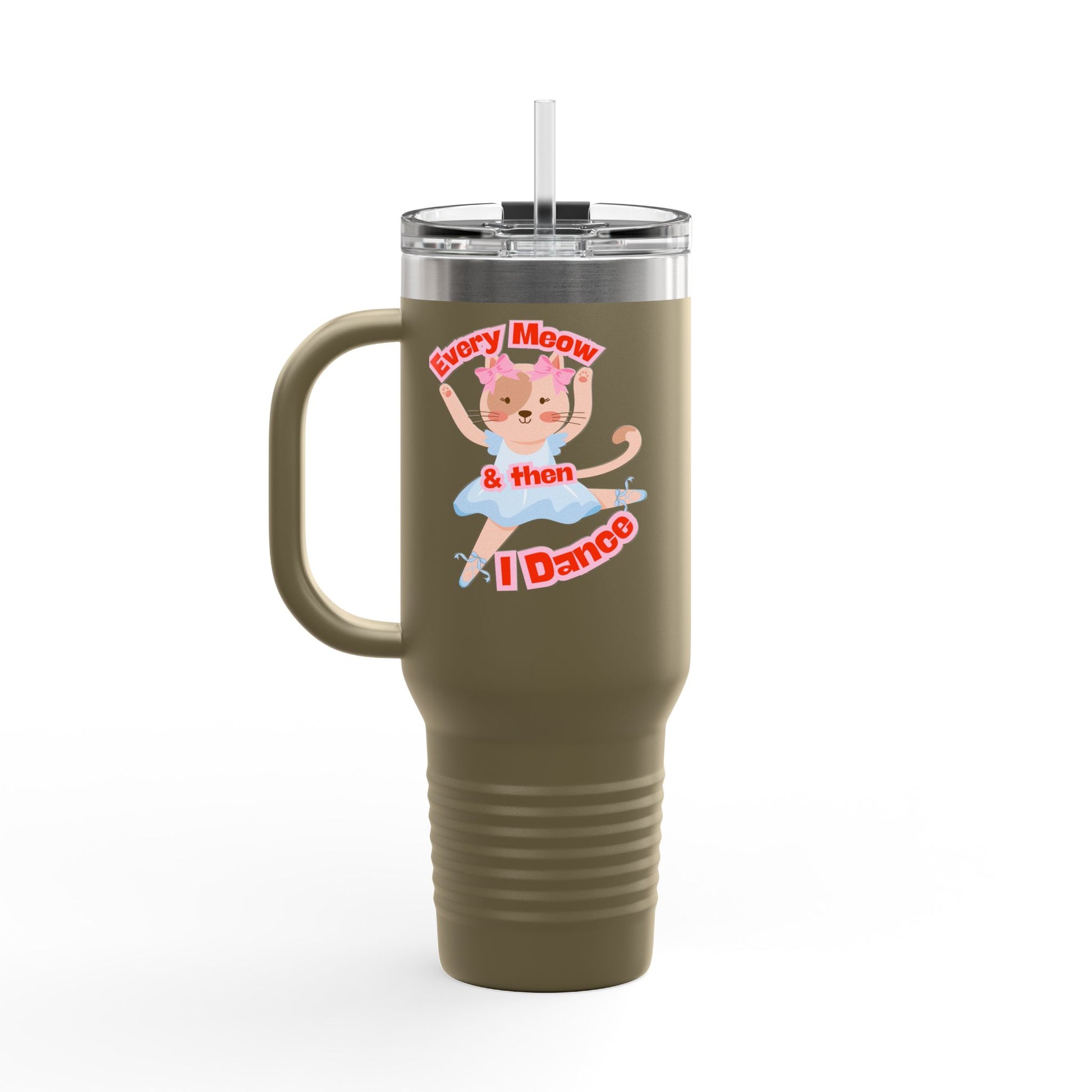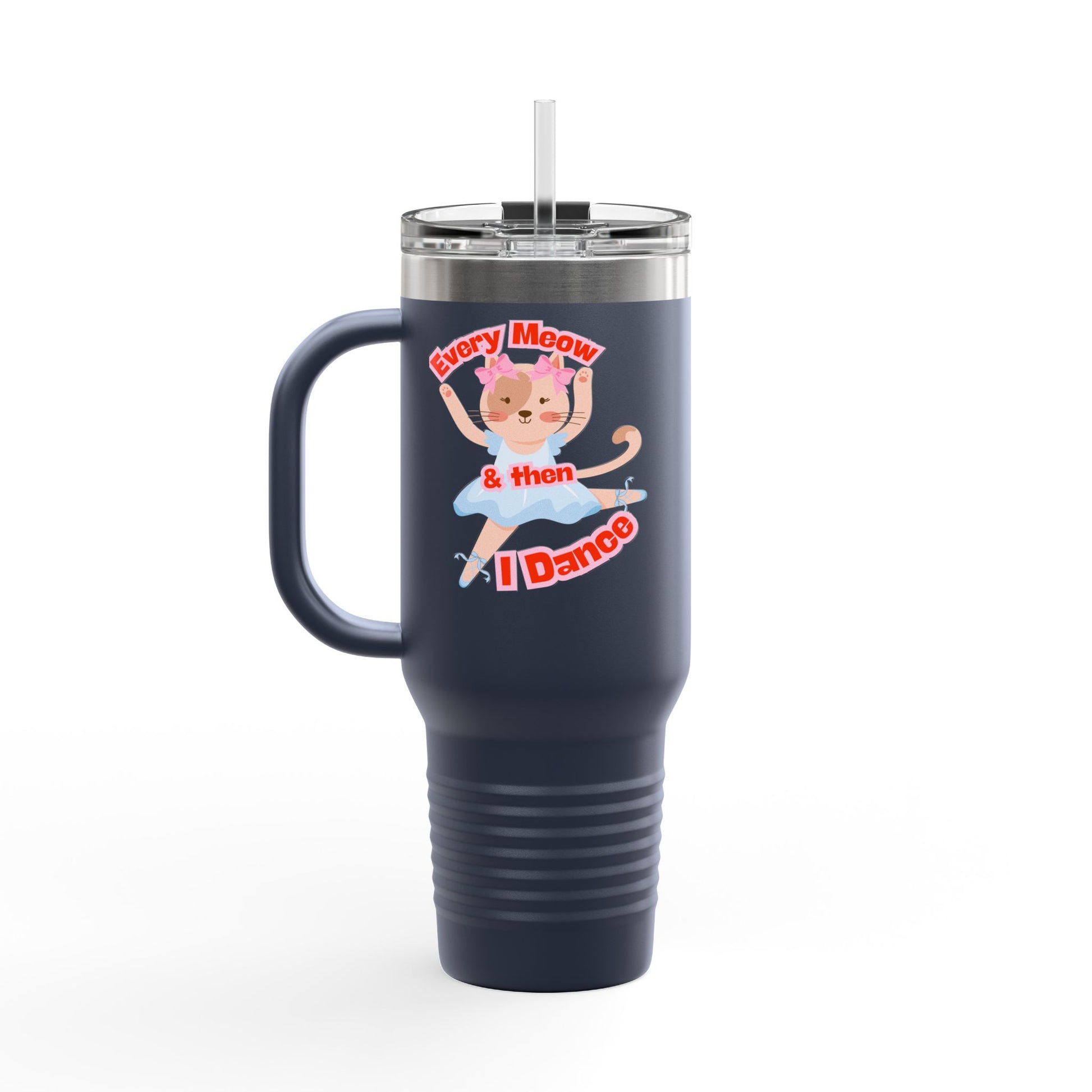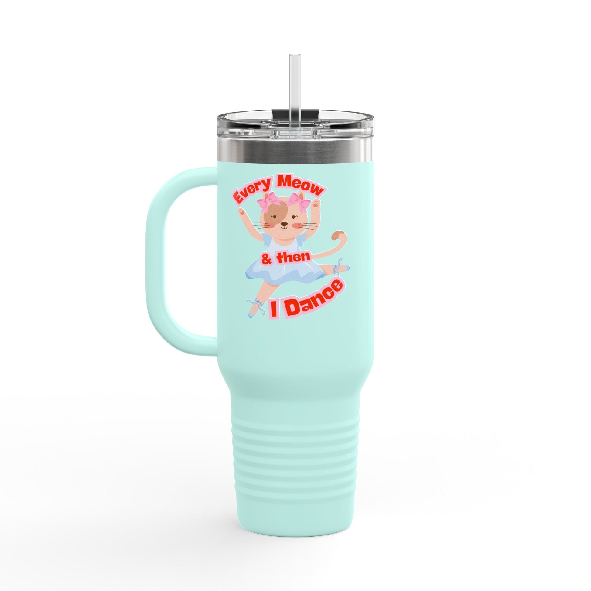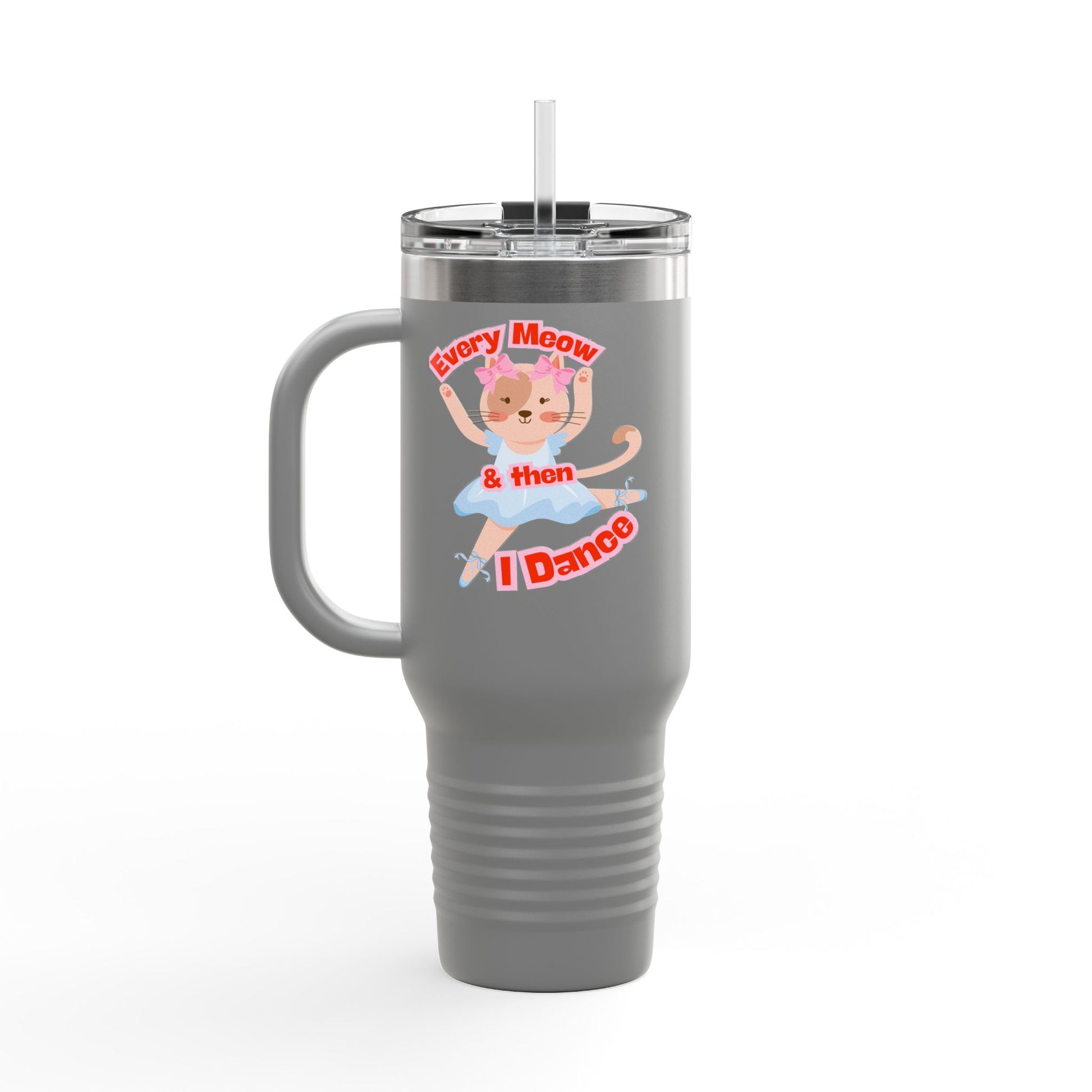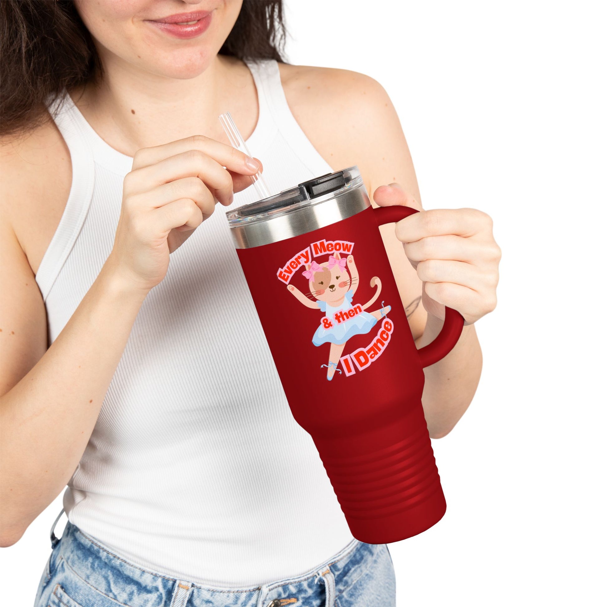 “Every Meow & Then I Dance” Adorable Dancing Cat Graphic | Cute Cat Dance Tumbler for Ballet Lovers & On-the-Go Coffee Enthusiasts - 40oz Insulated Travel Mug