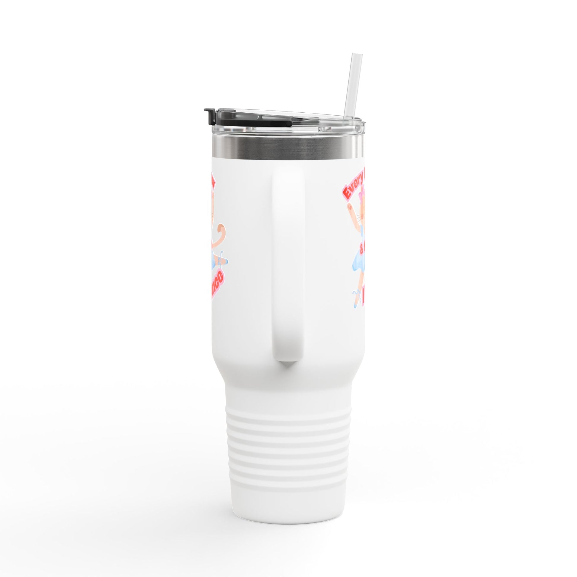 🐾☕ Keep your sips pawsitively perfect all day with the “Every Meow & Then I Dance” Accent Travel Mug! Featuring an adorable dancing cat graphic and playful text, this insulated mug is made for dancers, cat lovers, and anyone who wants a little extra joy with their daily hydration. Whether you’re headed to class, rehearsals, work, or a road trip adventure, this mug keeps your drinks just the way you like them—hot, cold, and ready to fuel your day. 🌟🐱💃