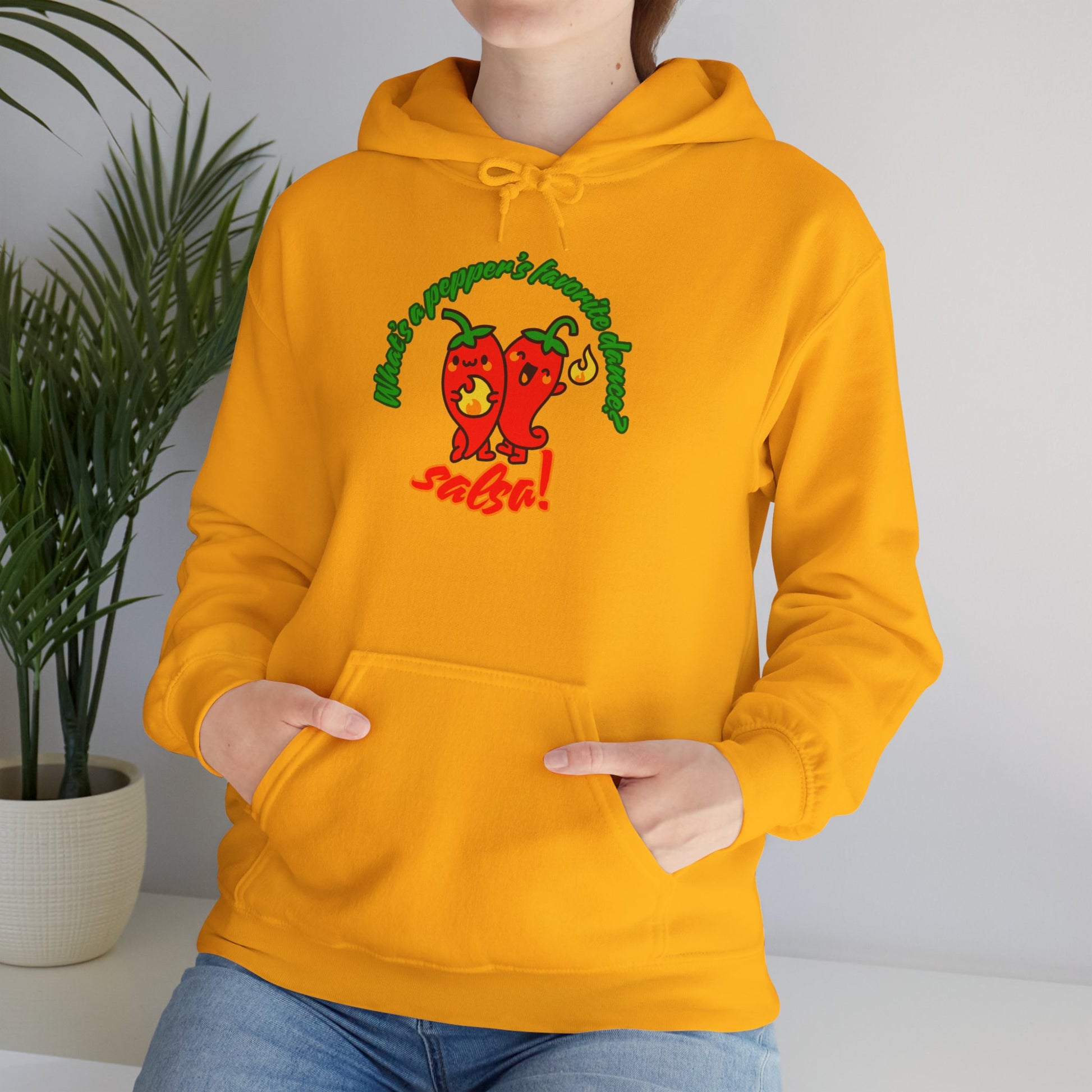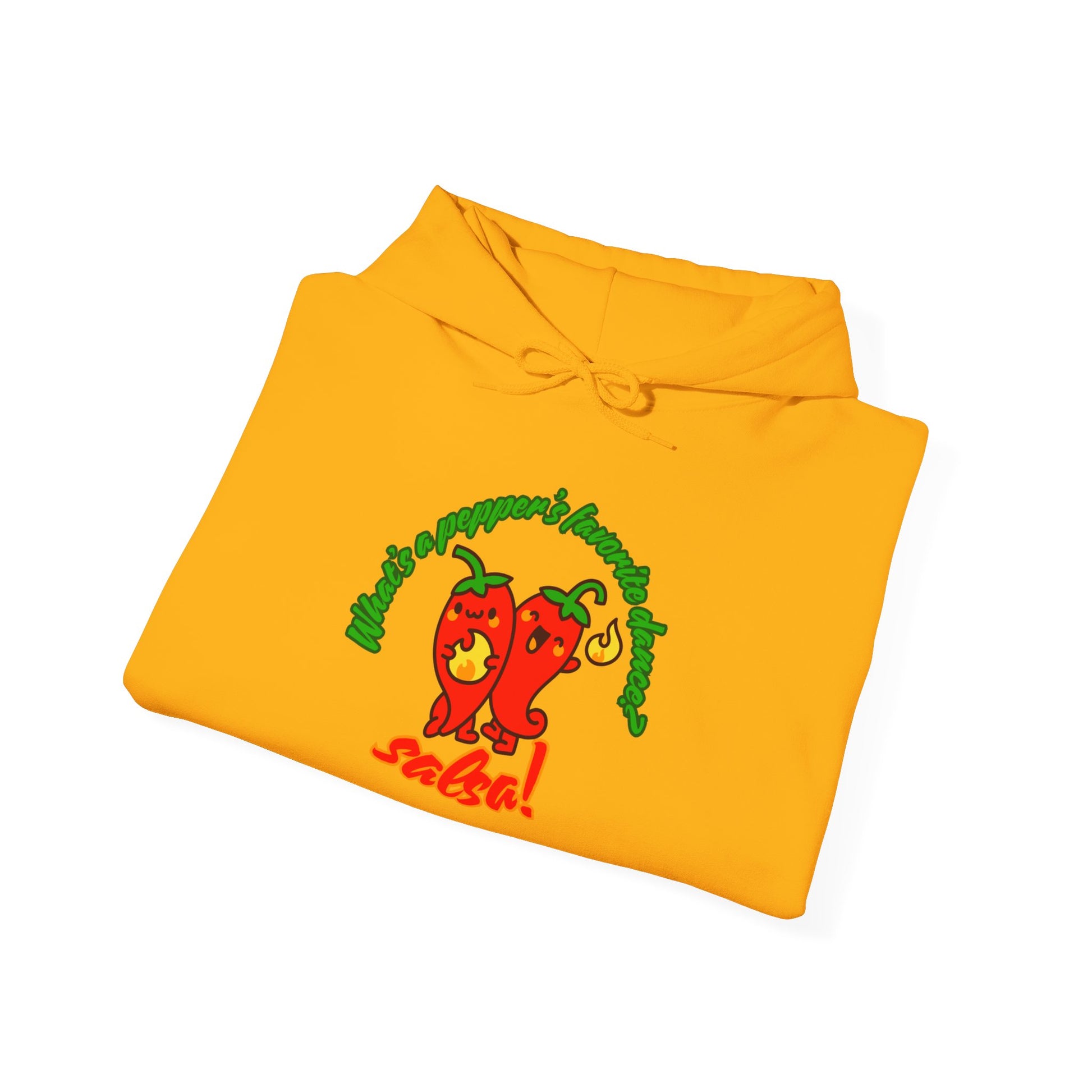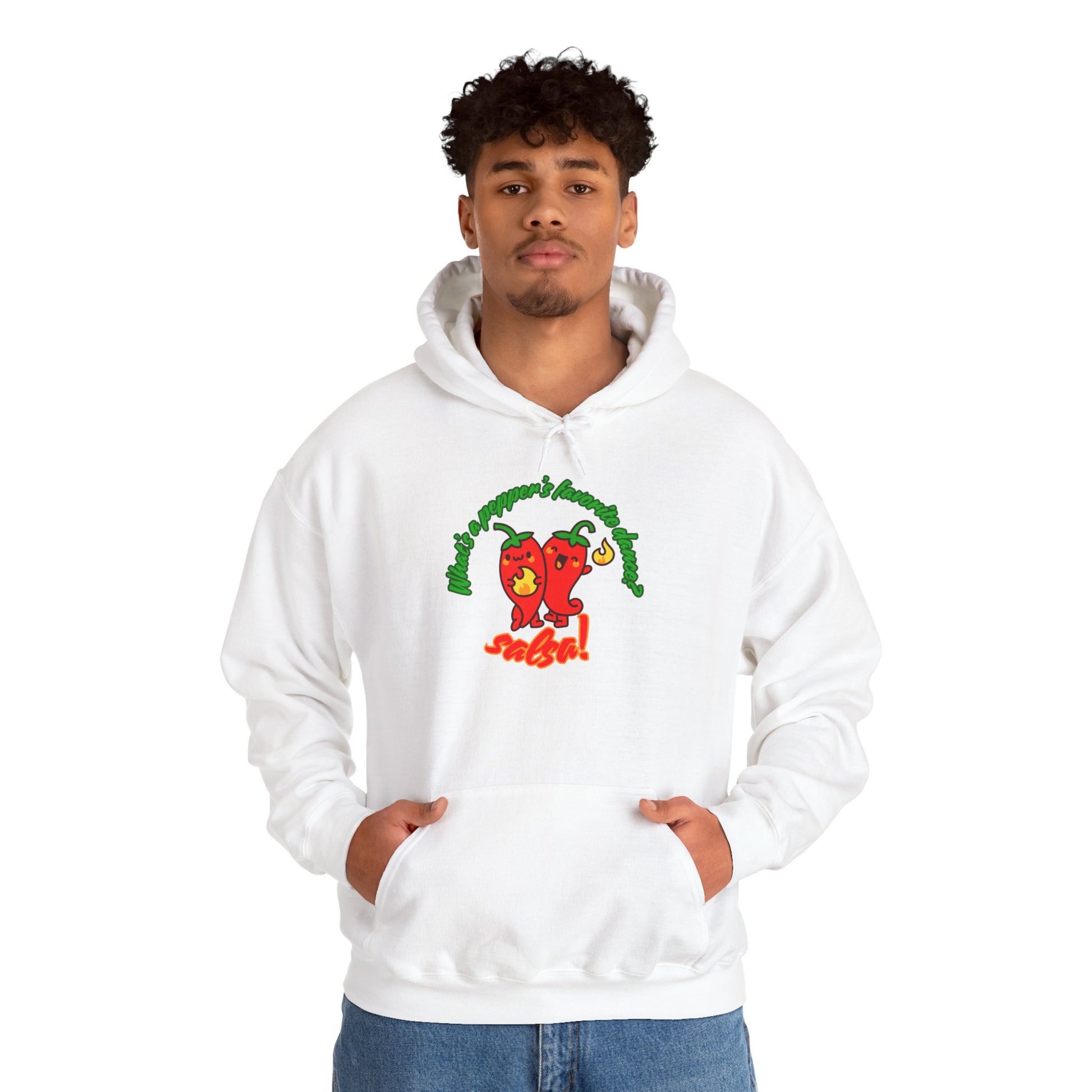 Introducing the "What’s a Pepper’s Favorite Dance? Salsa!" Unisex Hooded Sweatshirt—a cozy classic with a hilarious dance pun and an adorable pepper graphic that’s too hot to handle! Whether you're heading to rehearsal, lounging on the couch, or salsa dancing in the kitchen, this hoodie is your new go-to for warmth, comfort, and smiles.
