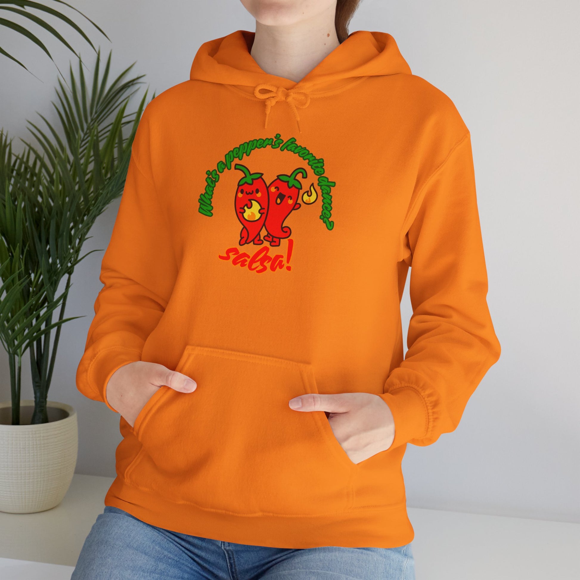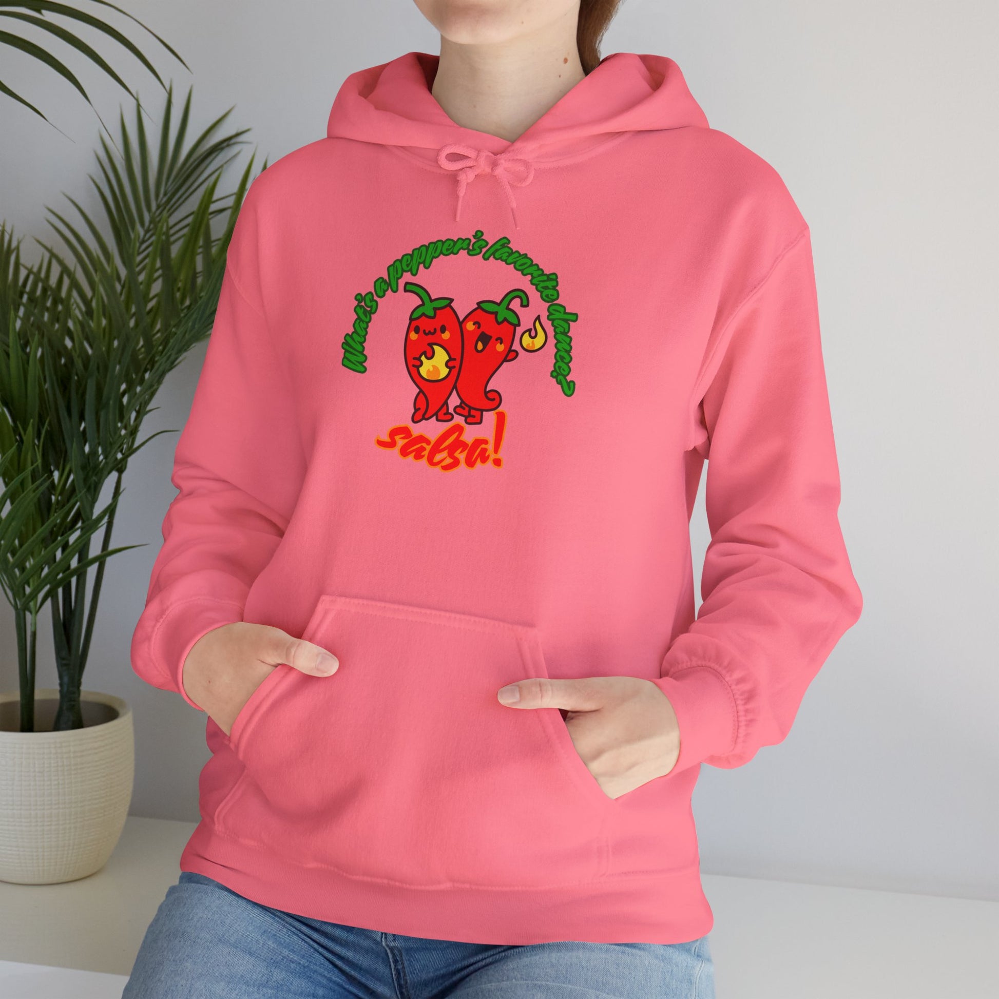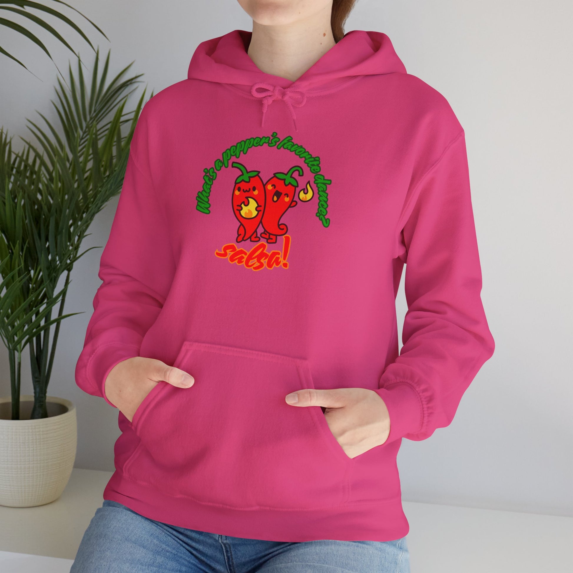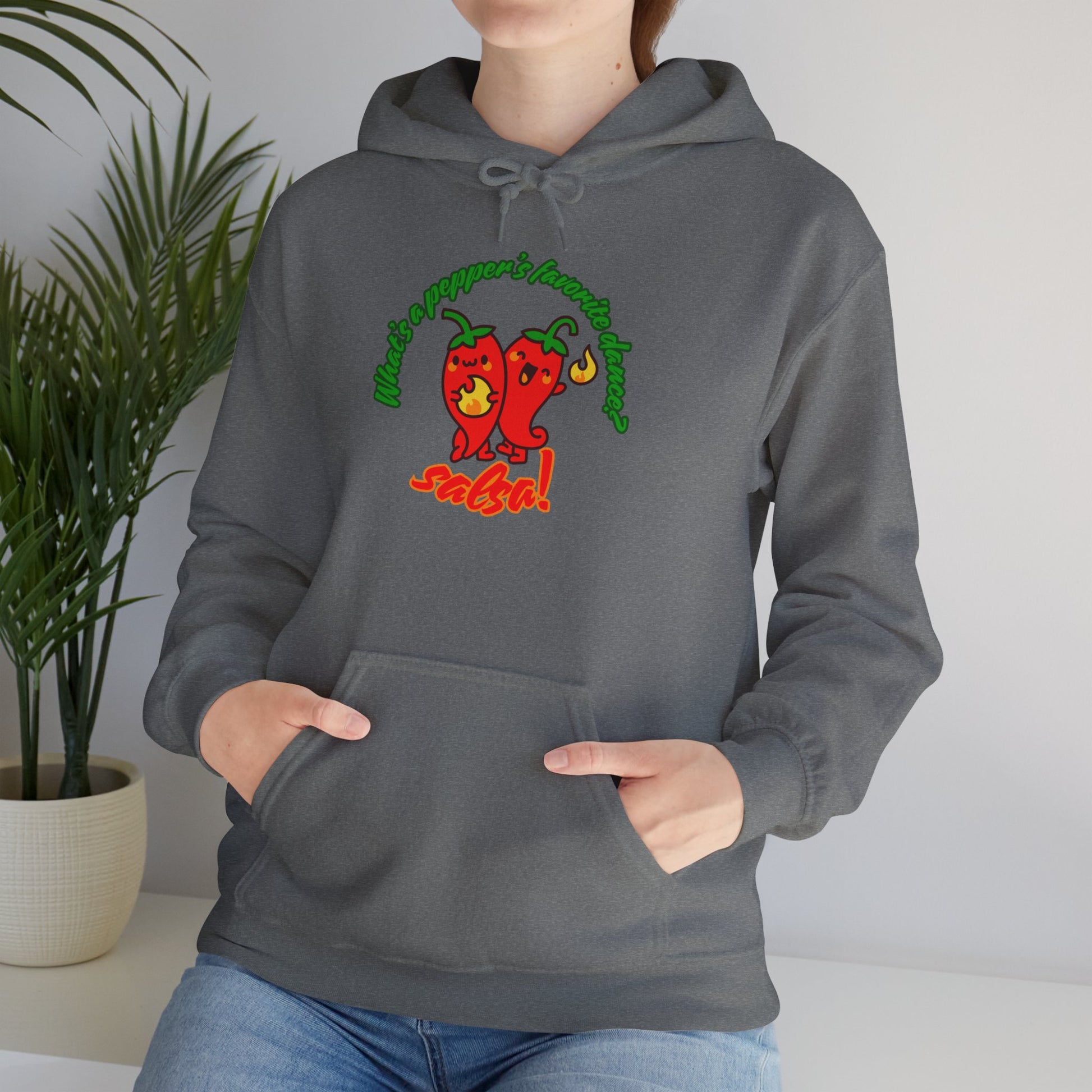 "What’s a Pepper’s Favorite Dance? Salsa!" Unisex Hooded Sweatshirt – Funny Dance Pun Hoodie with Cute Pepper Graphic for Dancers & Foodies