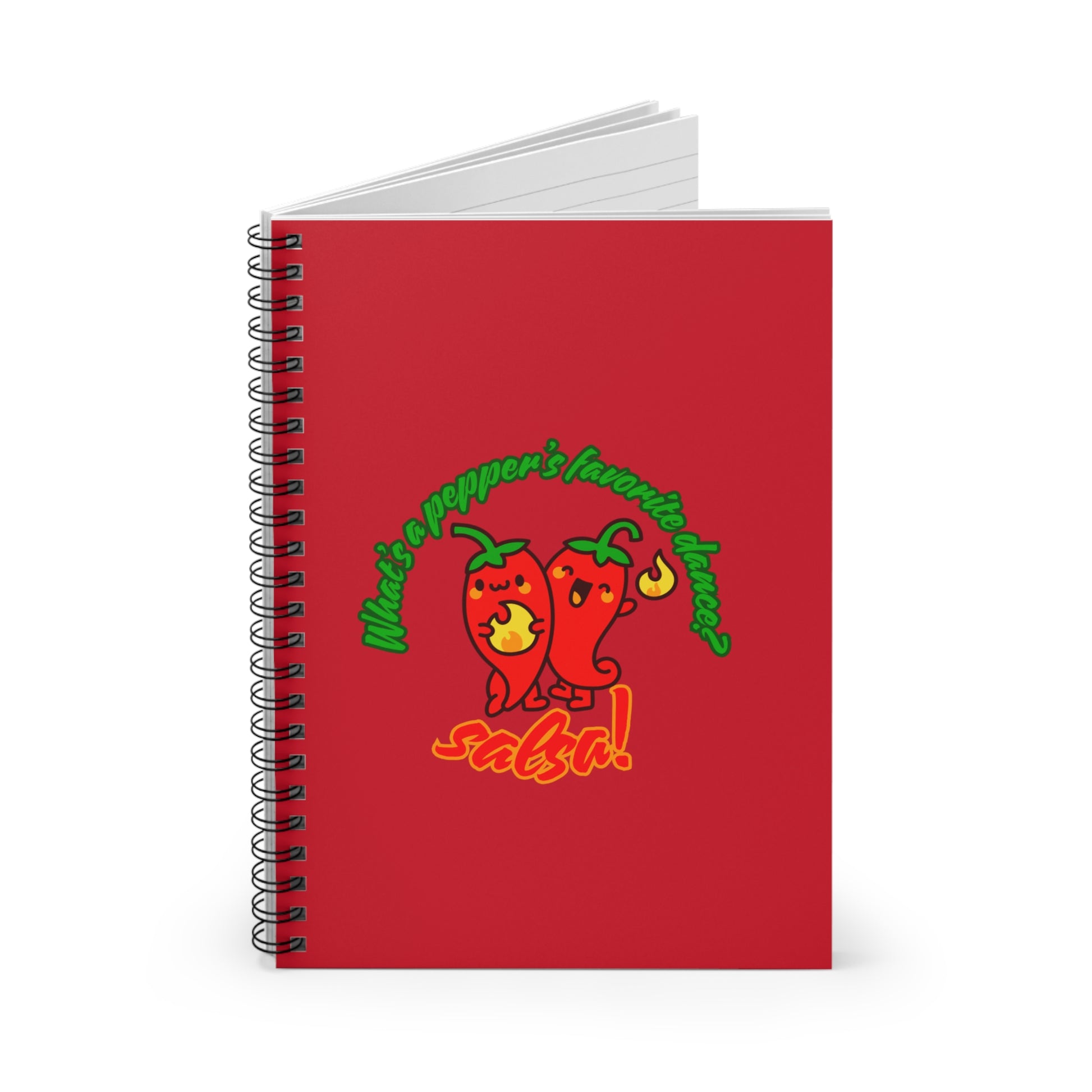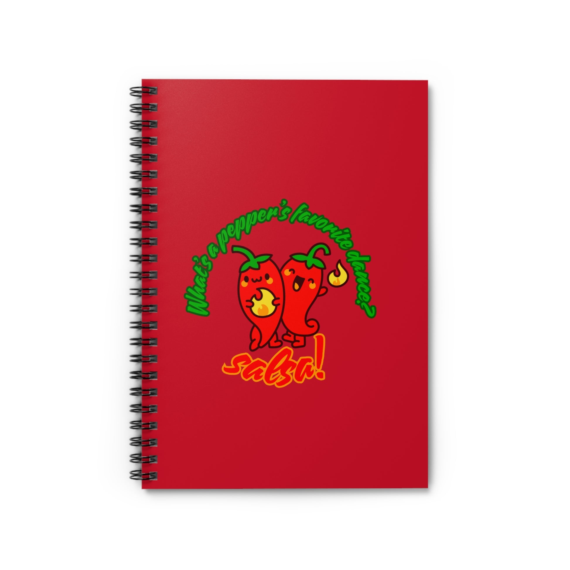 🌶️💃 What’s a pepper’s favorite dance? Salsa! Bring the heat to your note-taking routine with this spicy-cute Spiral Notebook that’s bursting with personality and punny charm! Featuring a cheerful pepper graphic and a giggle-worthy dance pun, this notebook is the perfect blend of fun and functional. 🌟✍️