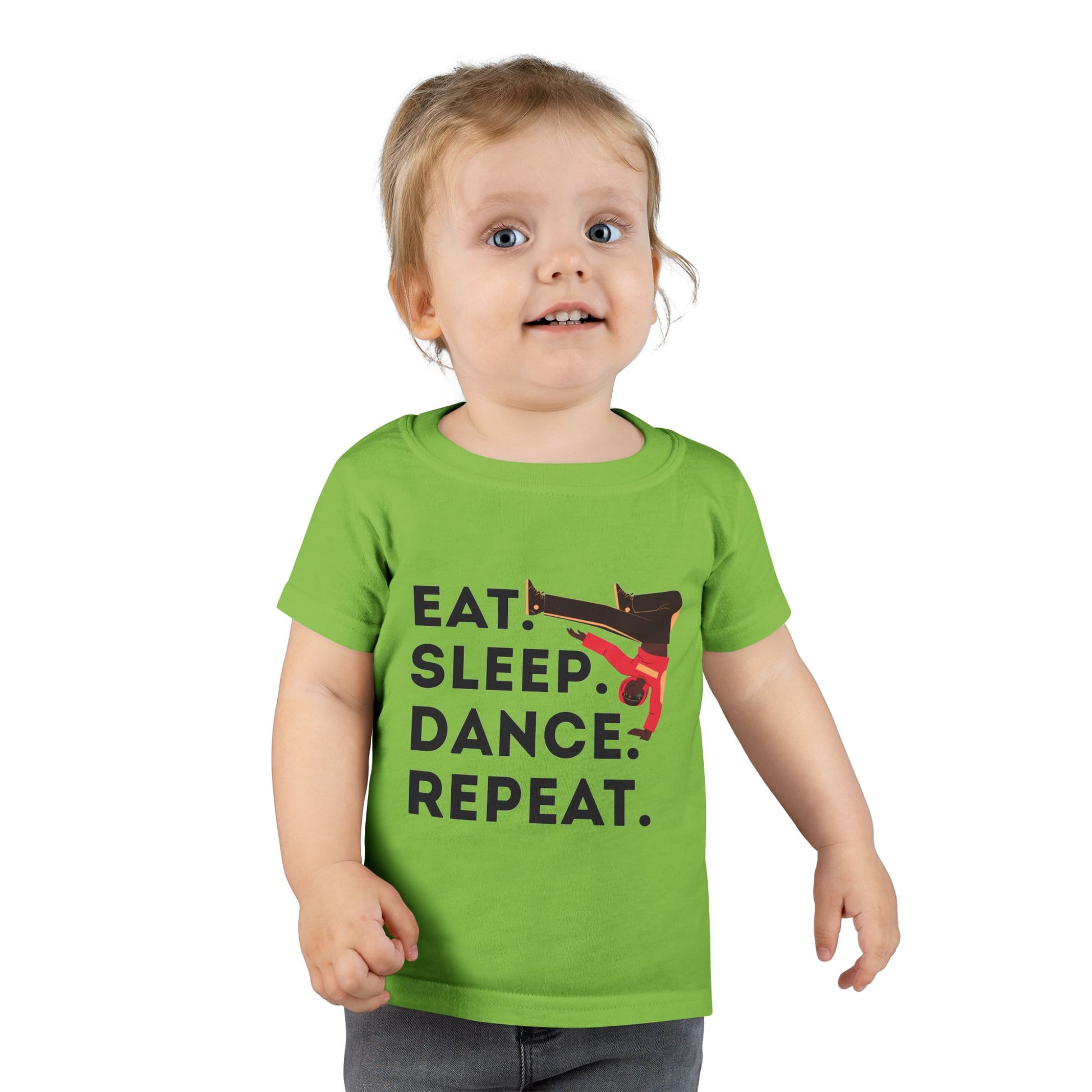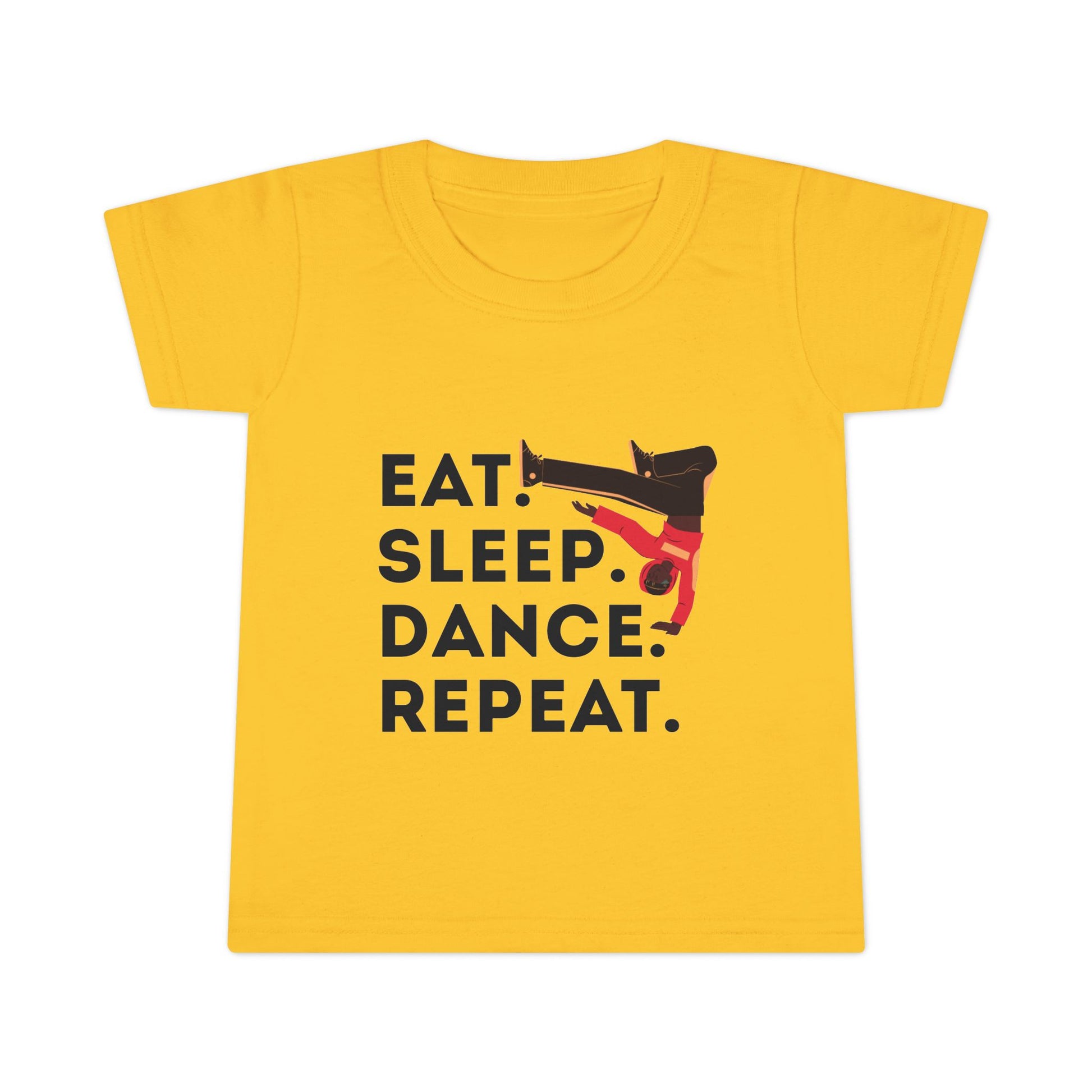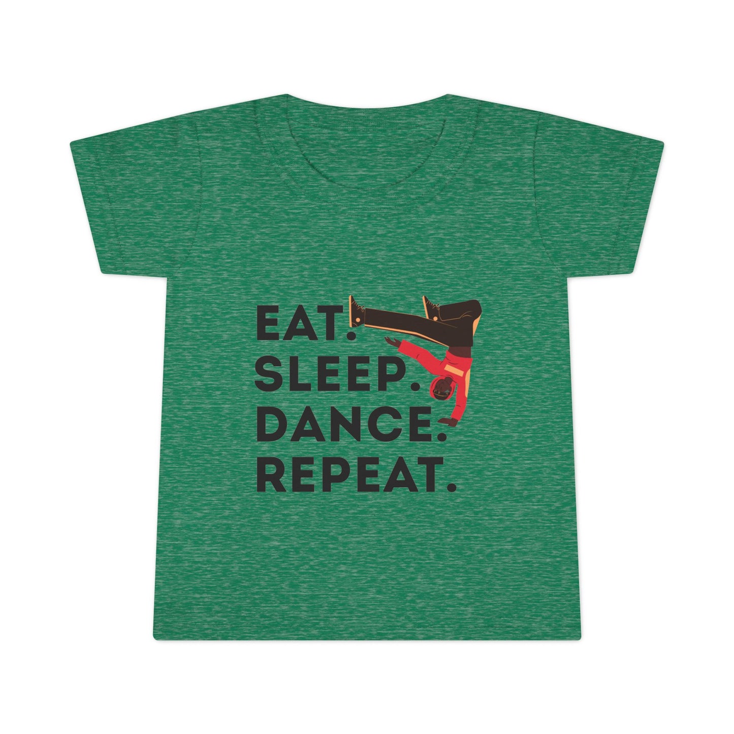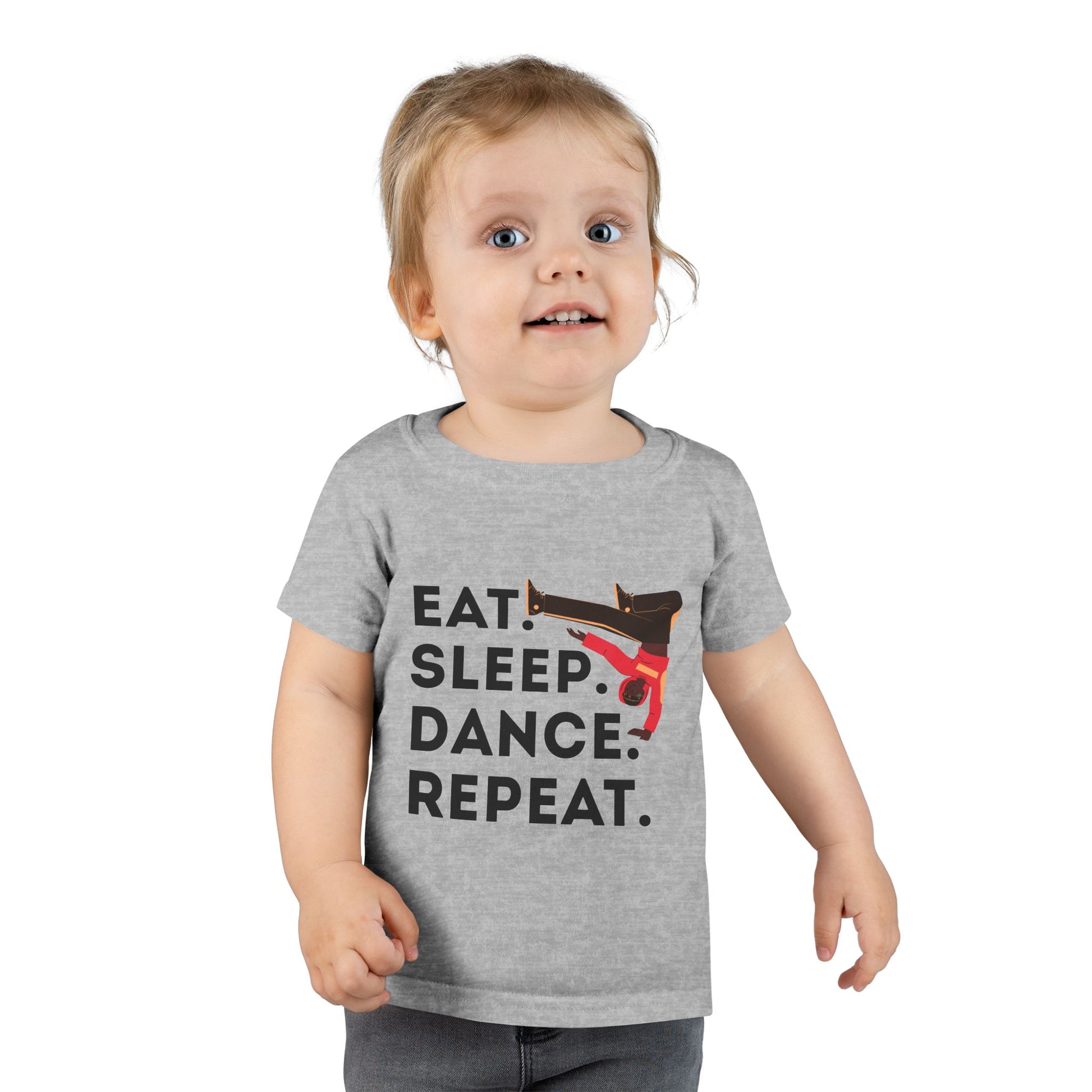 "Eat, Sleep, Dance, Repeat" Toddler Dance T-Shirt – Bold B-Boy Graphic Short Sleeve Tee for Kids