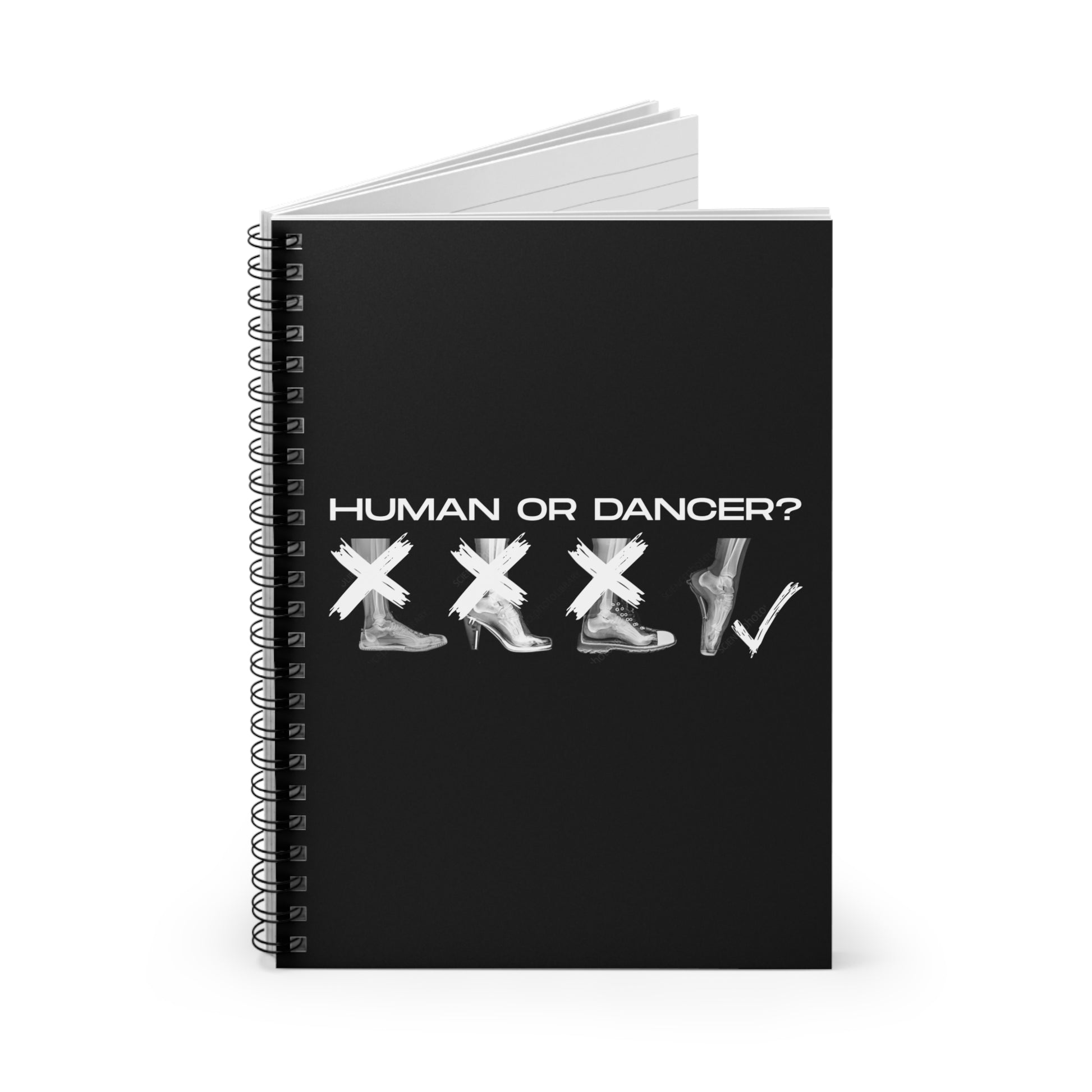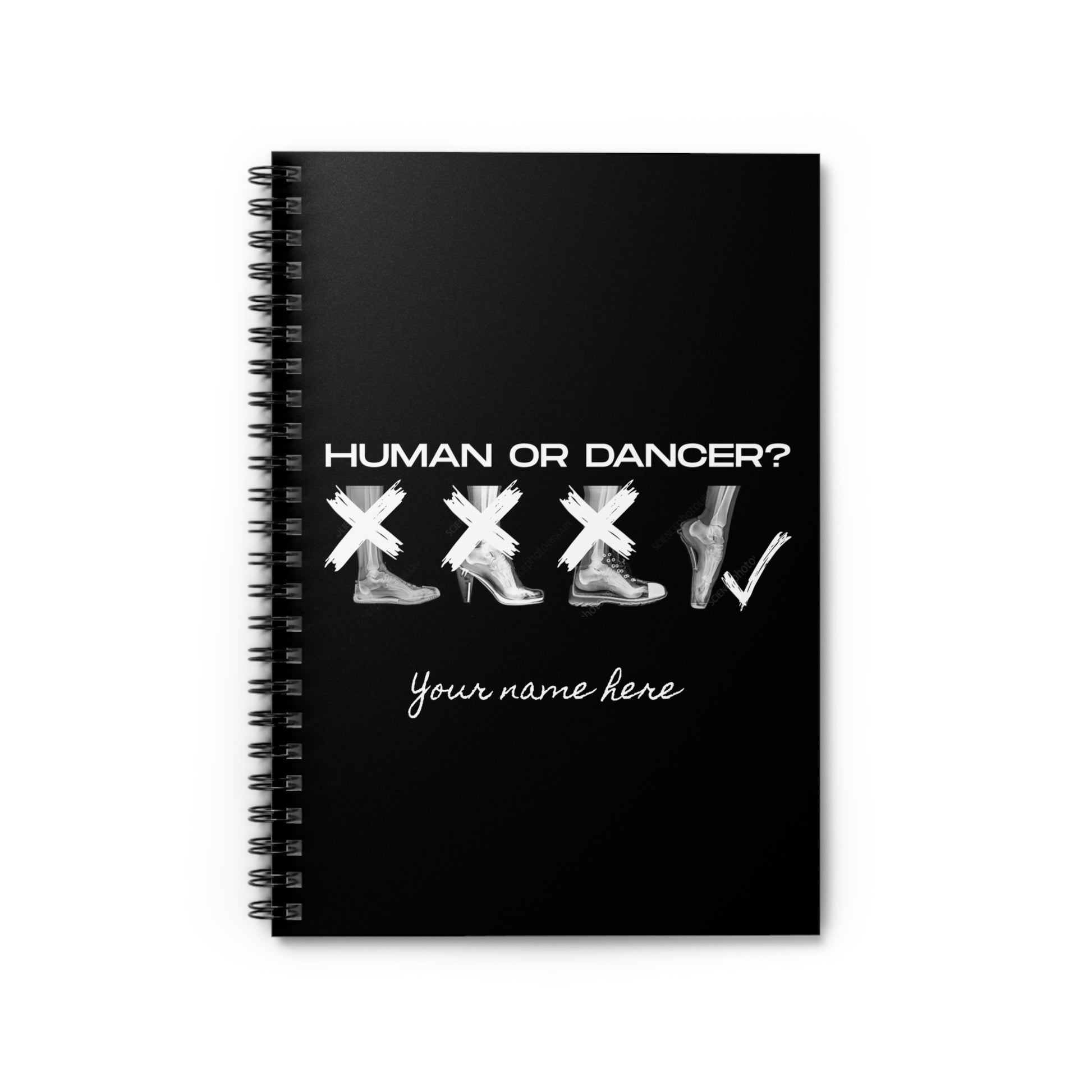 “Human or Dancer” Spiral Notebook with Cute X-Ray Ballet Feet Graphic – Personalized Dance Notebook with Custom Name or Studio Option
