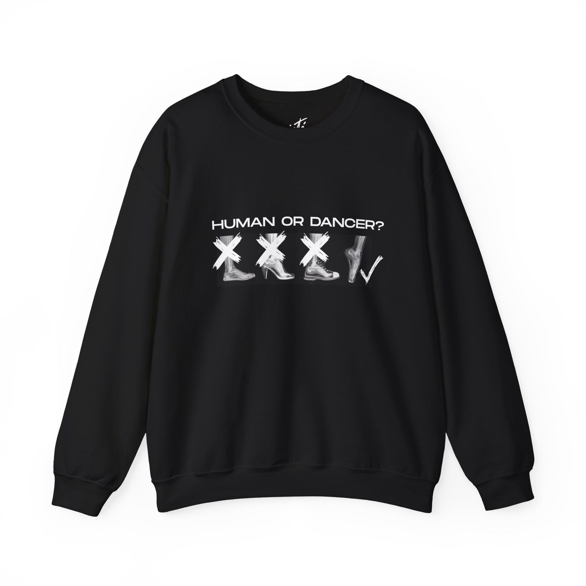 This “Human or Dancer?” Unisex Heavy Blend Crewneck Sweatshirt playfully captures the truth every dancer lives by from your first plié to your last pointe shoe fitting. Featuring an adorable X-ray-style graphic showing feet in regular shoes beside feet in pointe shoes, this cozy crewneck is equal parts witty and relatable. It’s a fun nod to the fact that once you’ve danced, you’re built different.