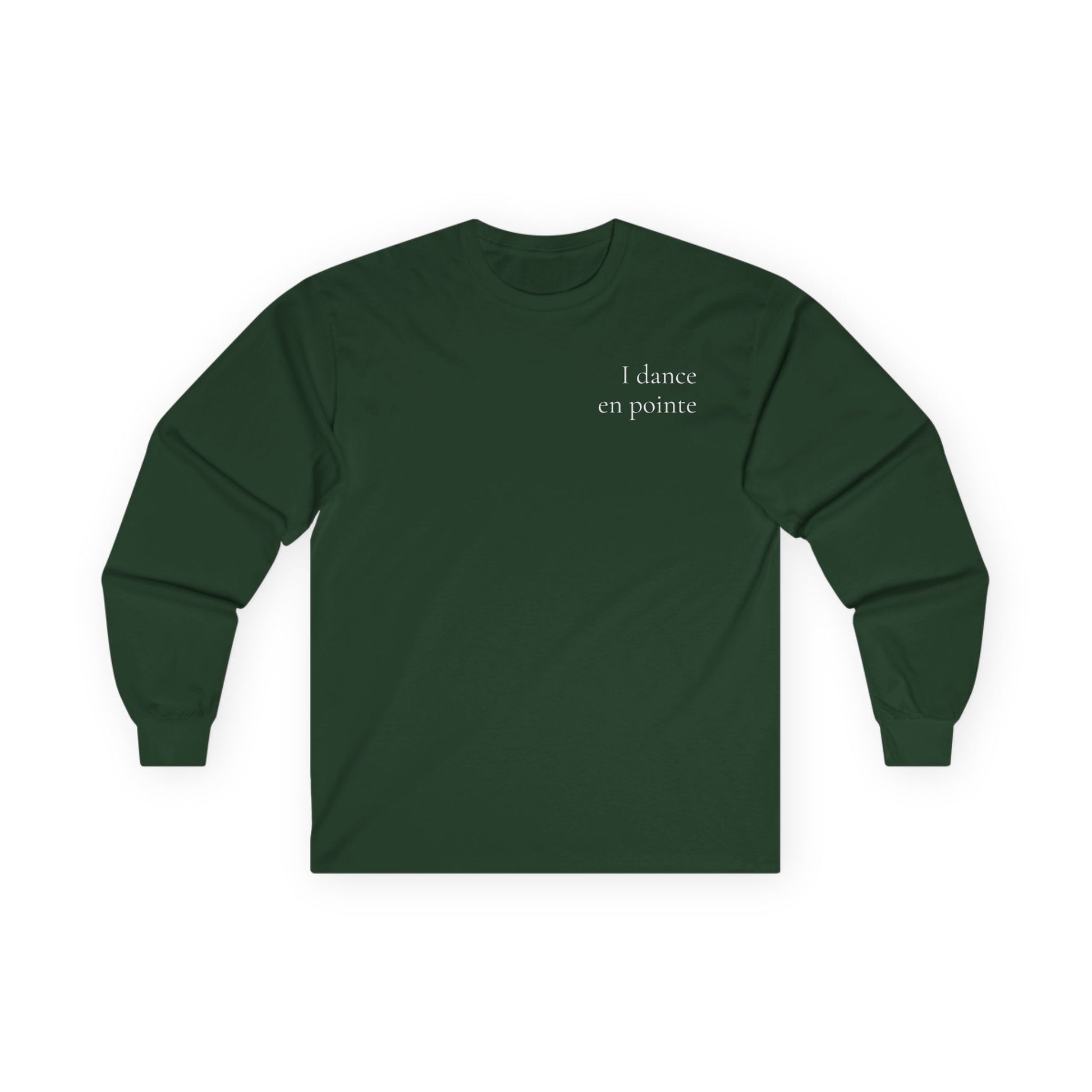“I Dance En Pointe” Unisex Long Sleeve Tee with X-Ray Pointe Foot Graphic – Ballet Dance Shirt with Optional Name or Studio Personalization