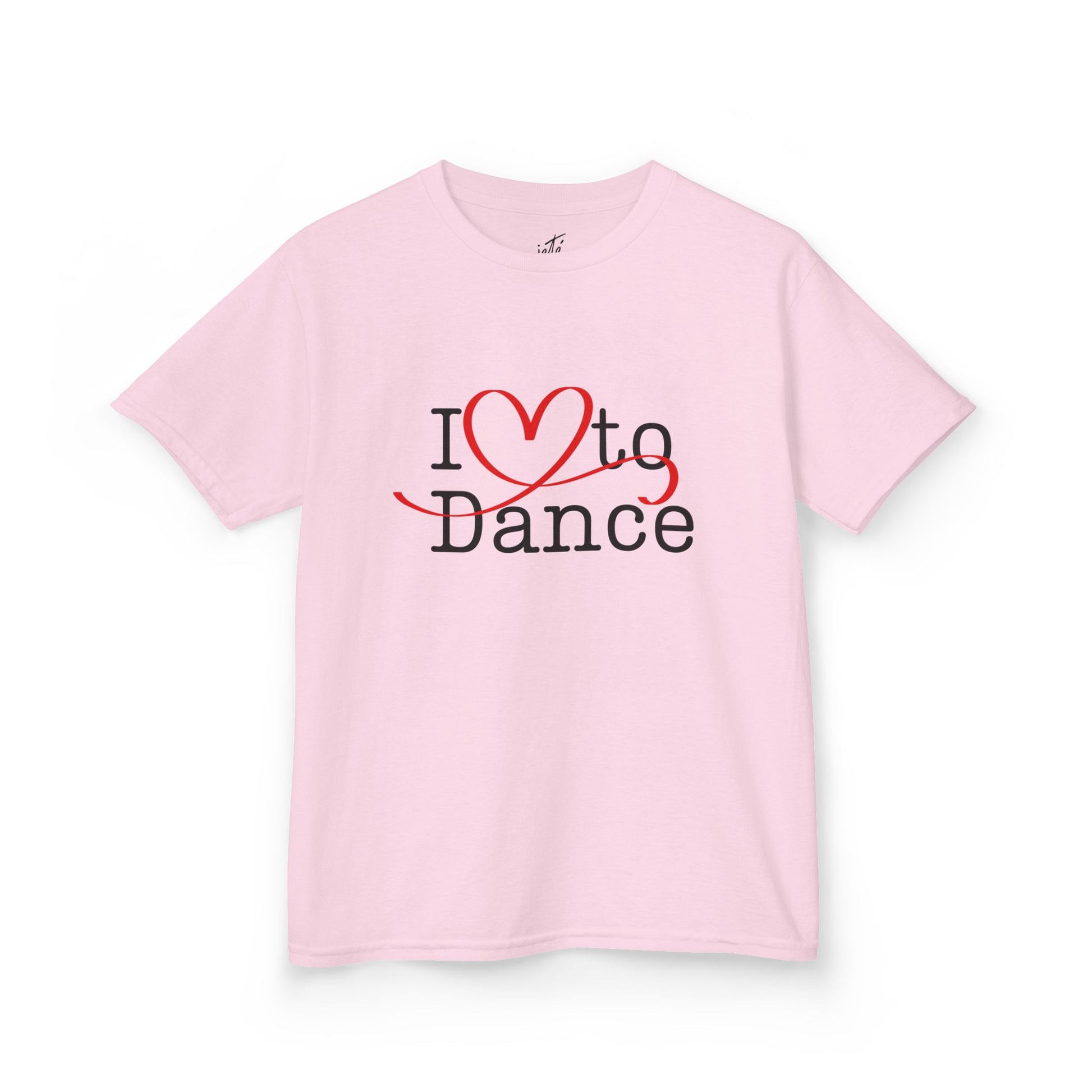"I Love to Dance" Youth Short Sleeve Tee – Hand-Drawn Heart Graphic Dance Lover T-Shirt
