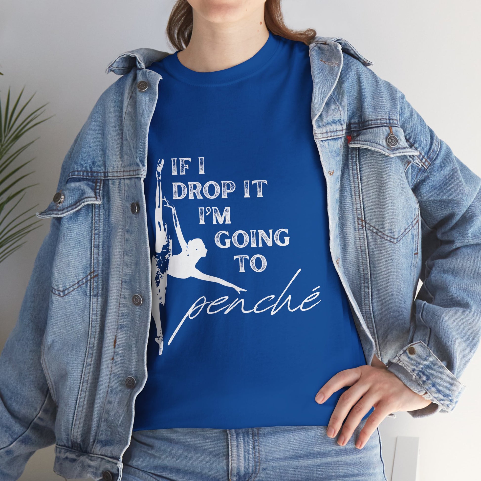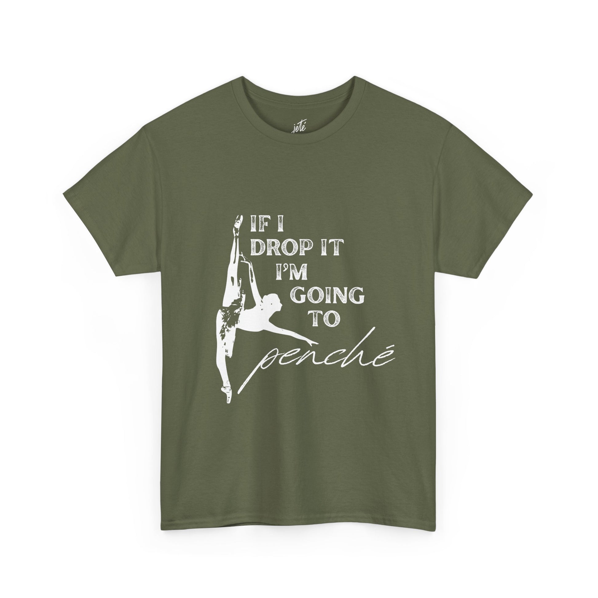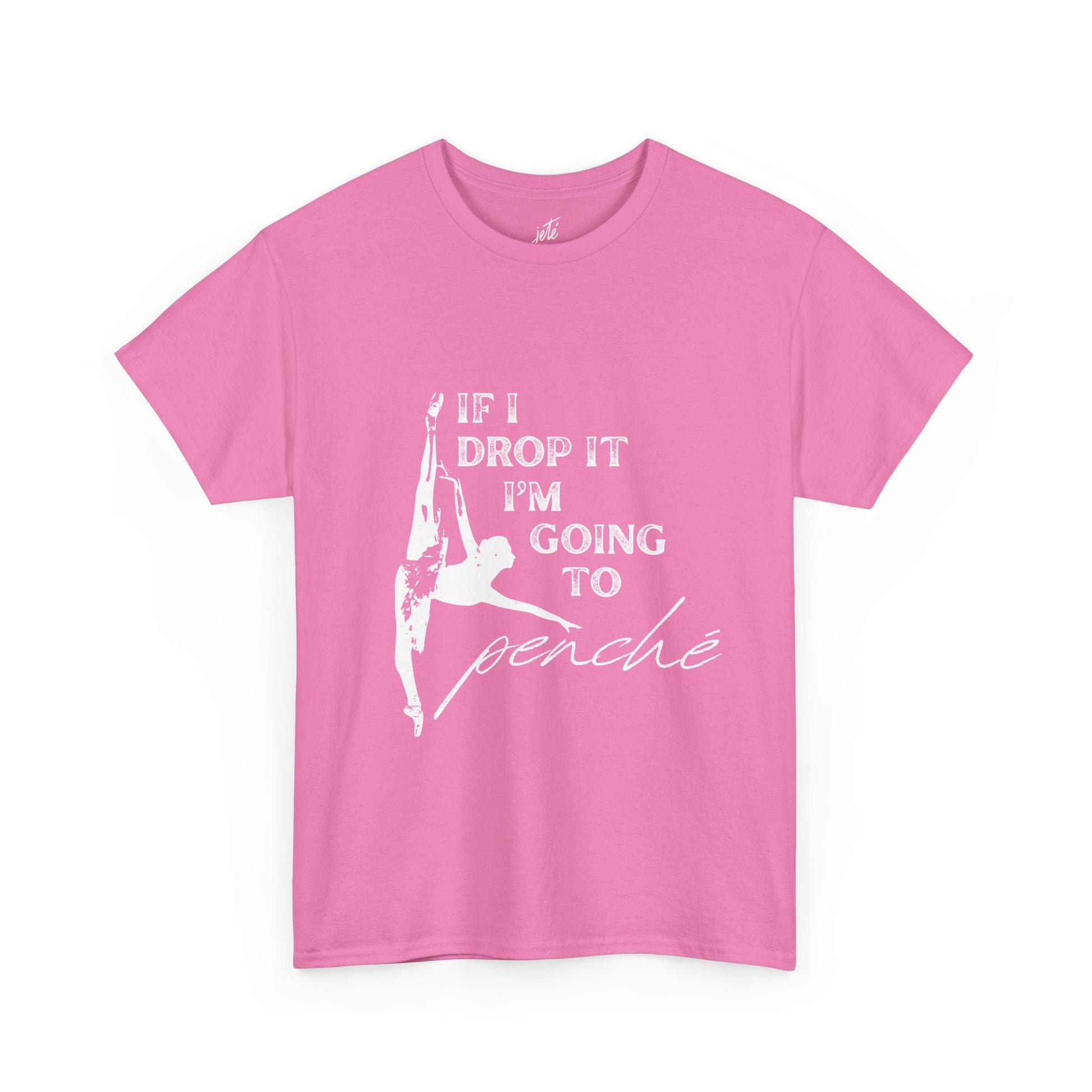 “If I Drop It, I’m Going to Penché” Funny Dance T-Shirt – Unisex Heavy Cotton Tee with Dancer Graphic and Optional Back Personalization (Name or Studio)