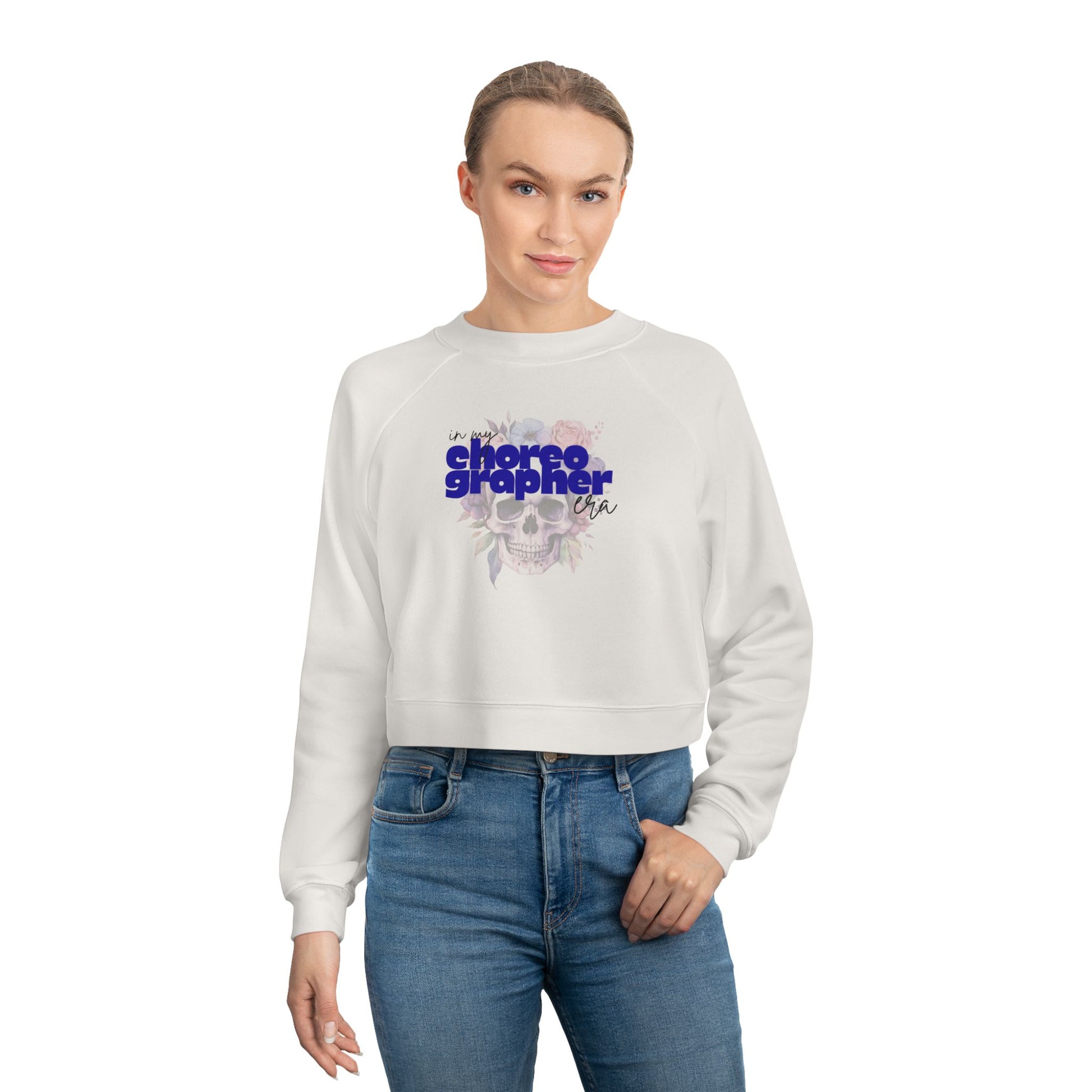 “In My Choreographer Era” Skull with Floral Graphic | Streetwear-Inspired Dance Sweatshirt for Choreographers & Dancers - Women’s Cropped Sweatshirt