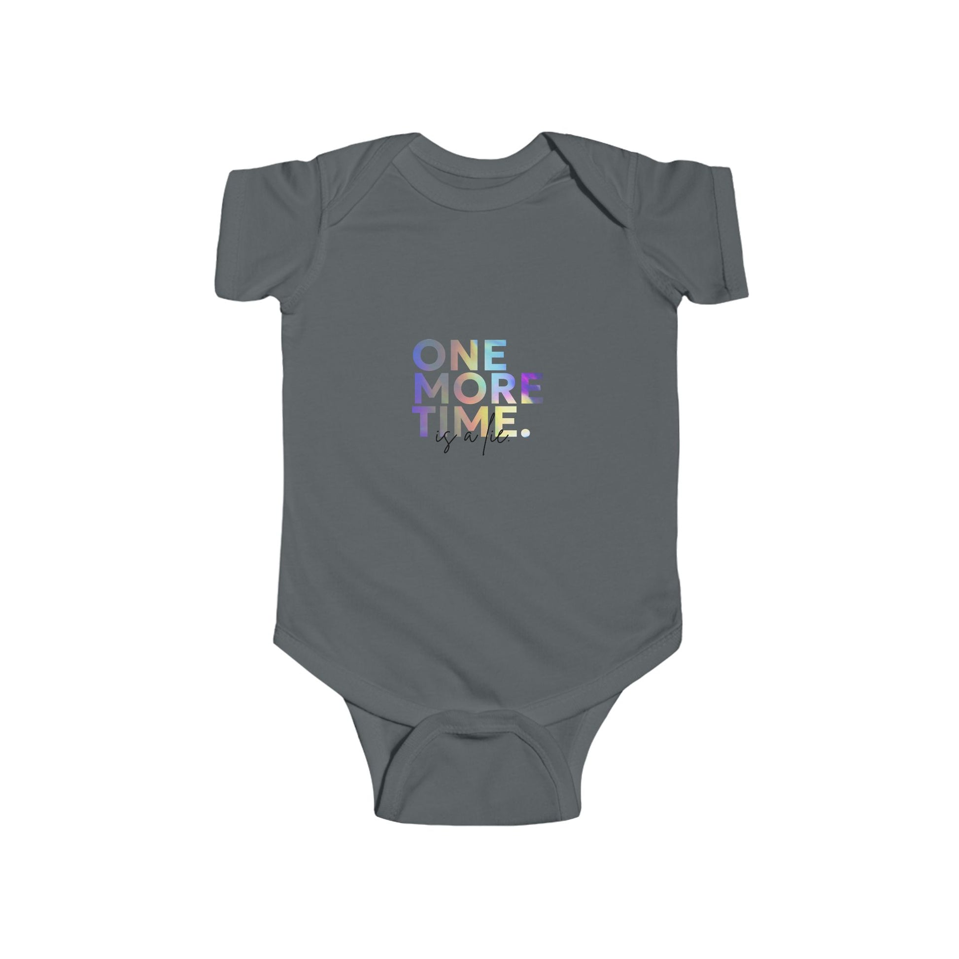 "One More Time is a Lie" Infant Short Sleeve Dance Bodysuit –Colorful Graphic Baby Outfit