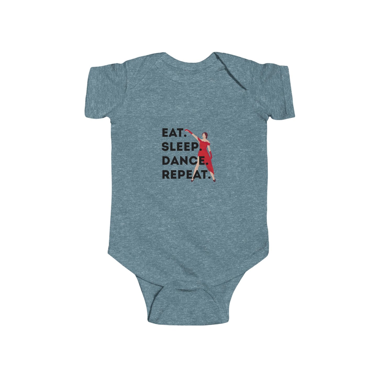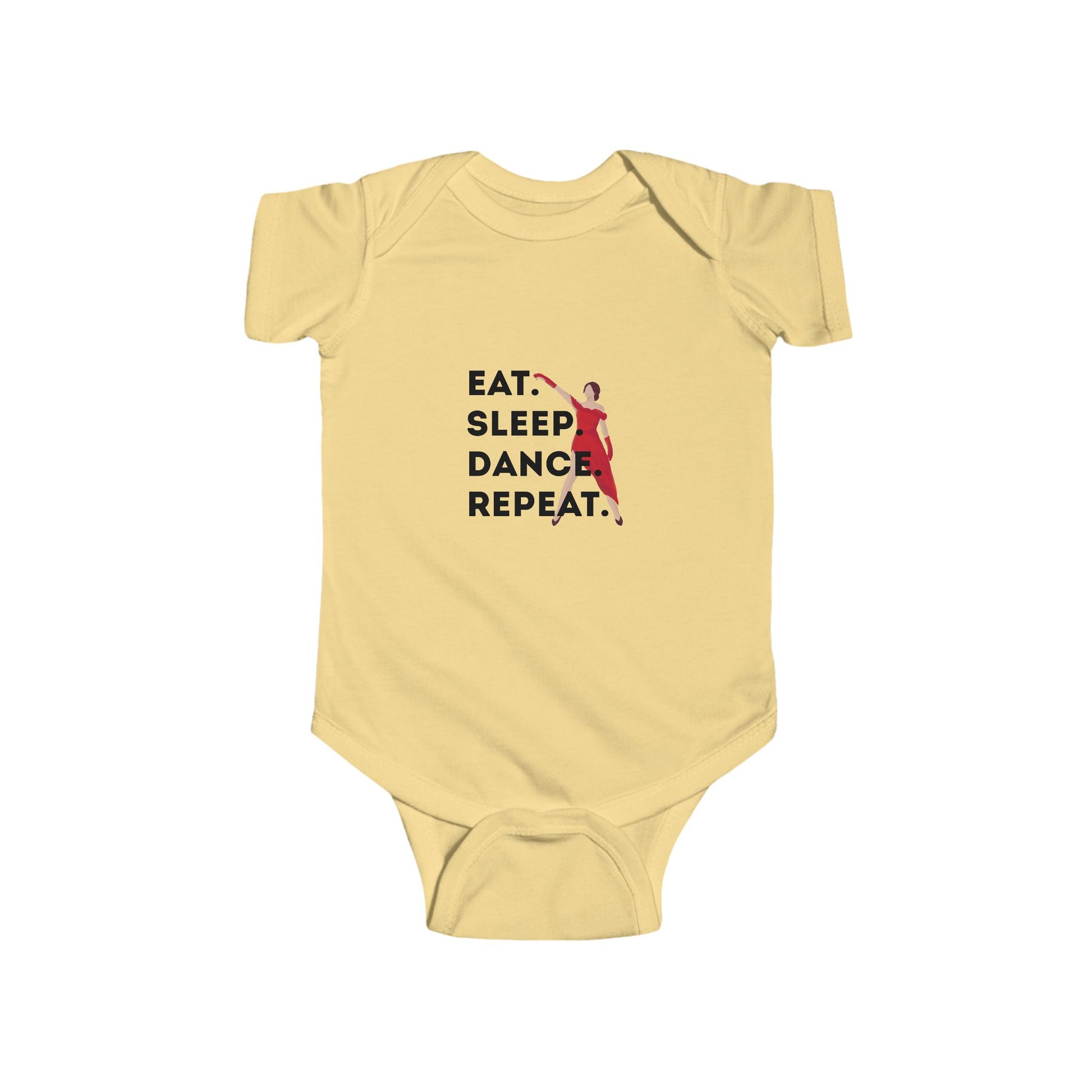 "Eat Sleep Dance Repeat" Infant Short Sleeve Bodysuit – Bold Dancer Graphic Baby Outfit for Dance-Loving Families