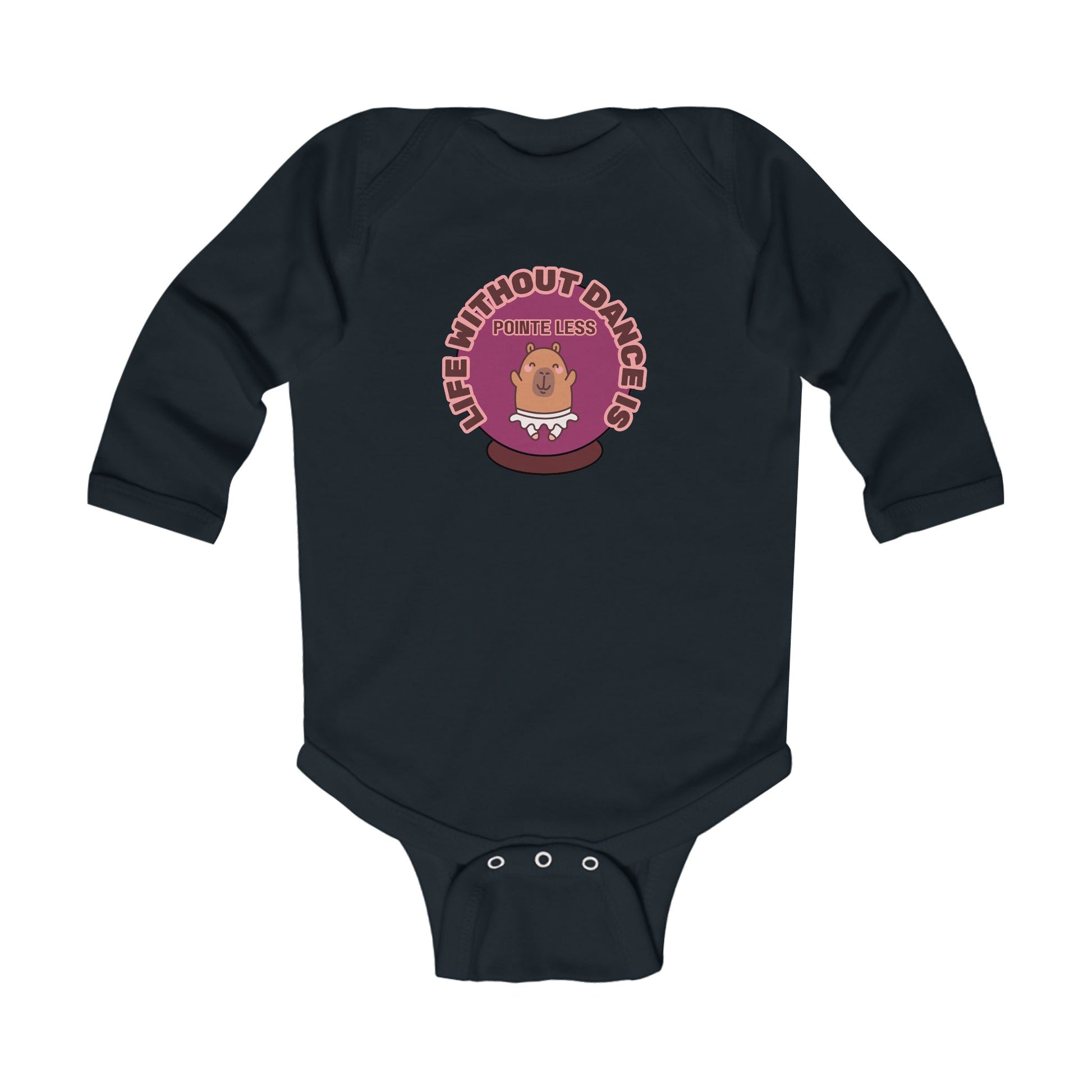 "Life Without Dance is Pointeless" Infant Long Sleeve Bodysuit – Dancing Capybara Cutie for Ballet-Loving Babies 🩰🧡