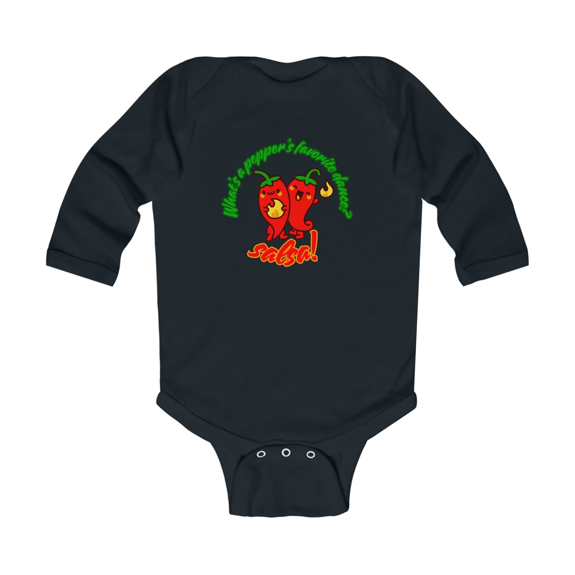 "What's a Pepper's Favorite Dance? Salsa!" Infant Long Sleeve Bodysuit – Spicy-Cute Style for Your Little Dancer 🌶️🕺👶