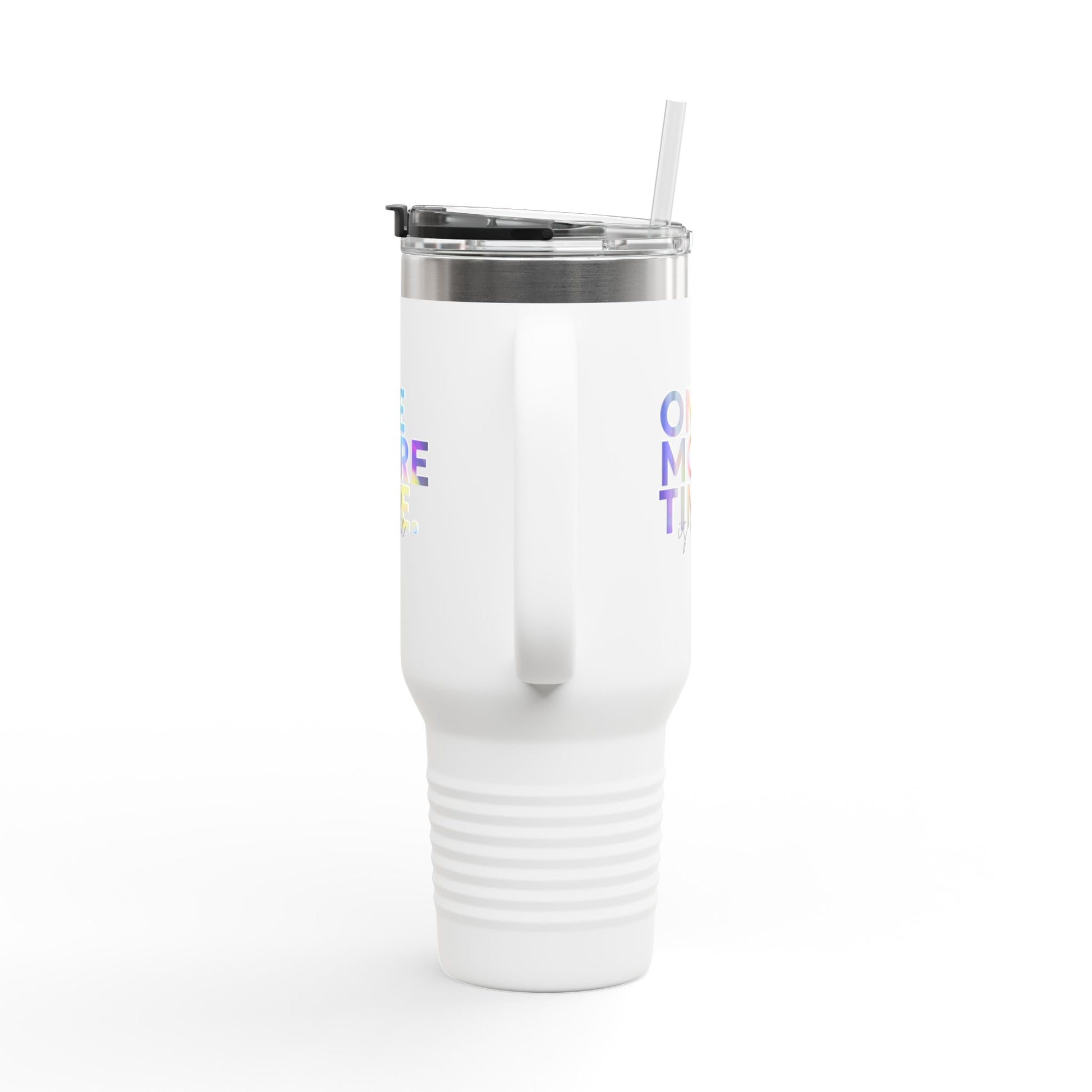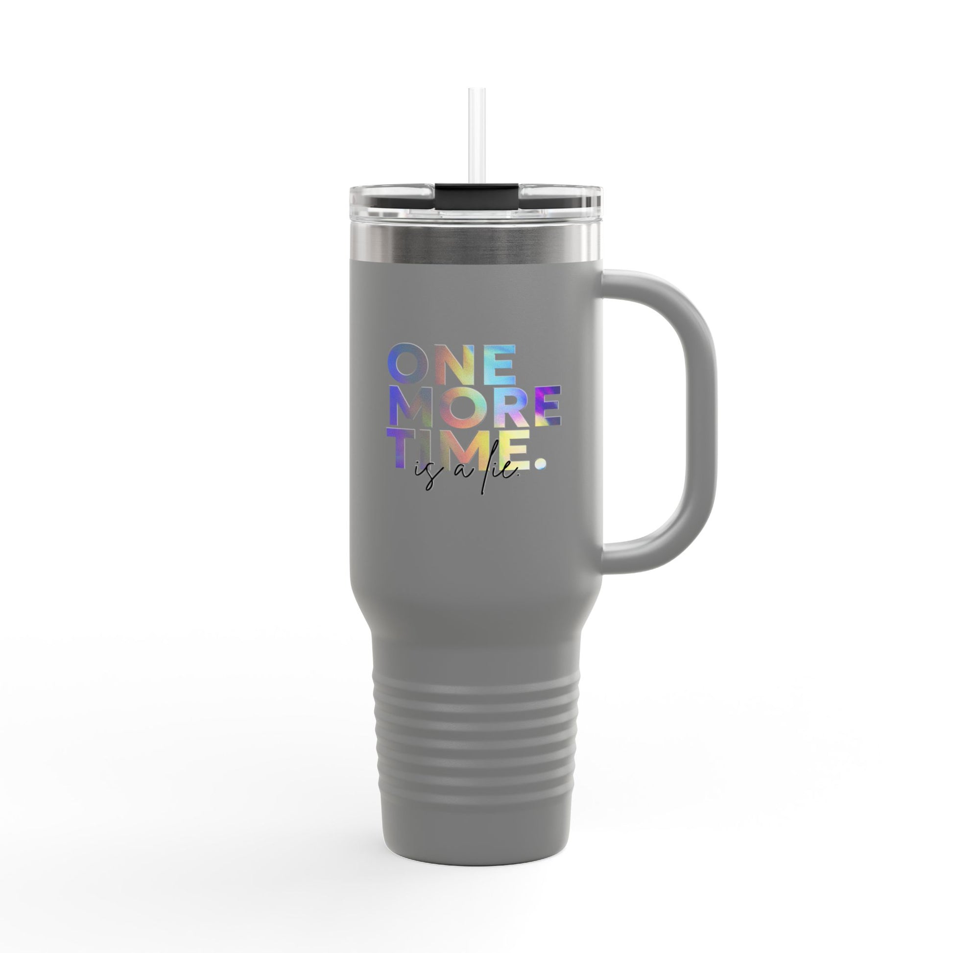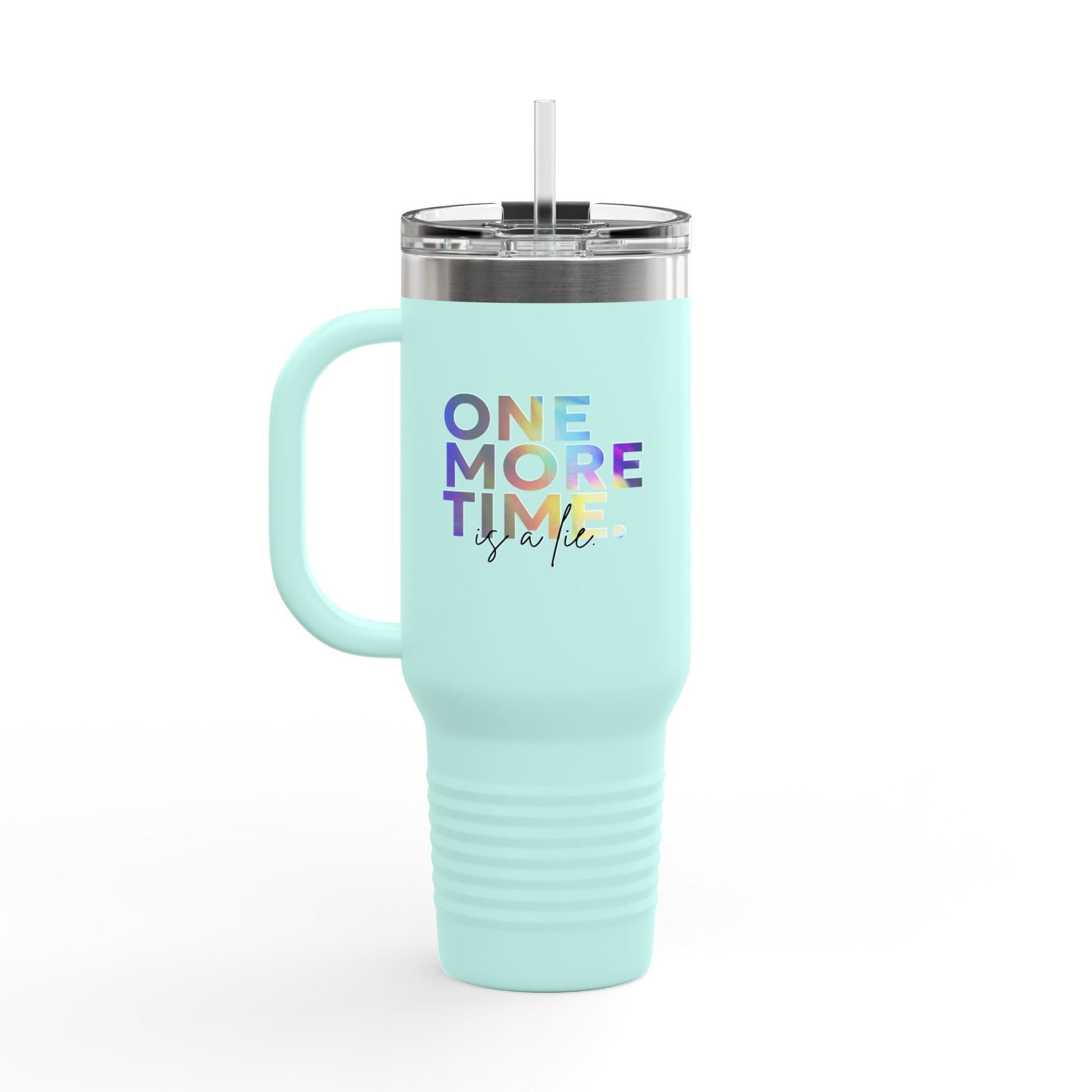 "One More Time is a Lie" 40oz Insulated Travel Mug – Funny Dance Quote Stainless Steel Tumbler with Text Graphic – Durable, Leak-Proof Coffee Mug for Dancers & On-the-Go Lifestyles